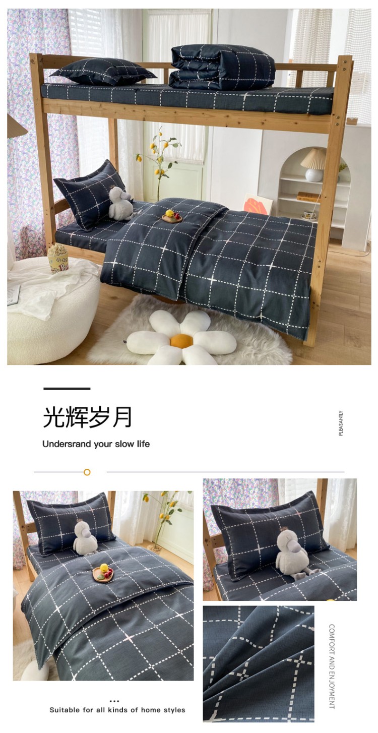 (总)2022新款舒适亲肤芦荟棉上下铺学生印花四件套