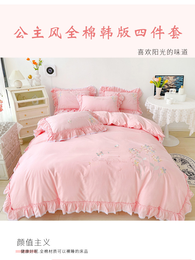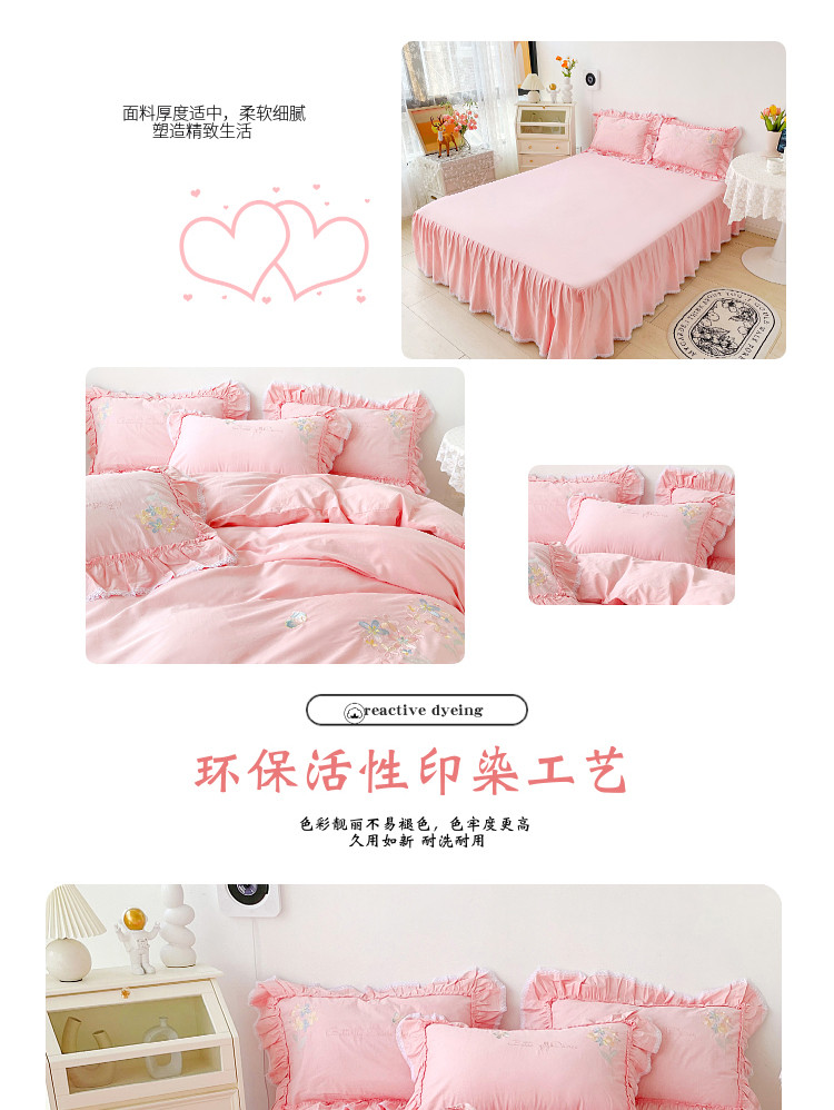 亲亲公主 新款全棉韩版公主风四件套-恋恋花语 粉色