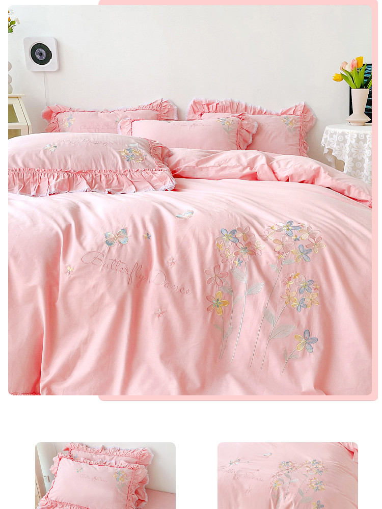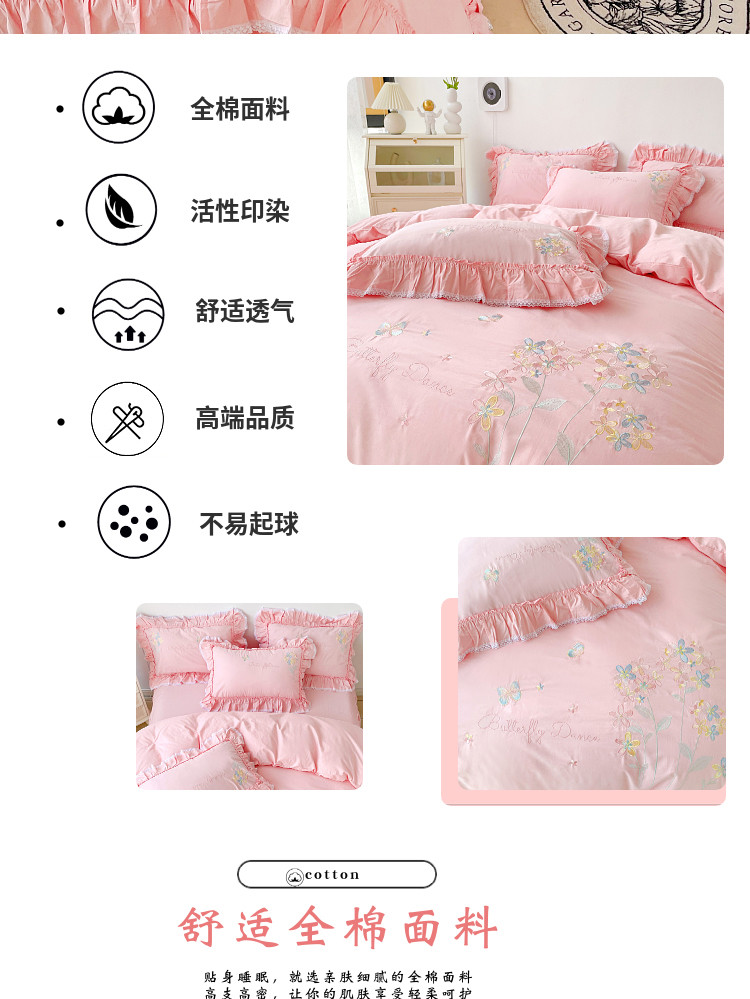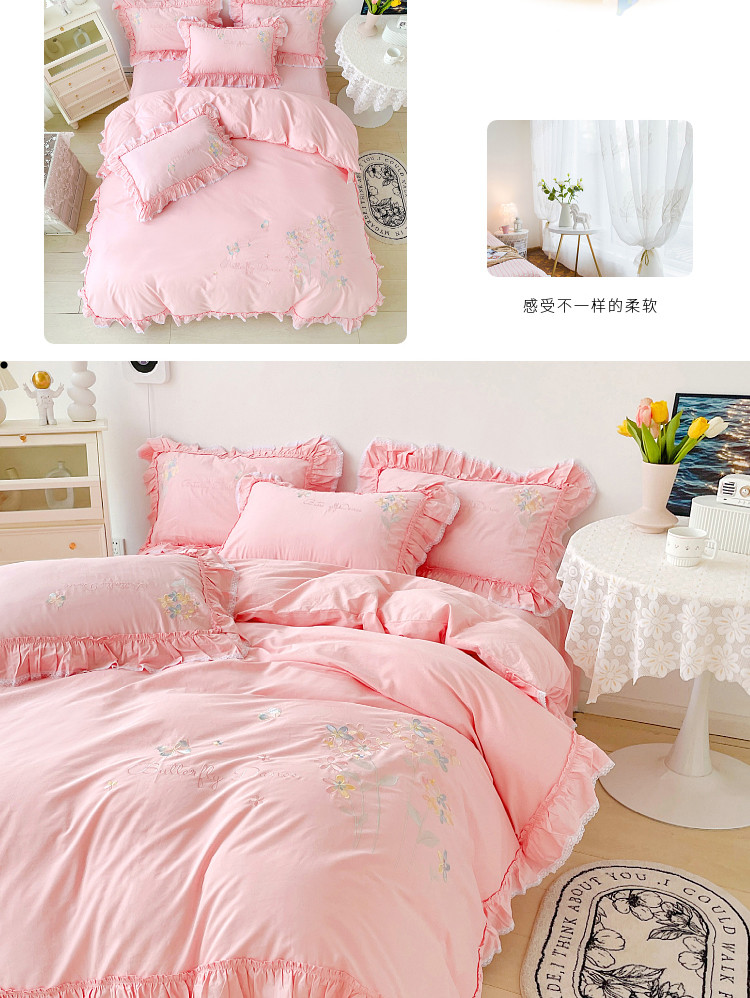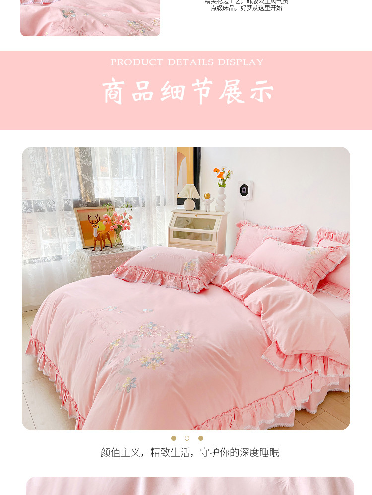 (总)亲亲公主 2025新款全棉法式宽花边四件套-浅浅爱,浅浅爱