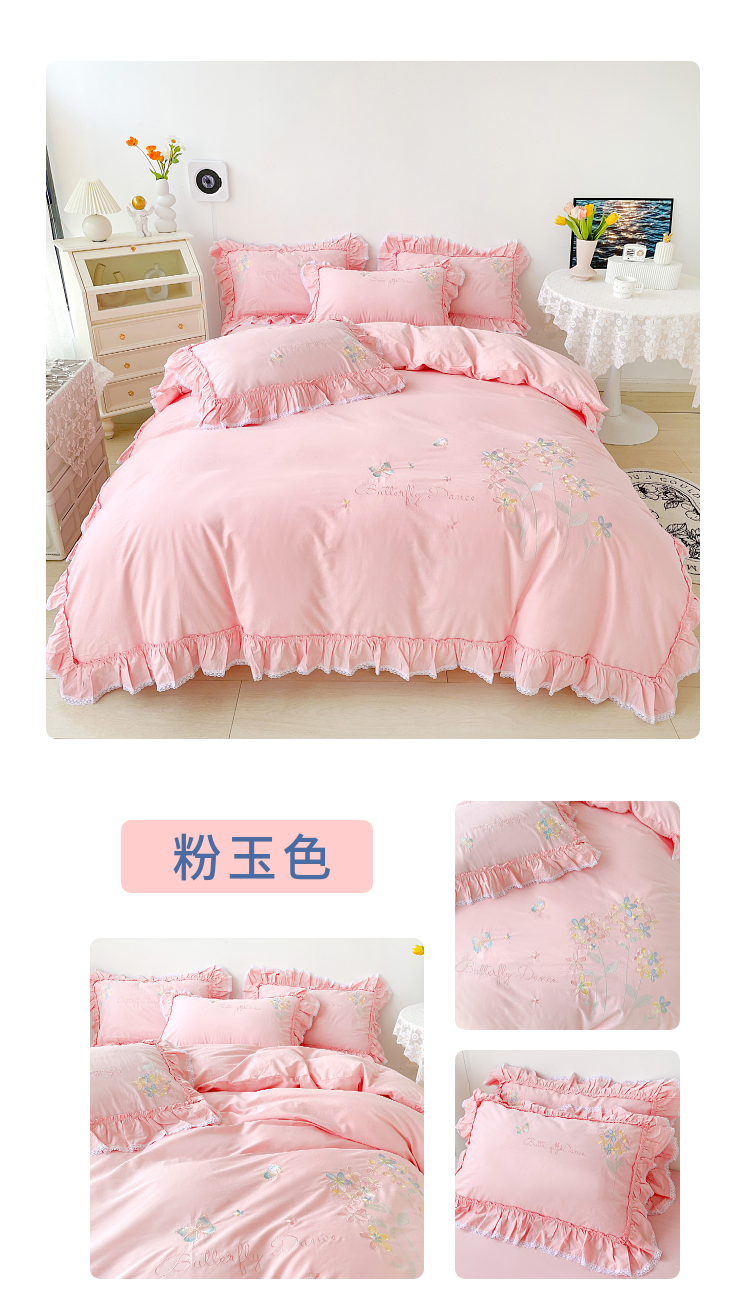 (总)亲亲公主 2025全棉蕾丝花边床裙公主风四件套,甜心花园-玉色,甜心花园-绿色,甜心花园-黄色,甜心花园-浅紫色,甜心花园-蓝色,甜心花园-粉色