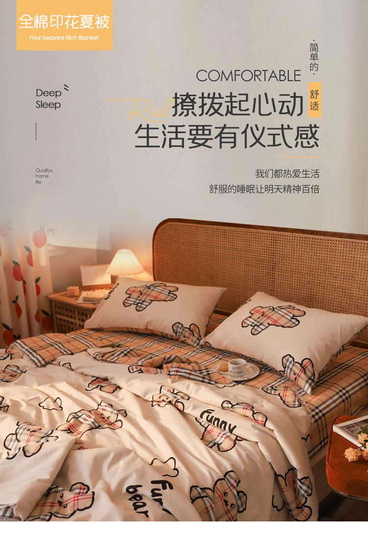 • 91家纺网 家纺一手货源 找家纺 寐居 2022新款全棉13370夏被四件套 淘淘熊