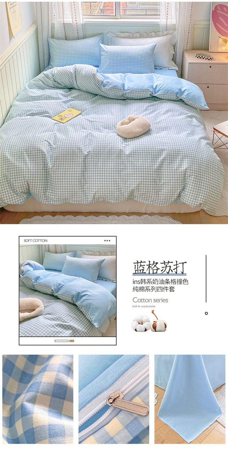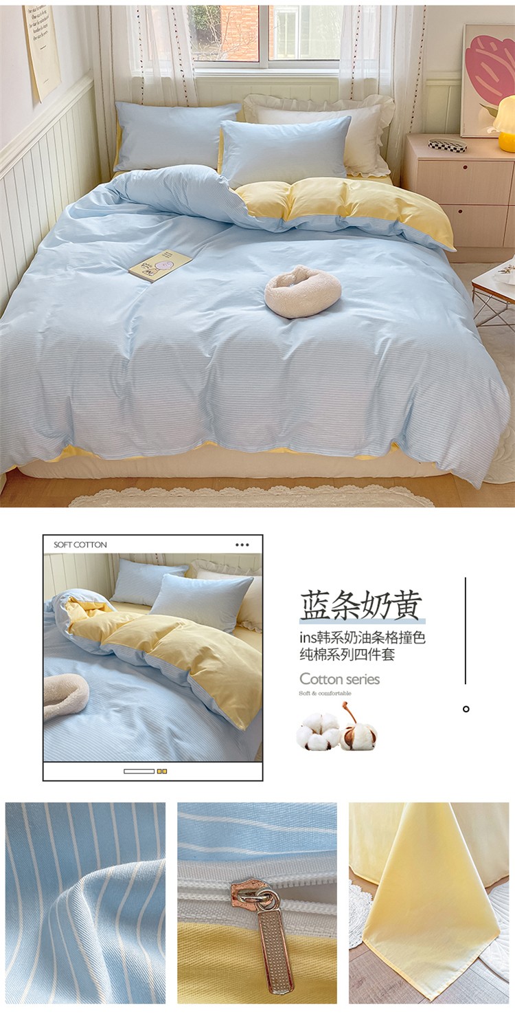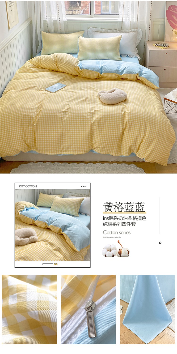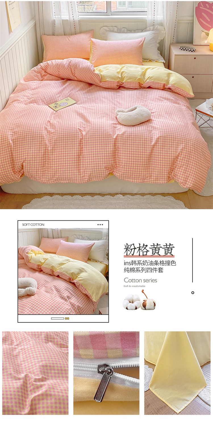(总)桃子家居 2022韩系ins奶油条格撞色纯棉四件套