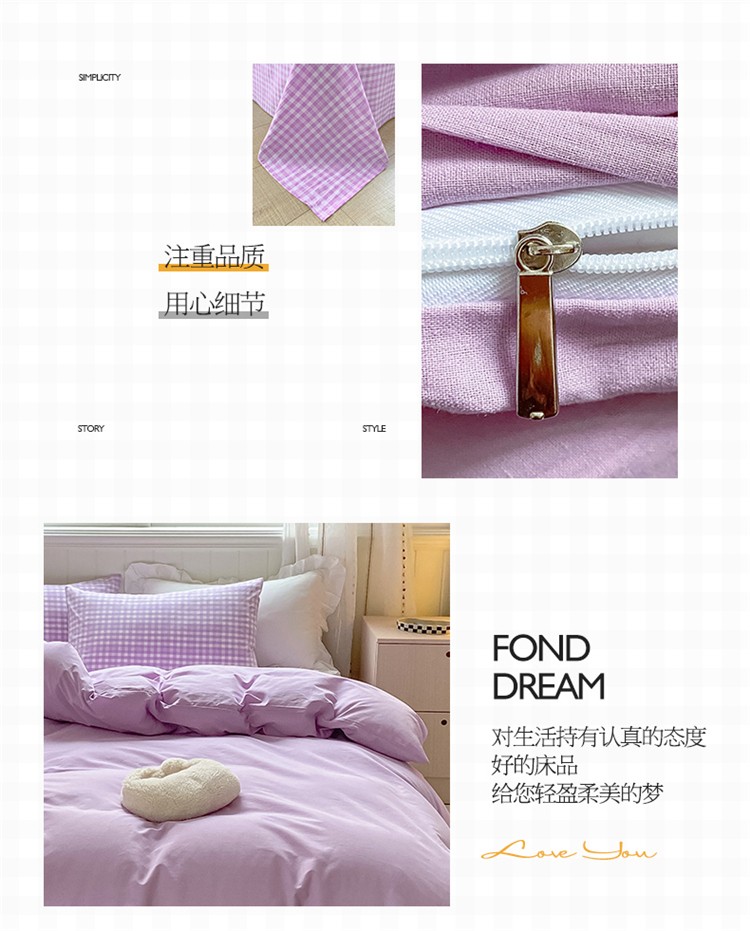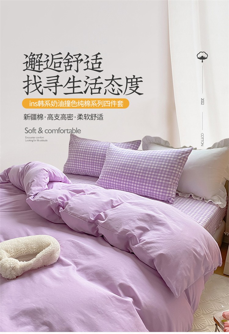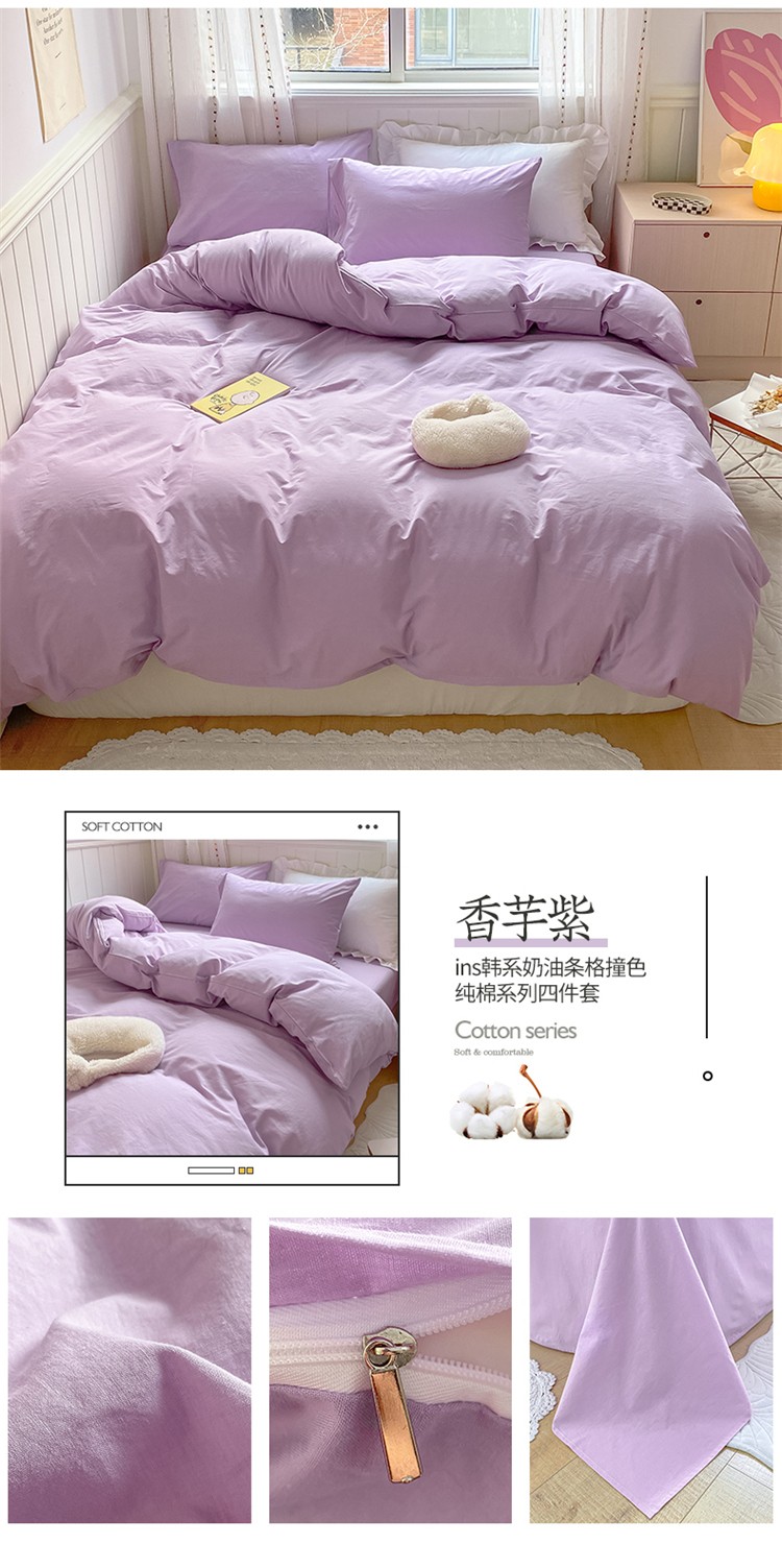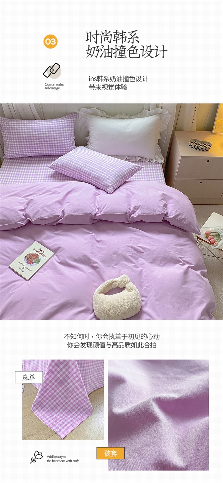 (总)桃子家居 2022韩系ins奶油条格撞色纯棉四件套