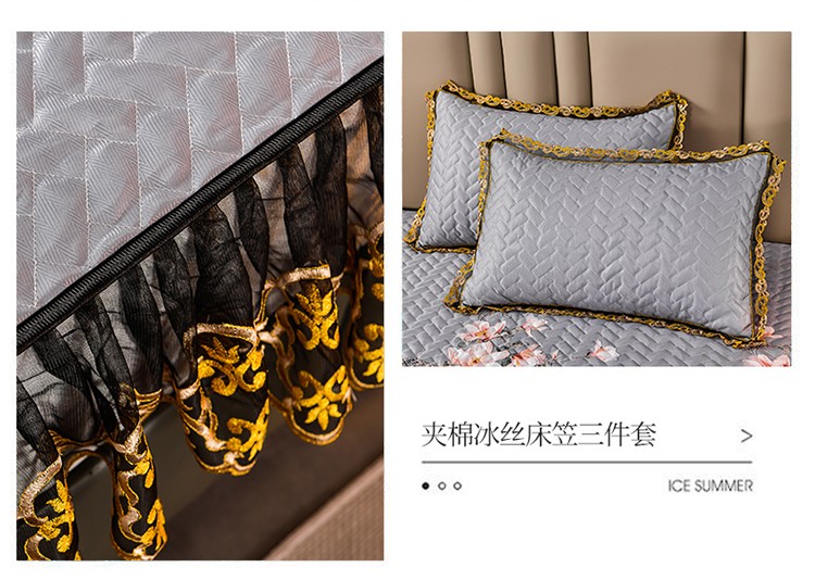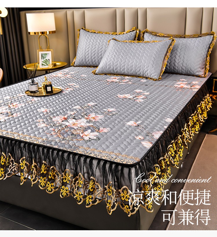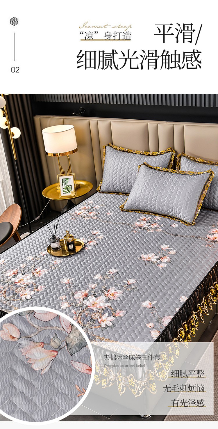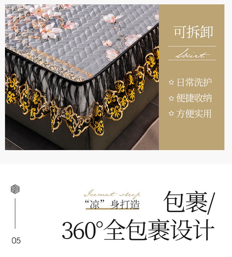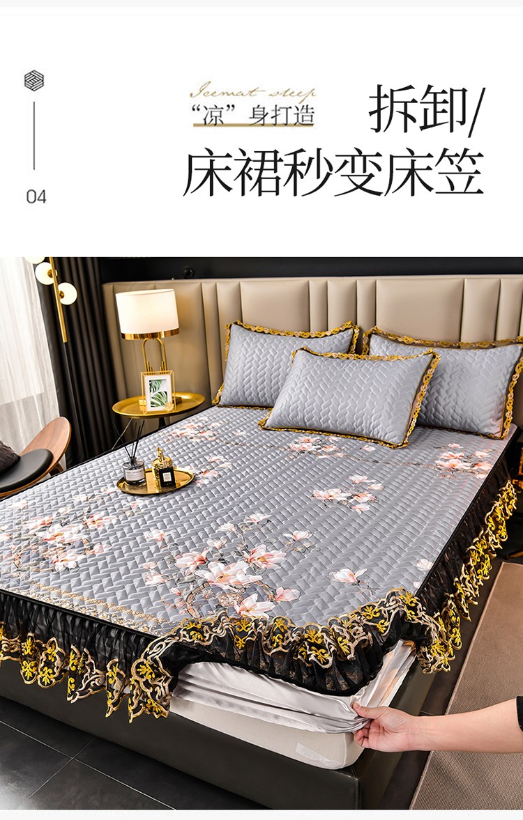 商品名称:迪梦思 2022新款蕾丝花边可拆卸床笠冰丝凉席三件套 香水百合