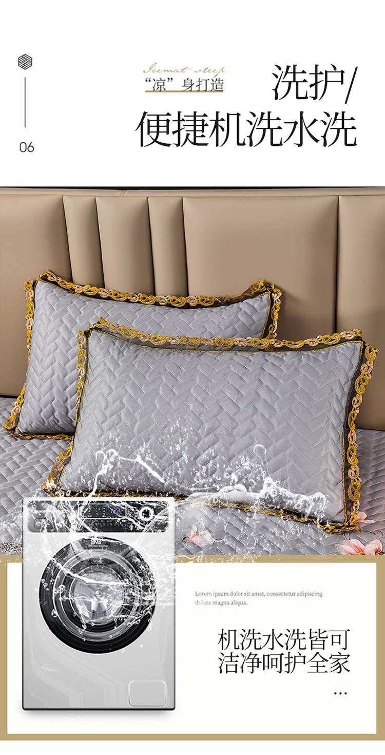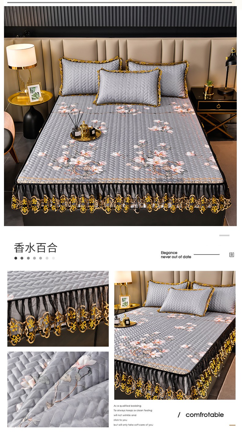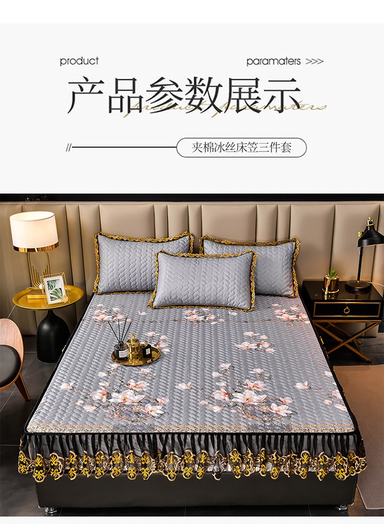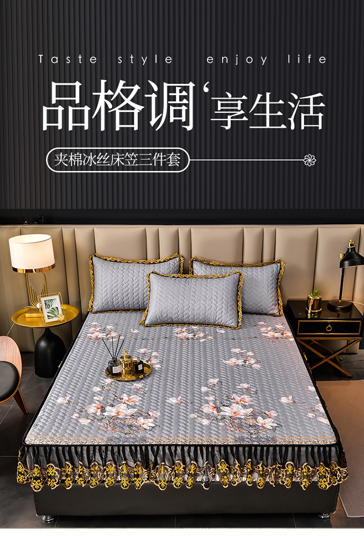 商品名称:迪梦思 2022新款蕾丝花边可拆卸床笠冰丝凉席三件套 香水百合