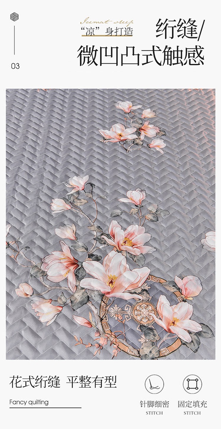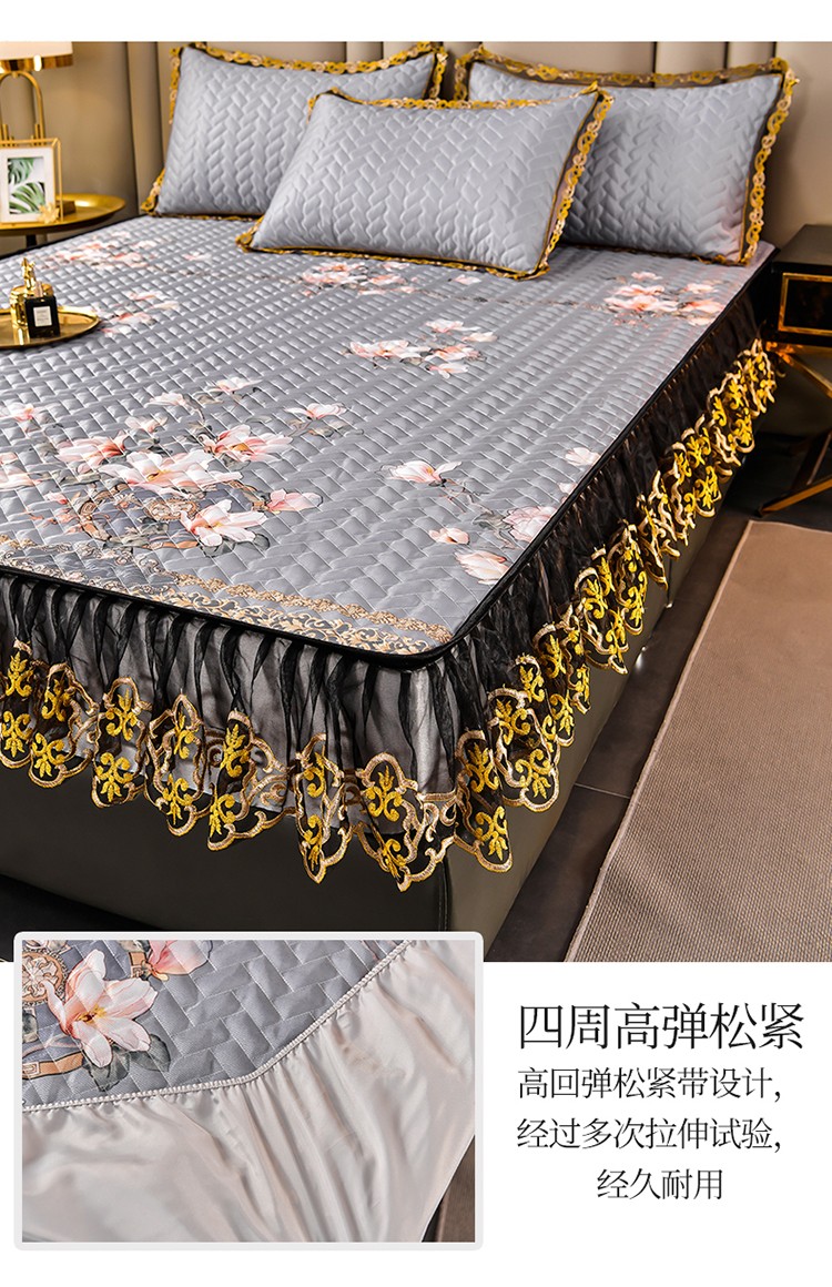迪梦思 2022新款蕾丝花边可拆卸床笠冰丝凉席三件套 香水百合
