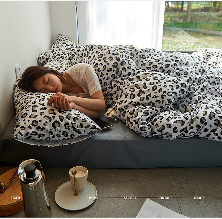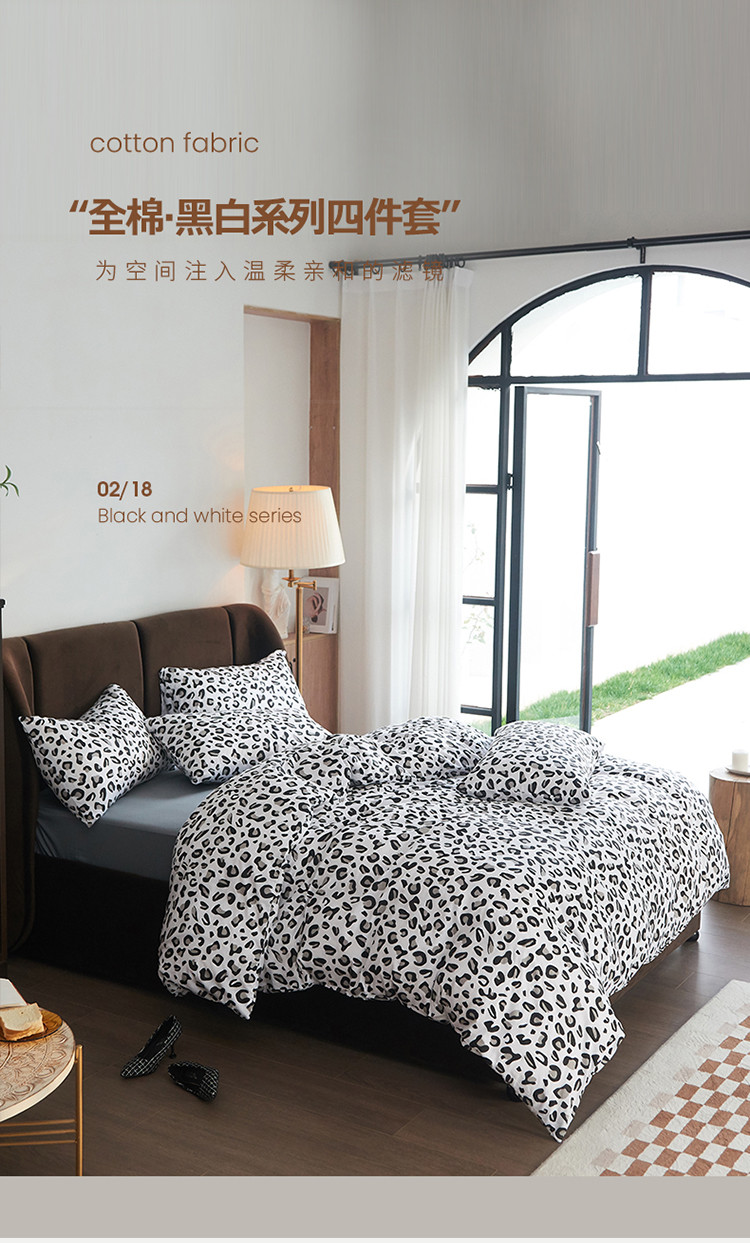 当前位置: 91家纺网 > 商品网购 > 床品套件 > 四件套 > 艾佳 2025新款全棉13372黑白灰经典系列四件套-场景1 狂野豹点灰