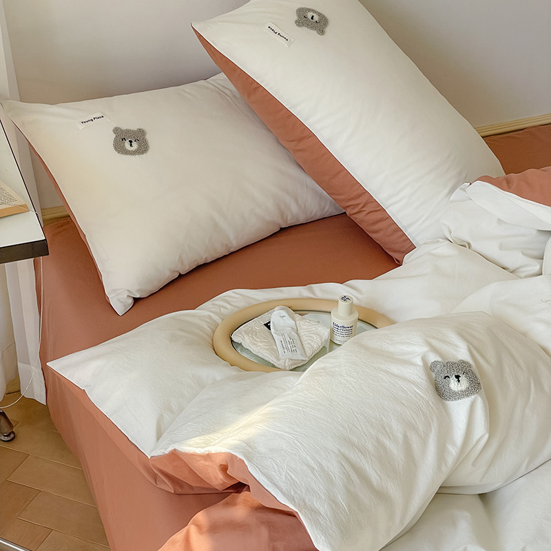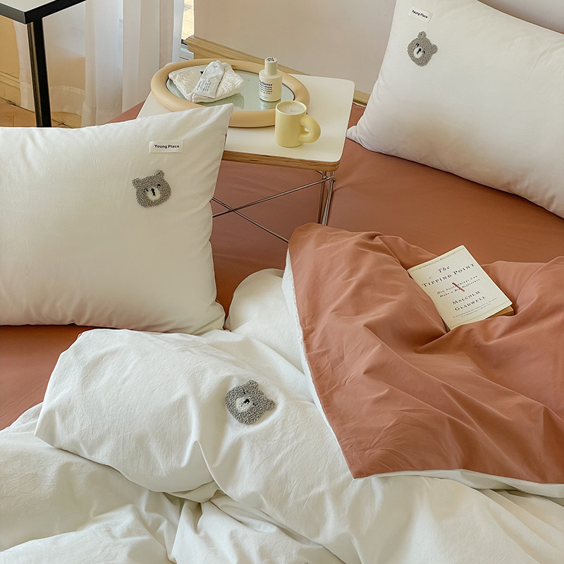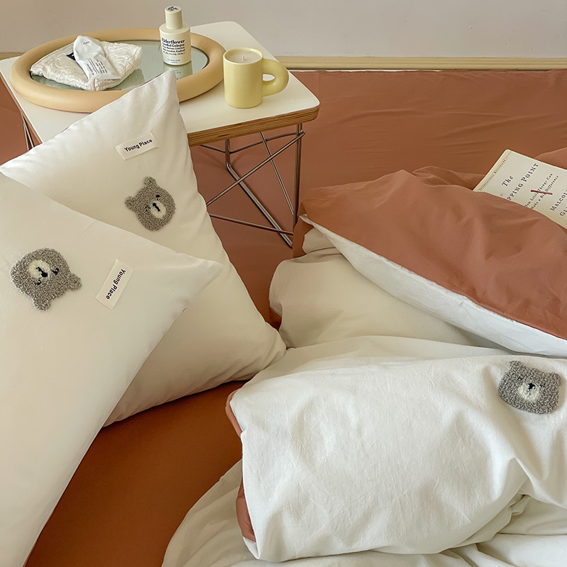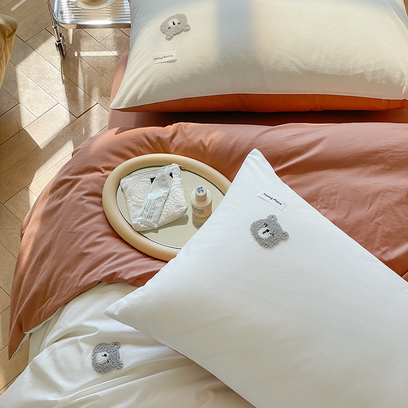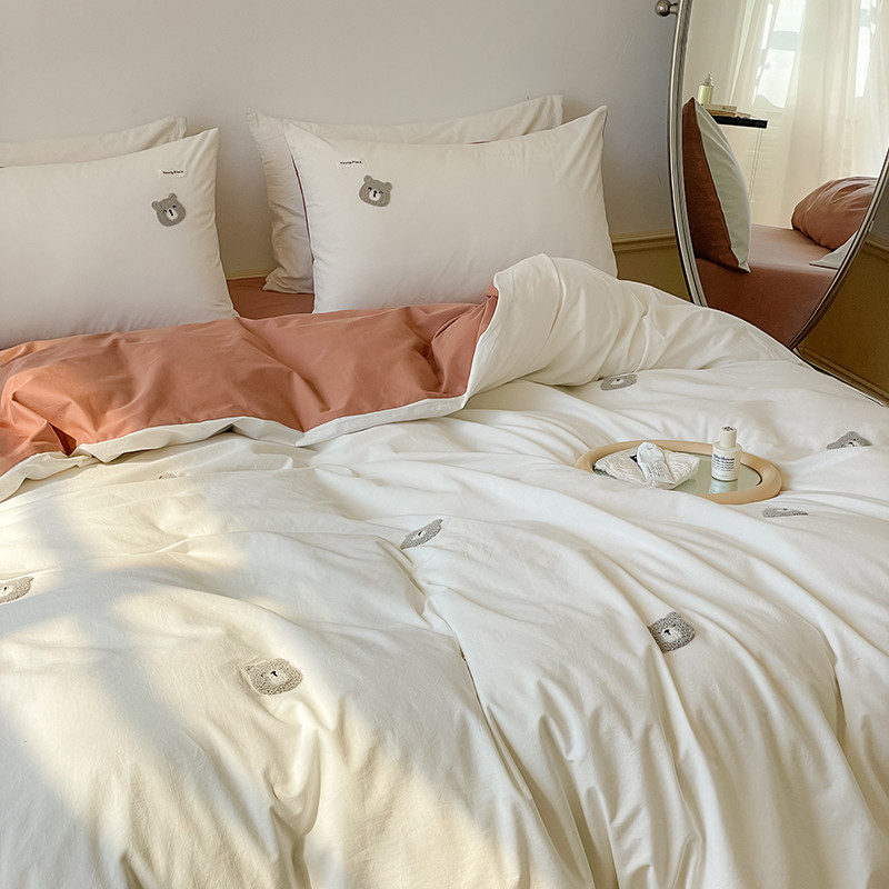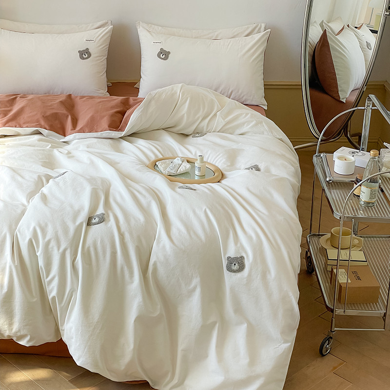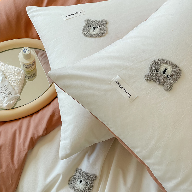 洋铭区 2022新款全棉小清新水洗棉刺绣系列 小熊憨憨