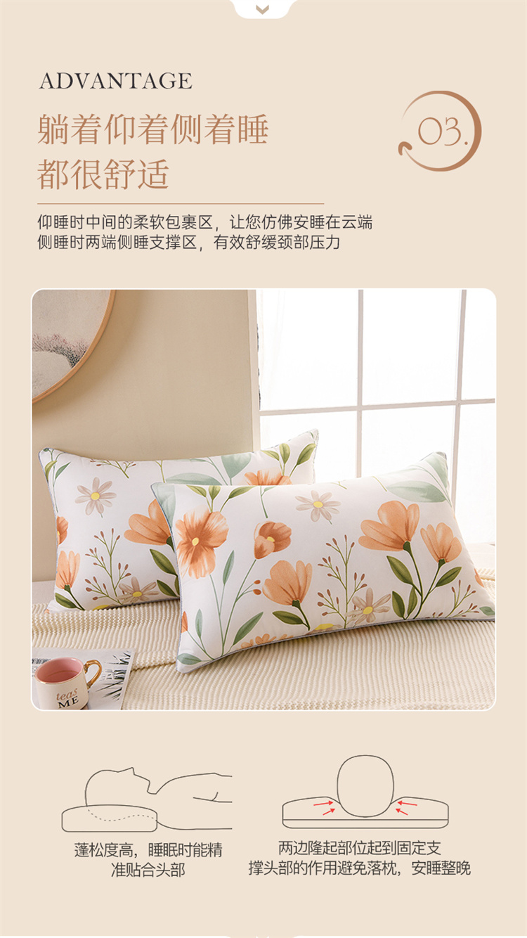 当前位置: 91家纺网 > 商品网购 > 枕头/枕芯/保健枕/颈椎枕 > 普通枕芯 > 圣楚家纺 2024新款高弹羽丝枕枕 夏梦