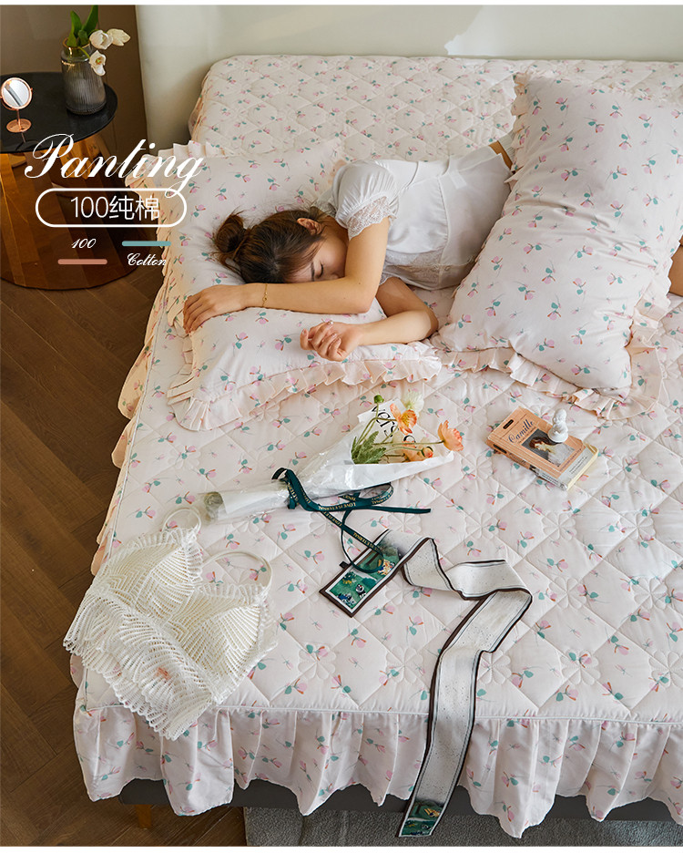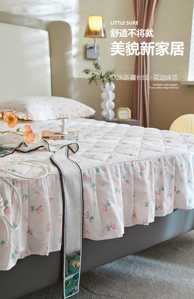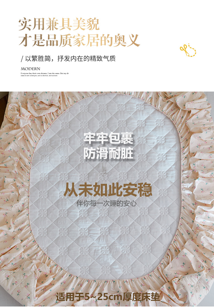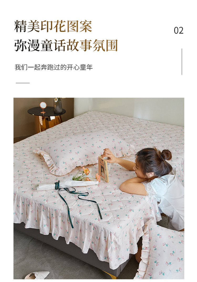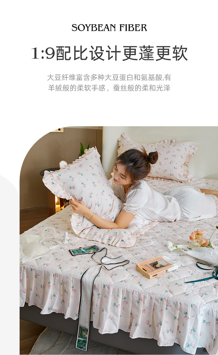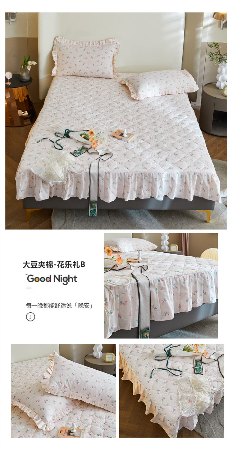 铭动家纺 2023新款大豆双层夹棉花边床笠 大豆夹棉-花乐礼B