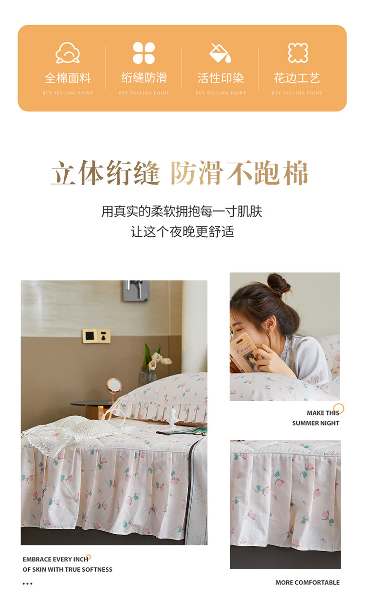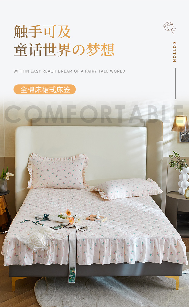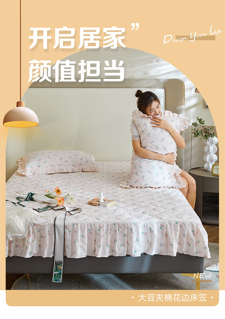 • 91家纺网 家纺一手货源 找家纺 铭动家纺 2023新款大豆双层夹棉花边床笠 大豆夹棉-花乐礼B