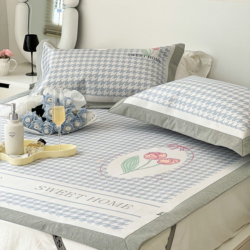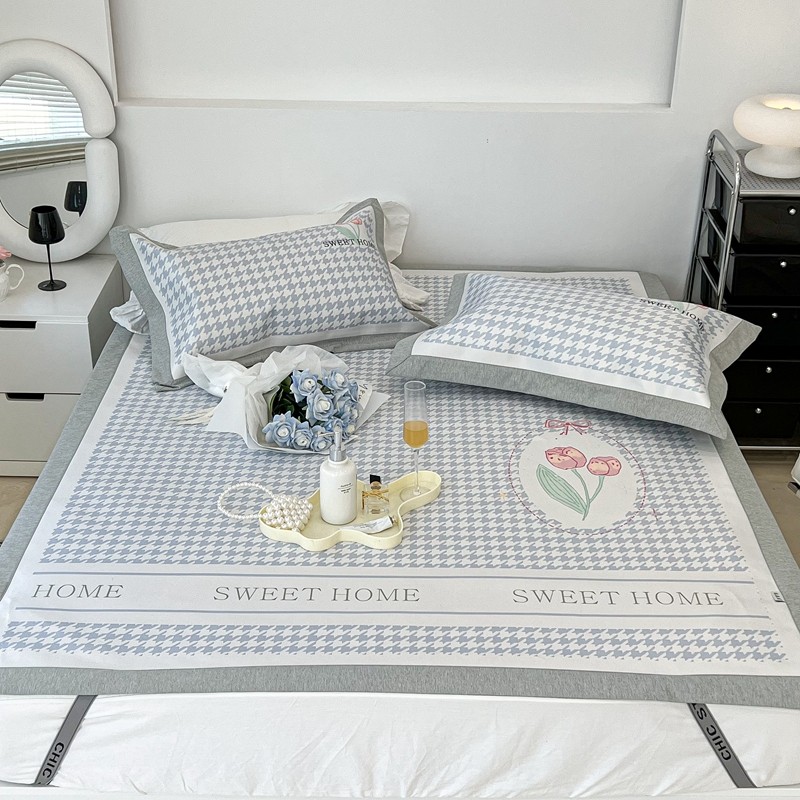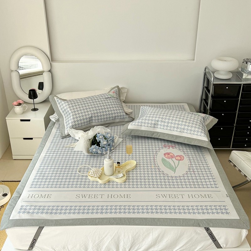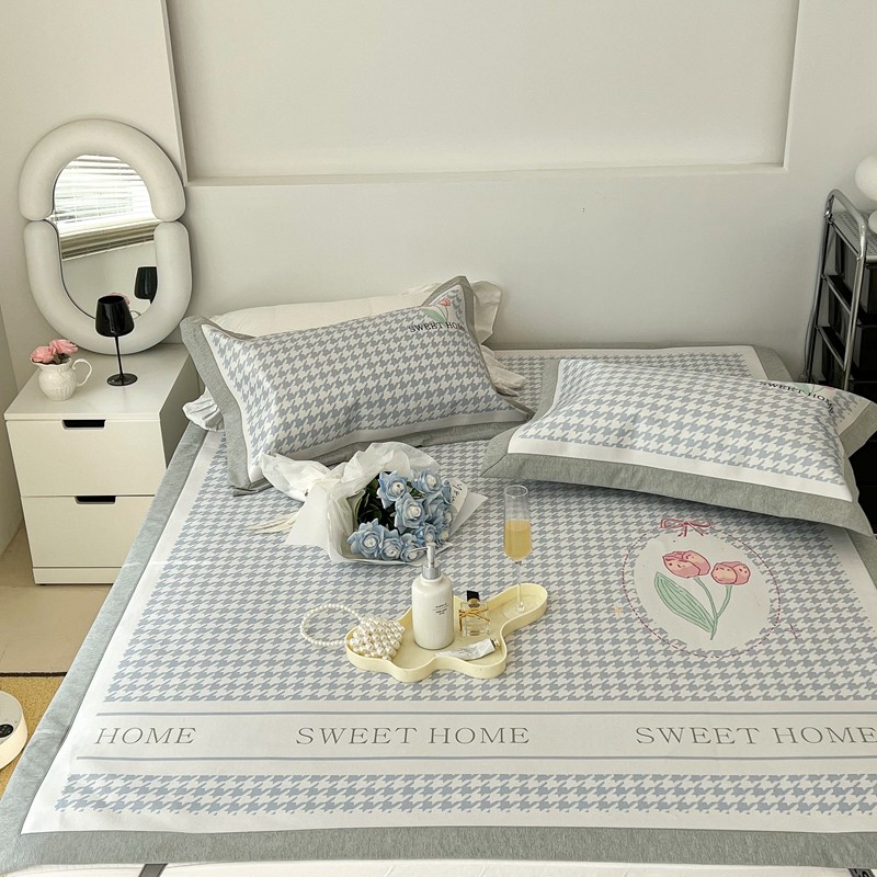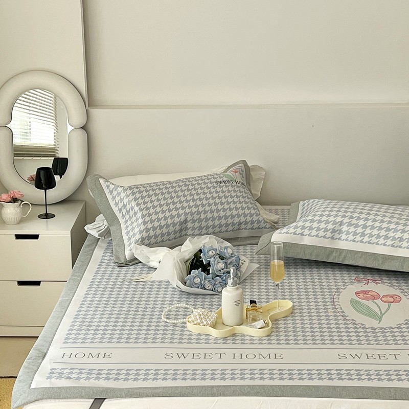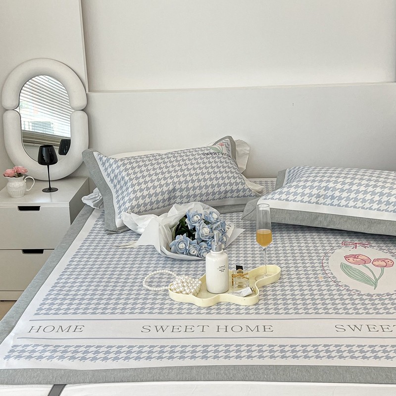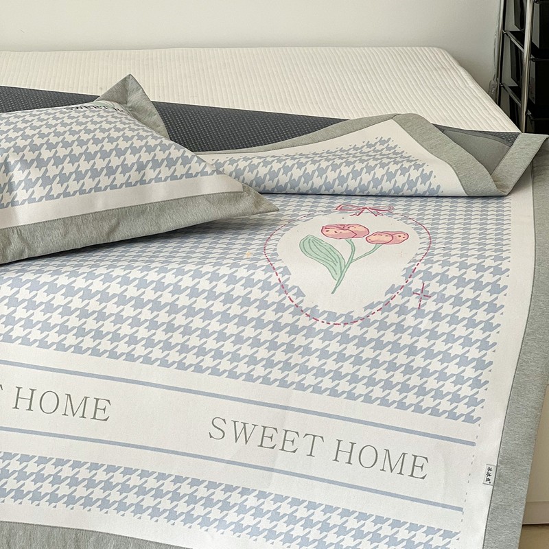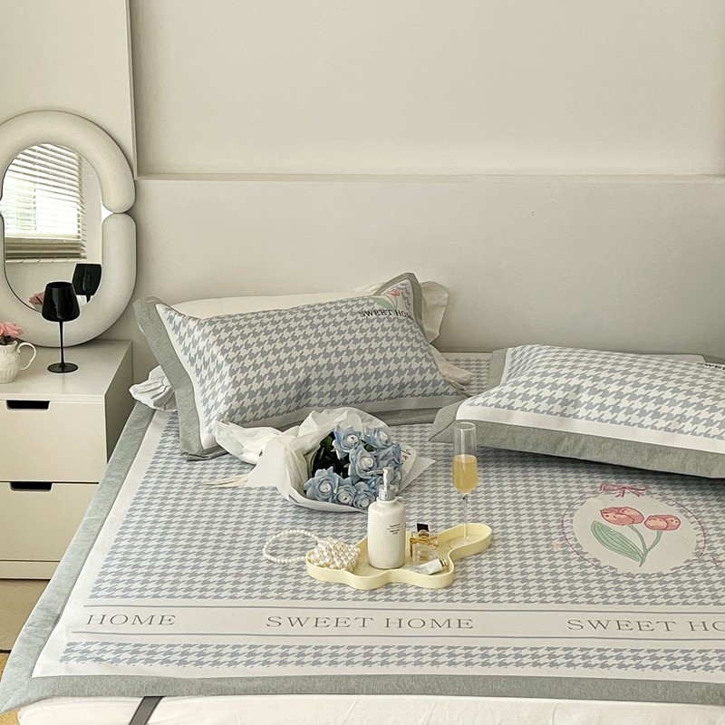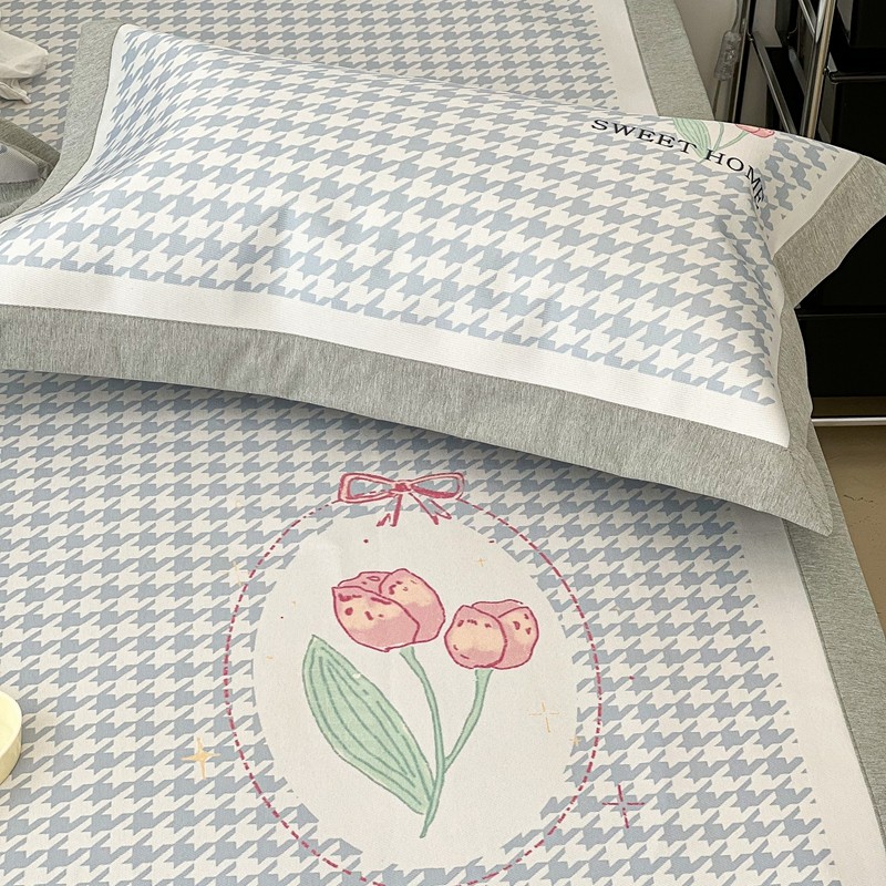 昔可 2022新款大版数码水洗冰沐丝凉席 千鸟格郁金香