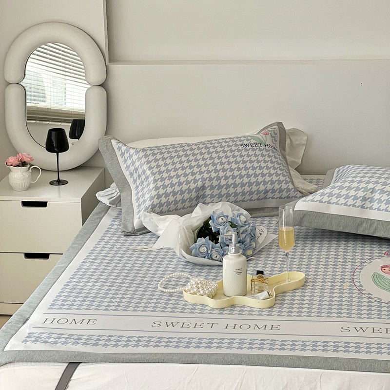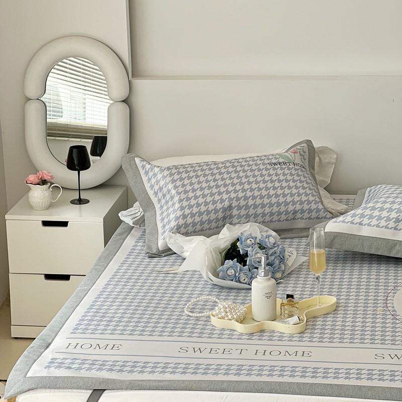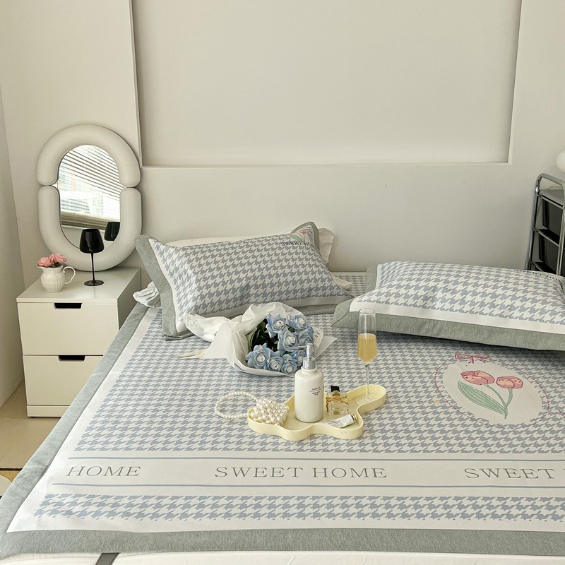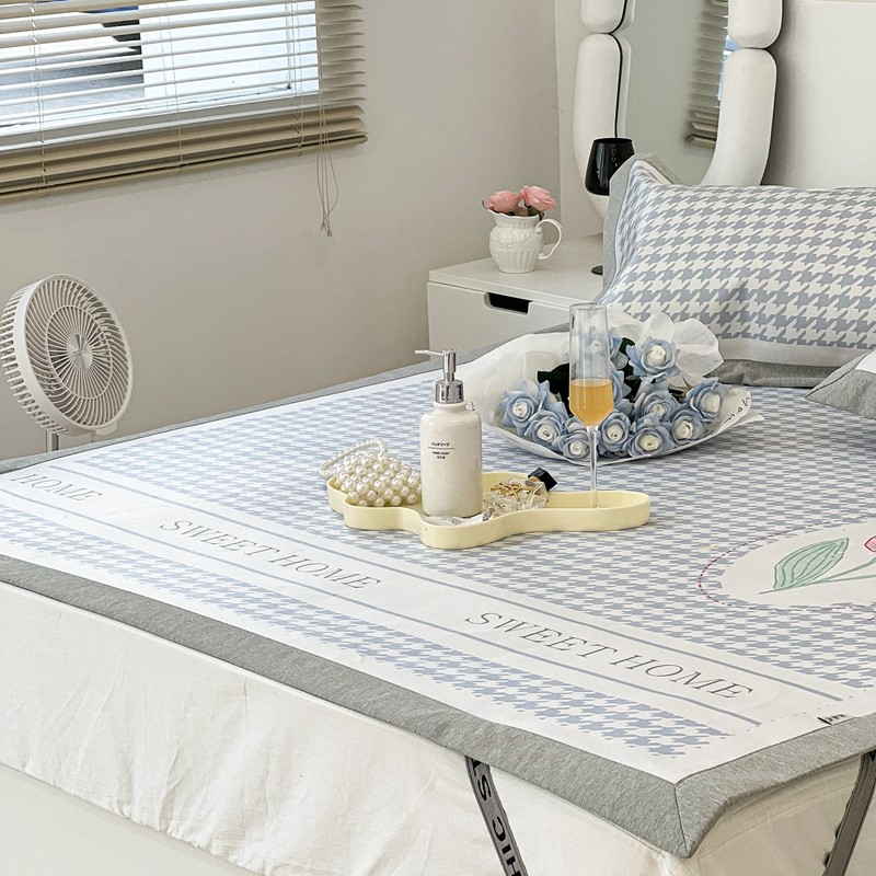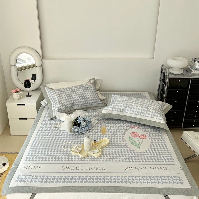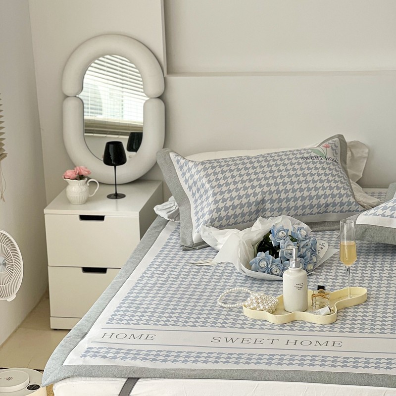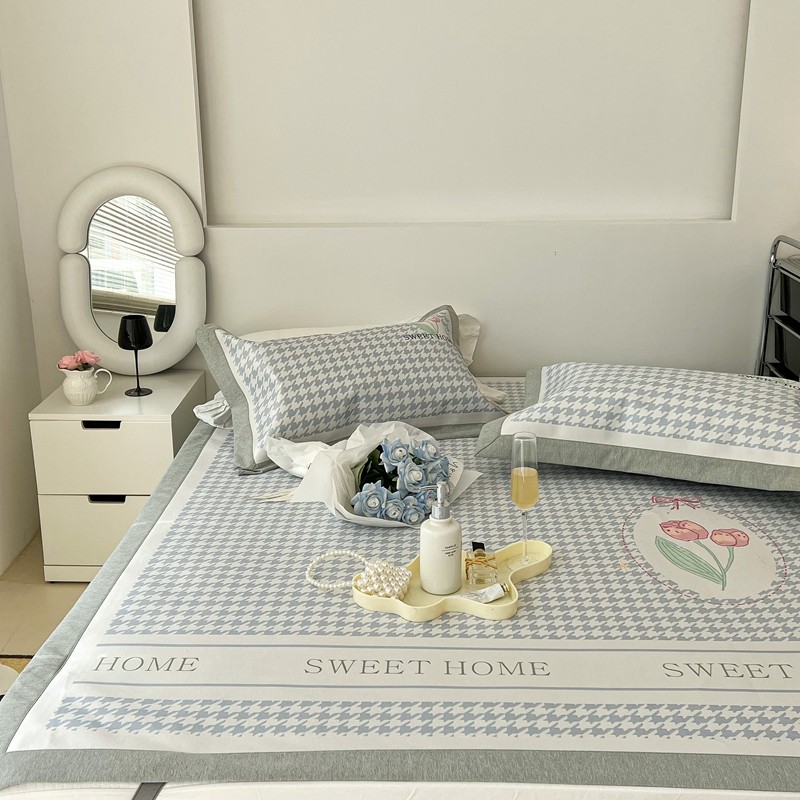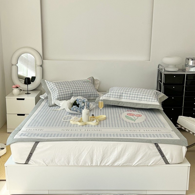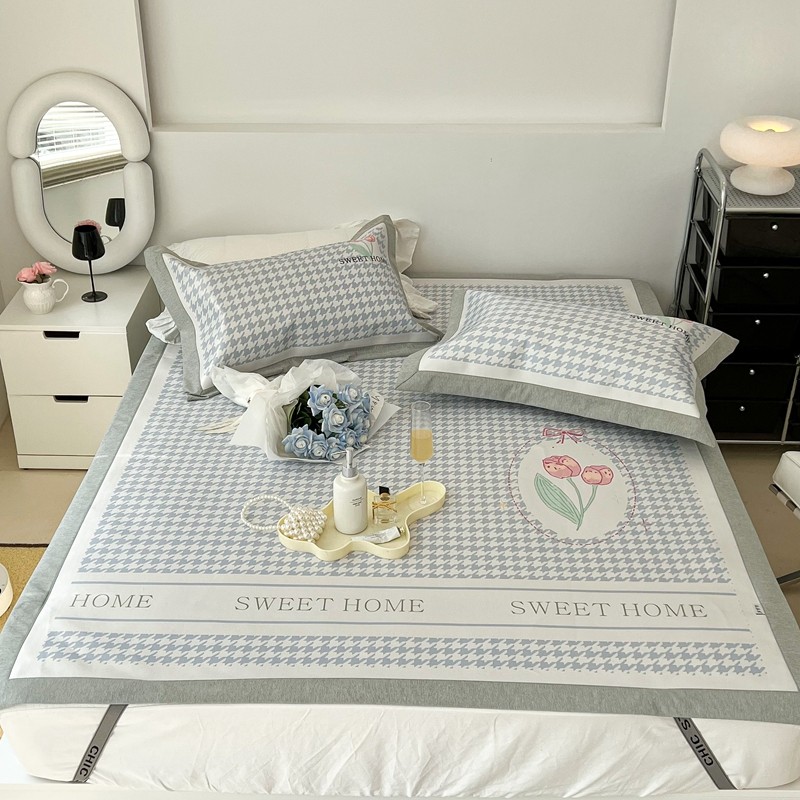 昔可 2022新款大版数码水洗冰沐丝凉席 千鸟格郁金香