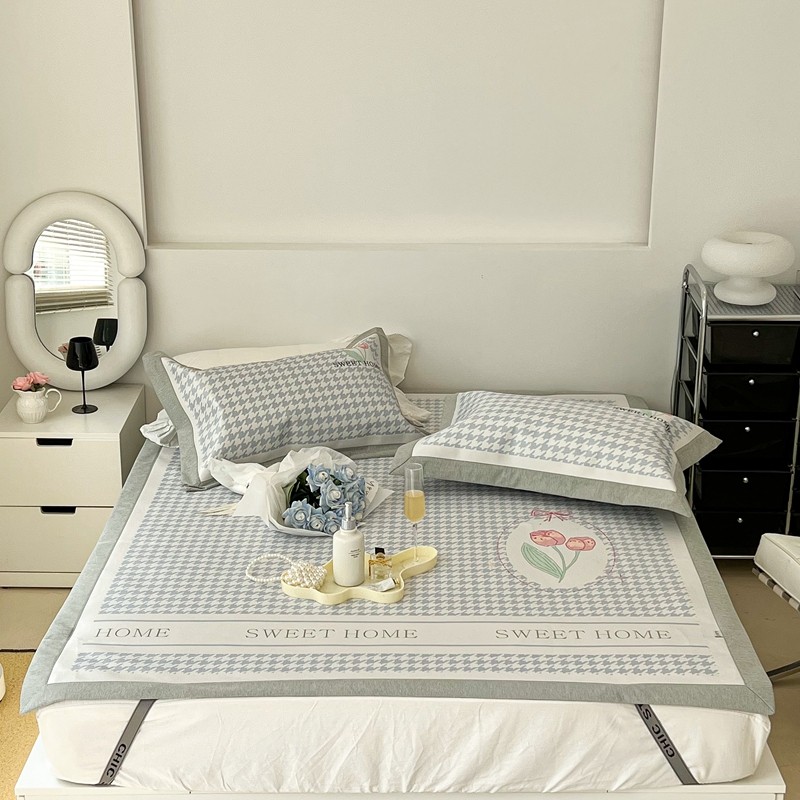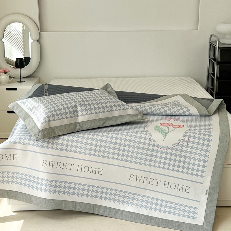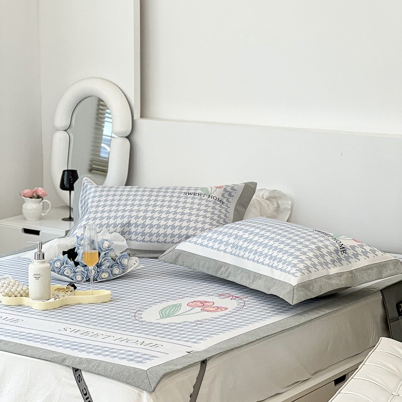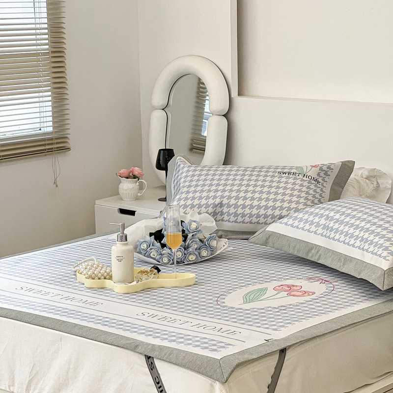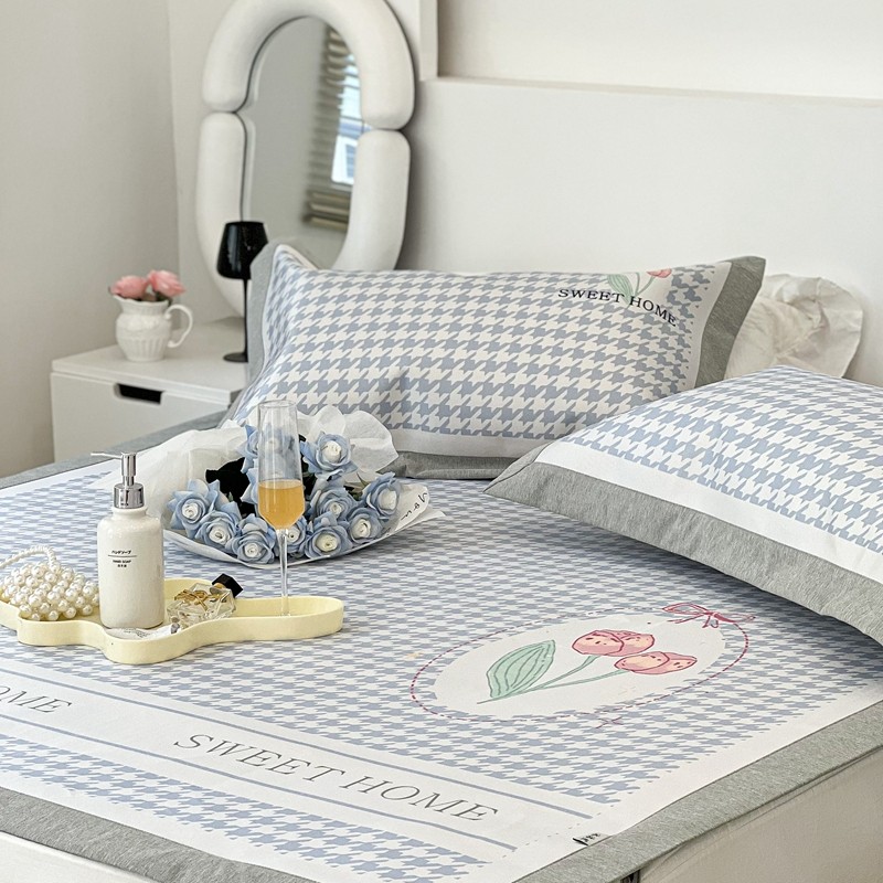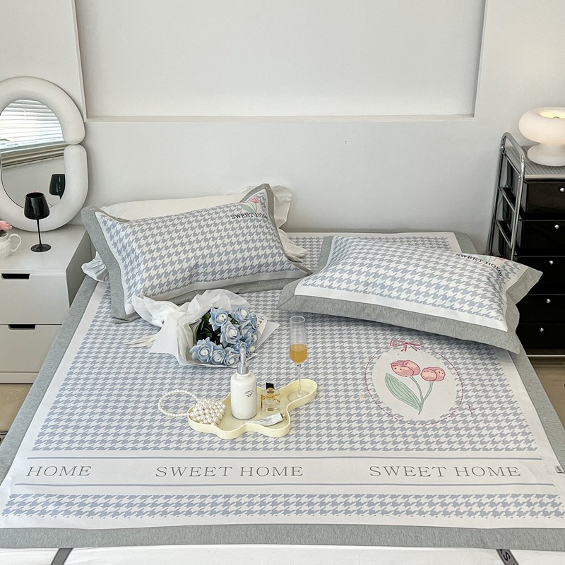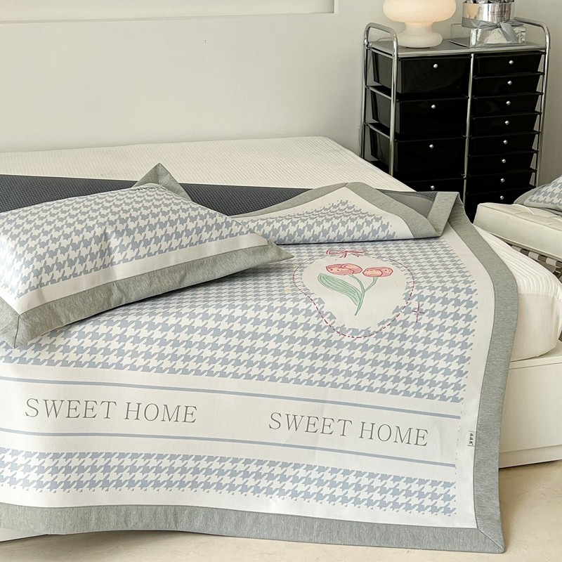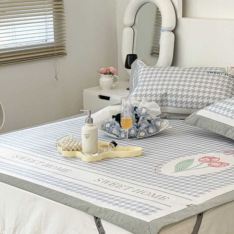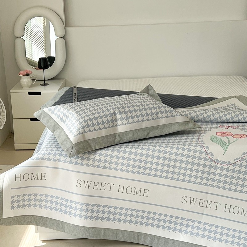 昔可 2022新款大版数码水洗冰沐丝凉席 千鸟格郁金香
