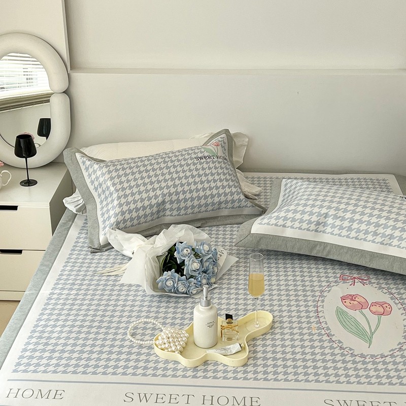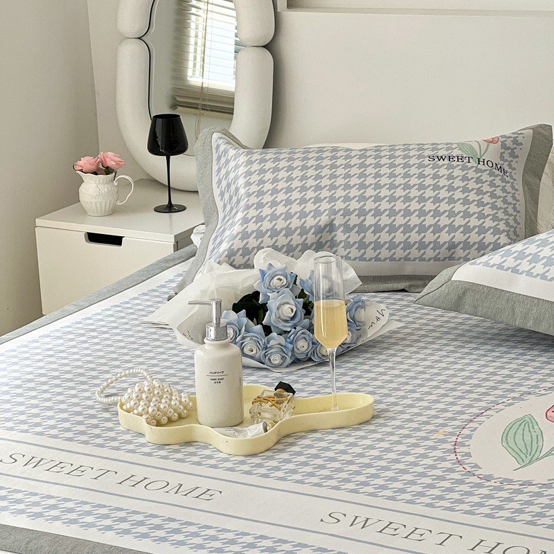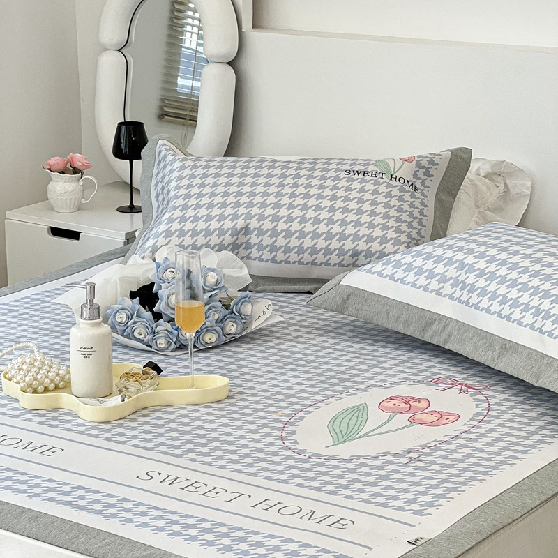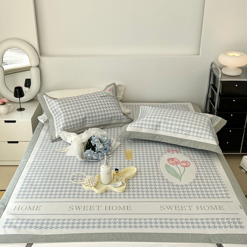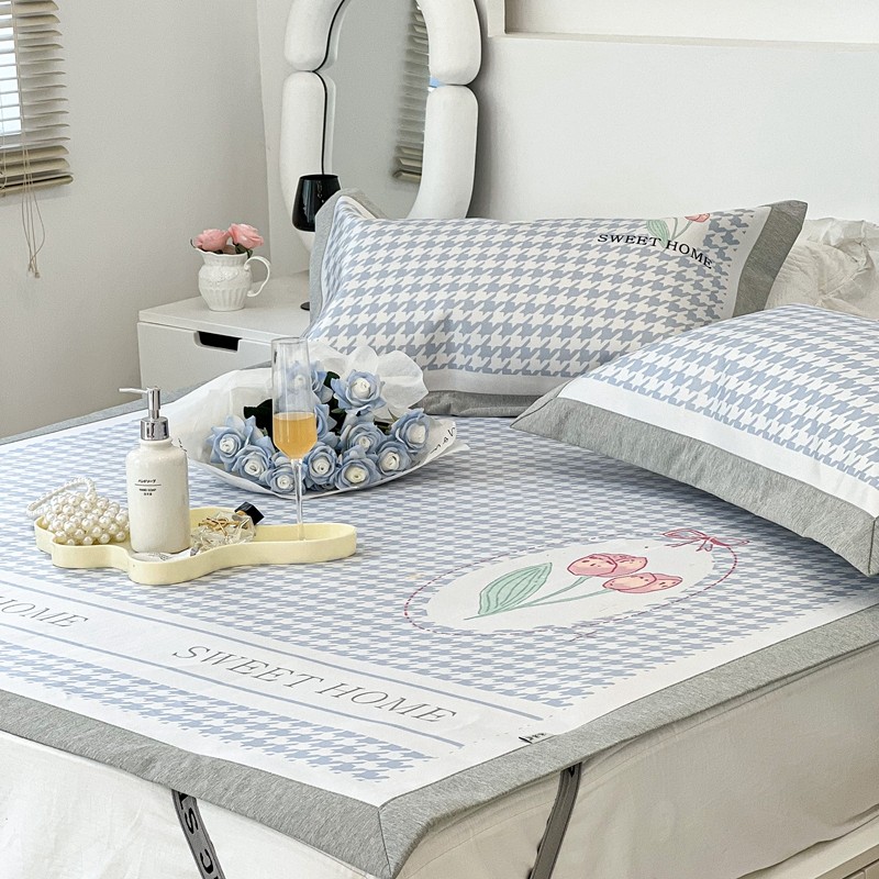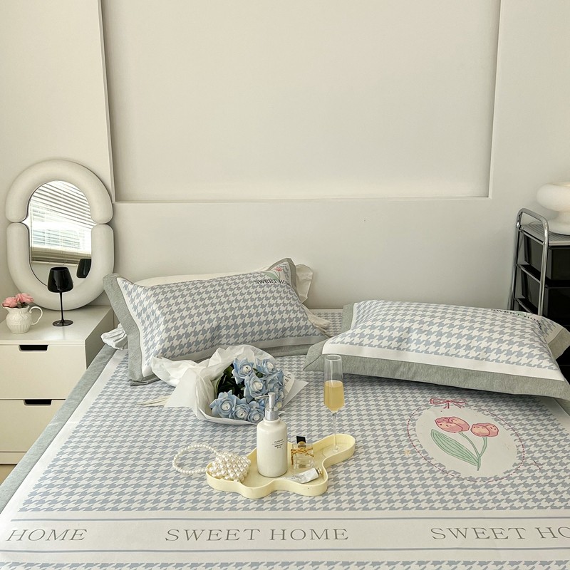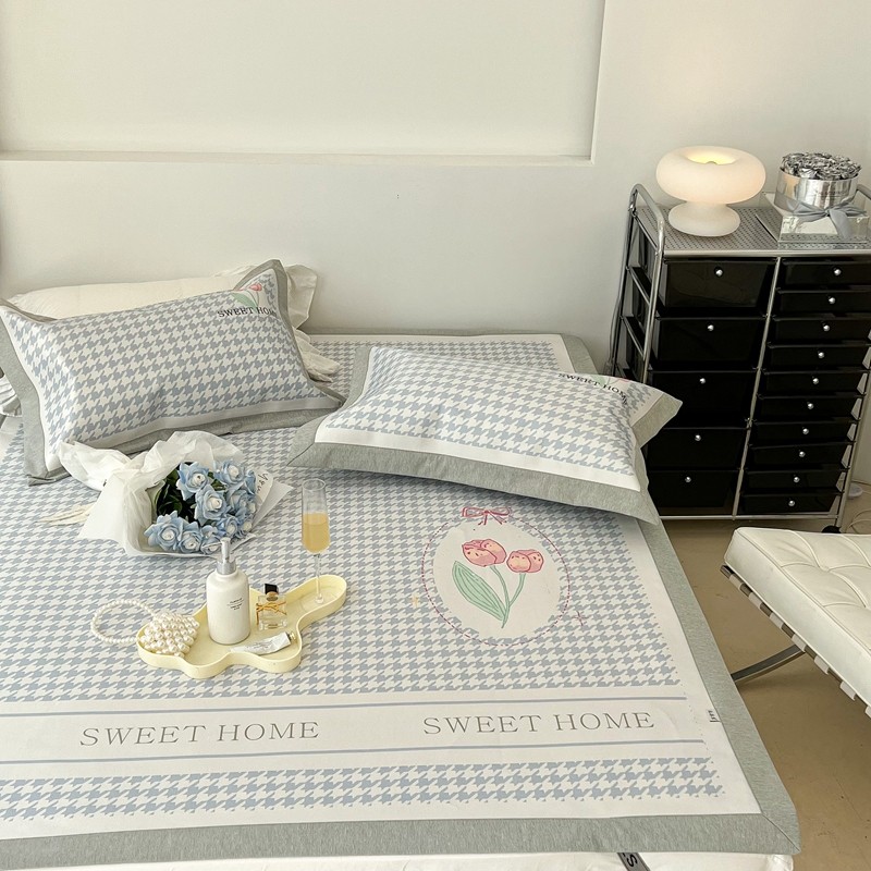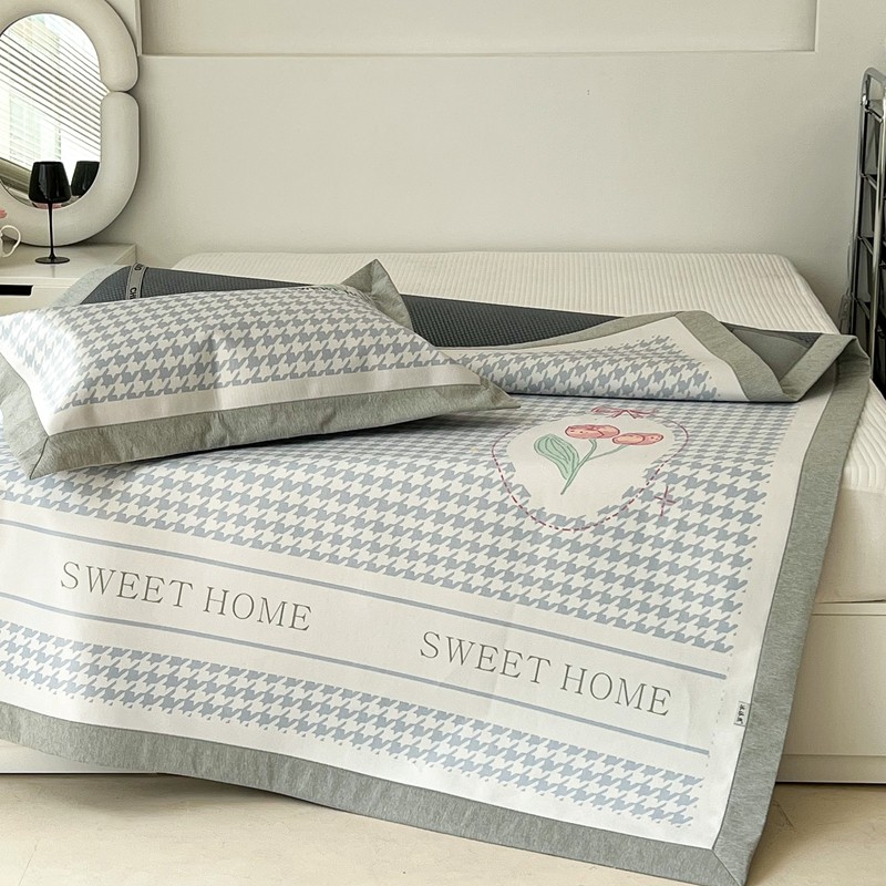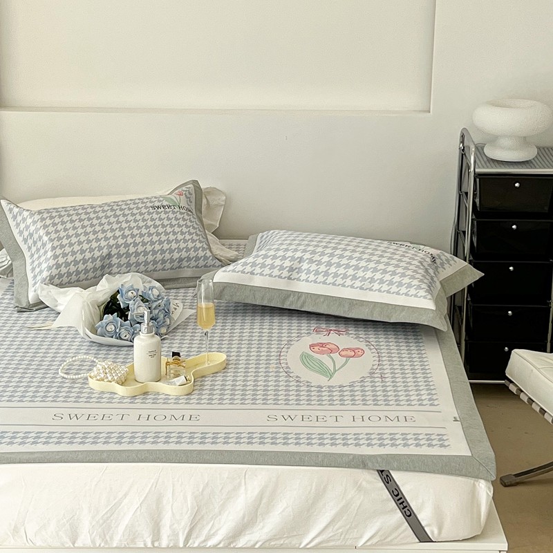 昔可 2022新款大版数码水洗冰沐丝凉席 千鸟格郁金香