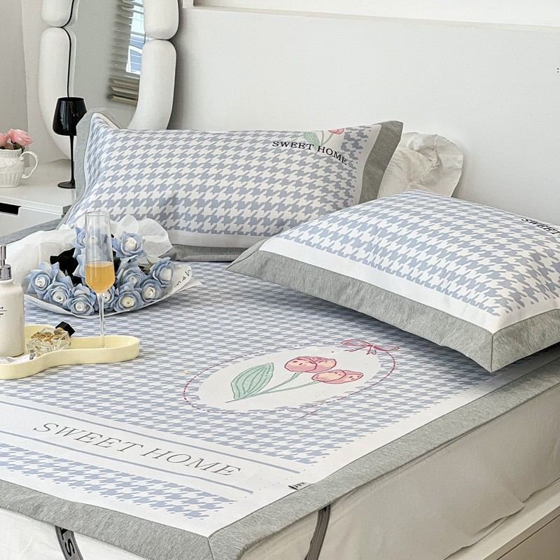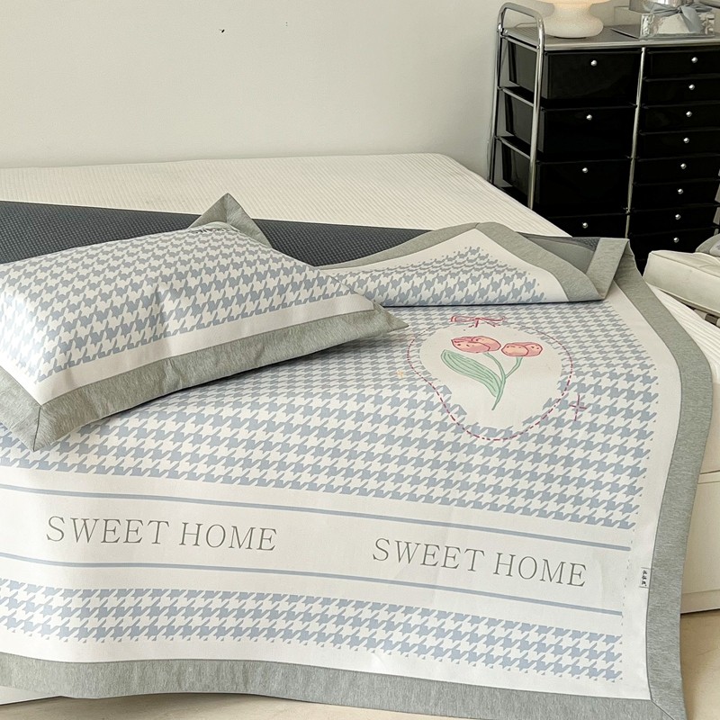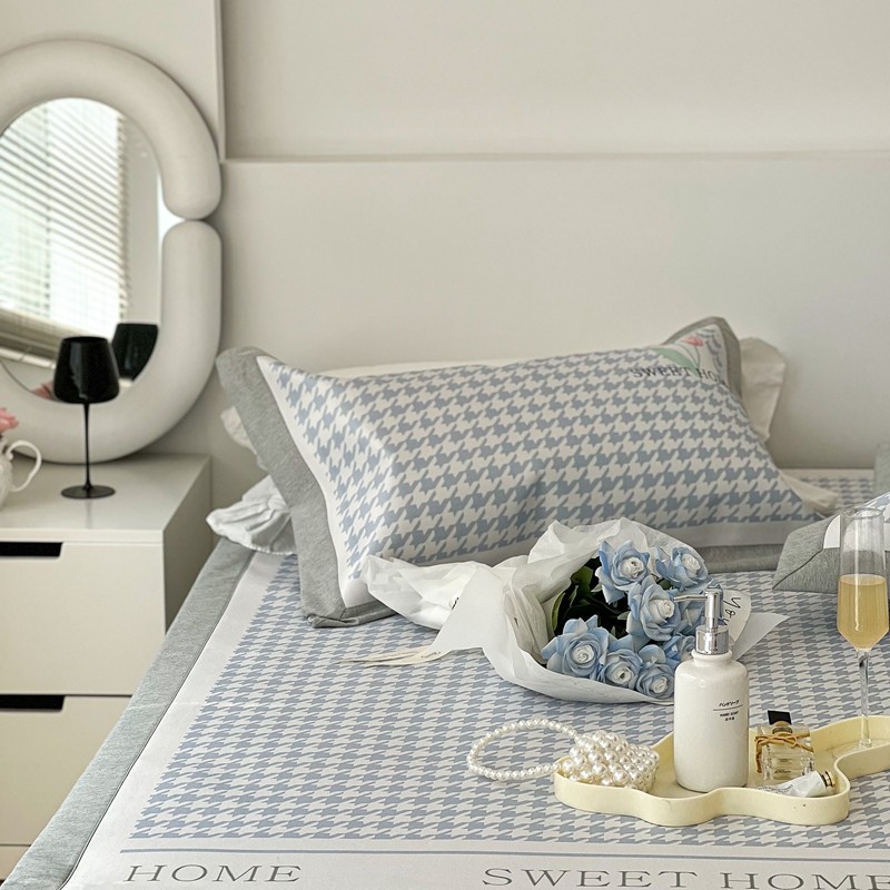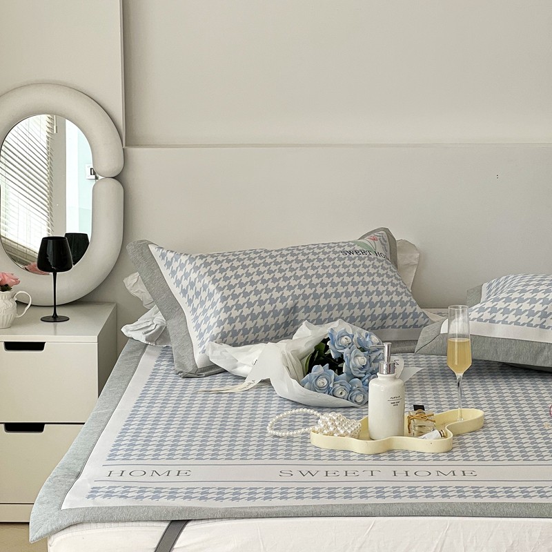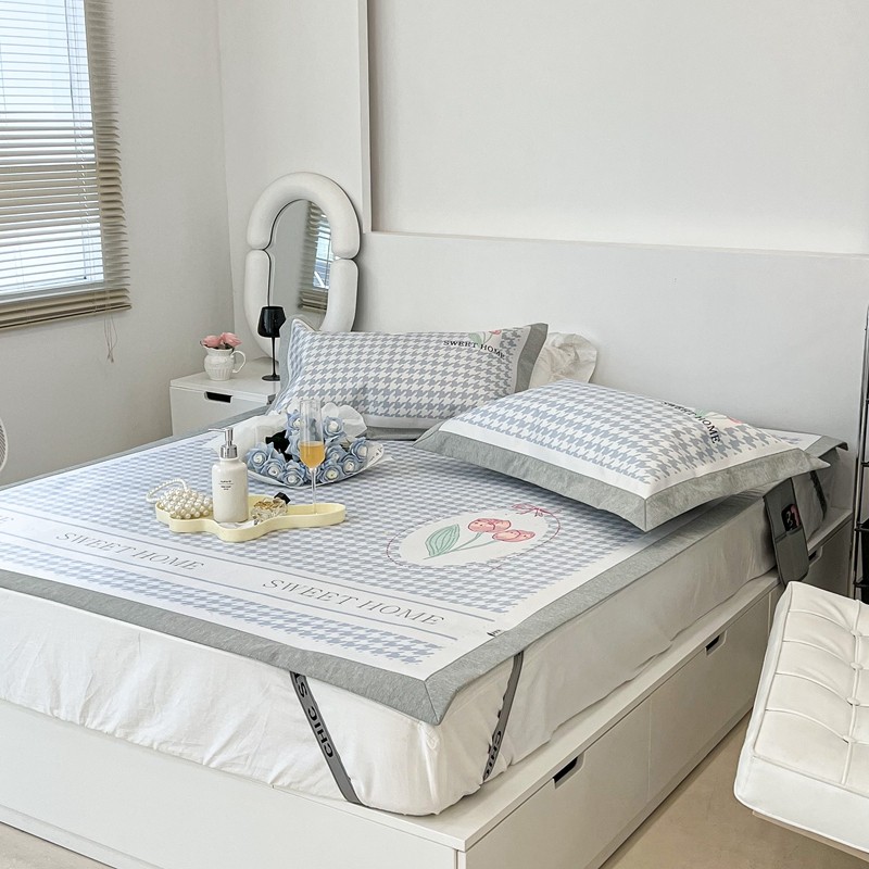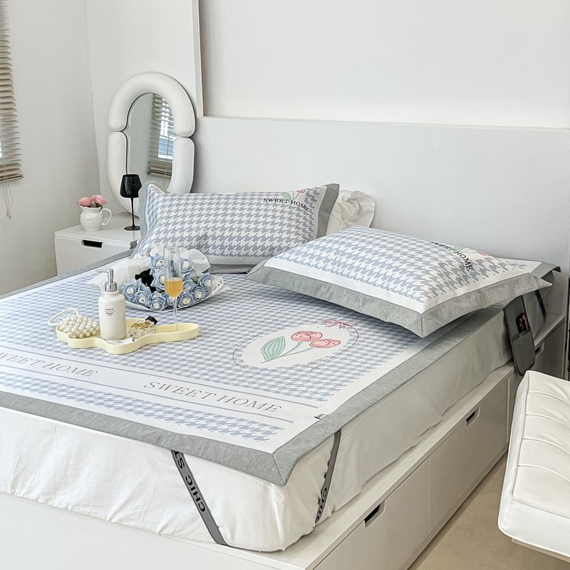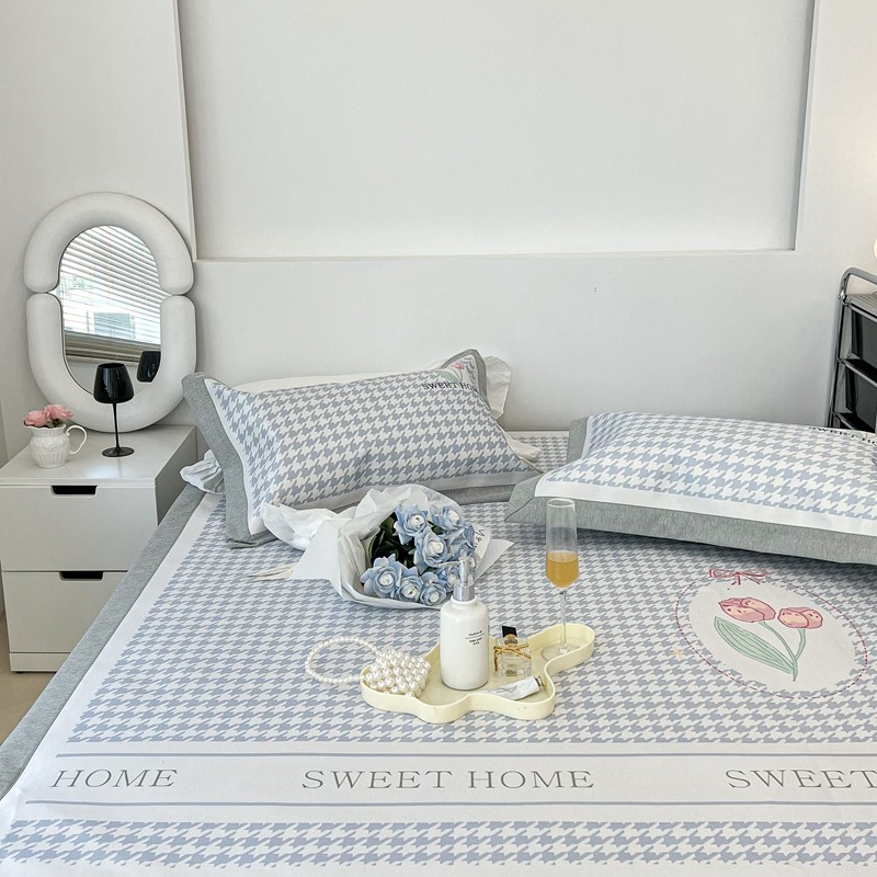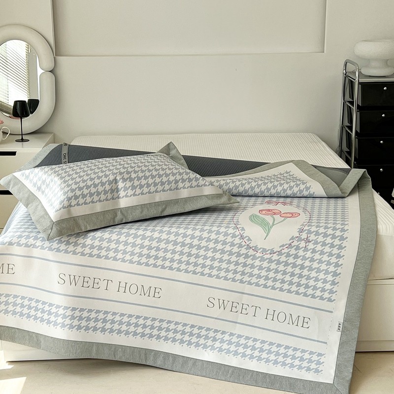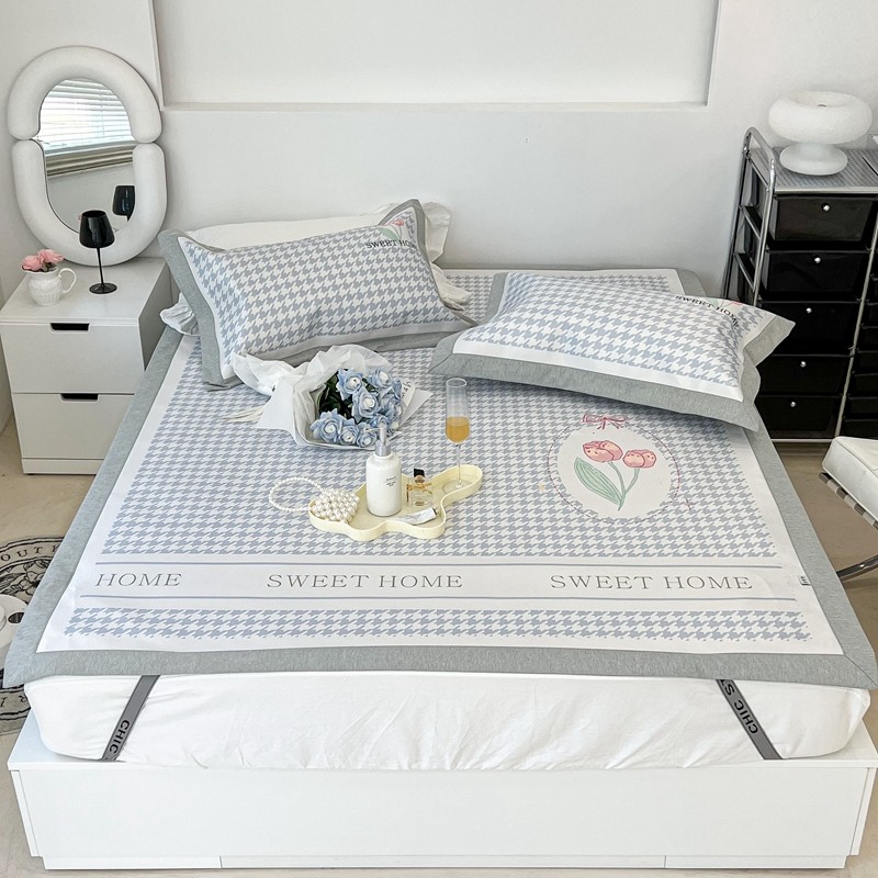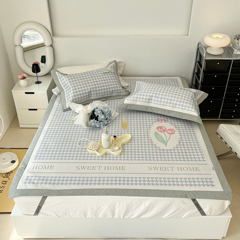 昔可 2022新款大版数码水洗冰沐丝凉席 千鸟格郁金香