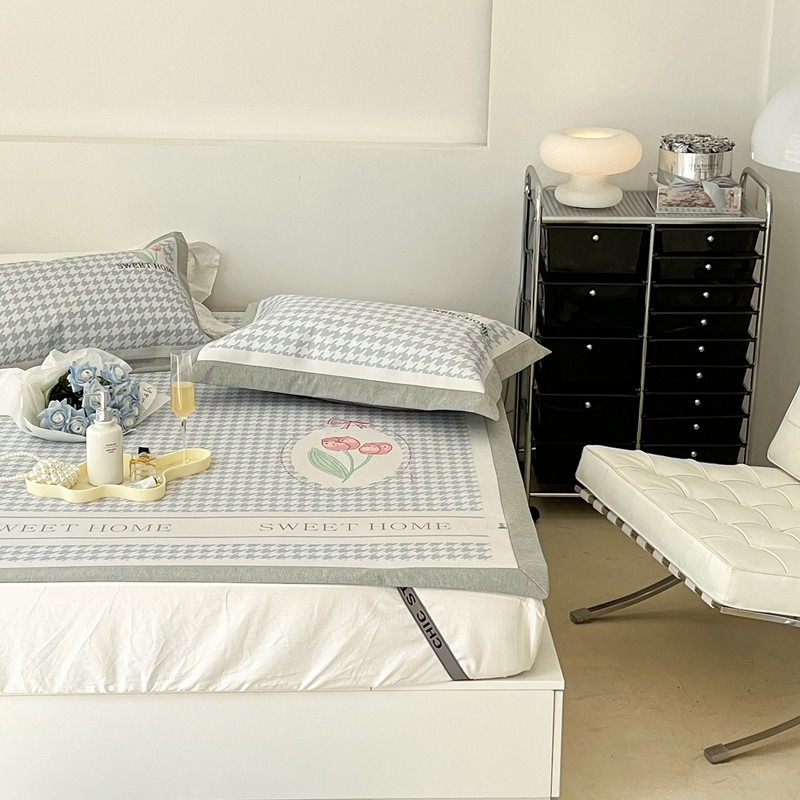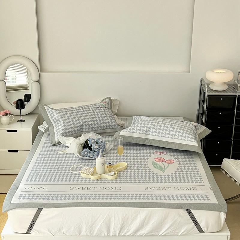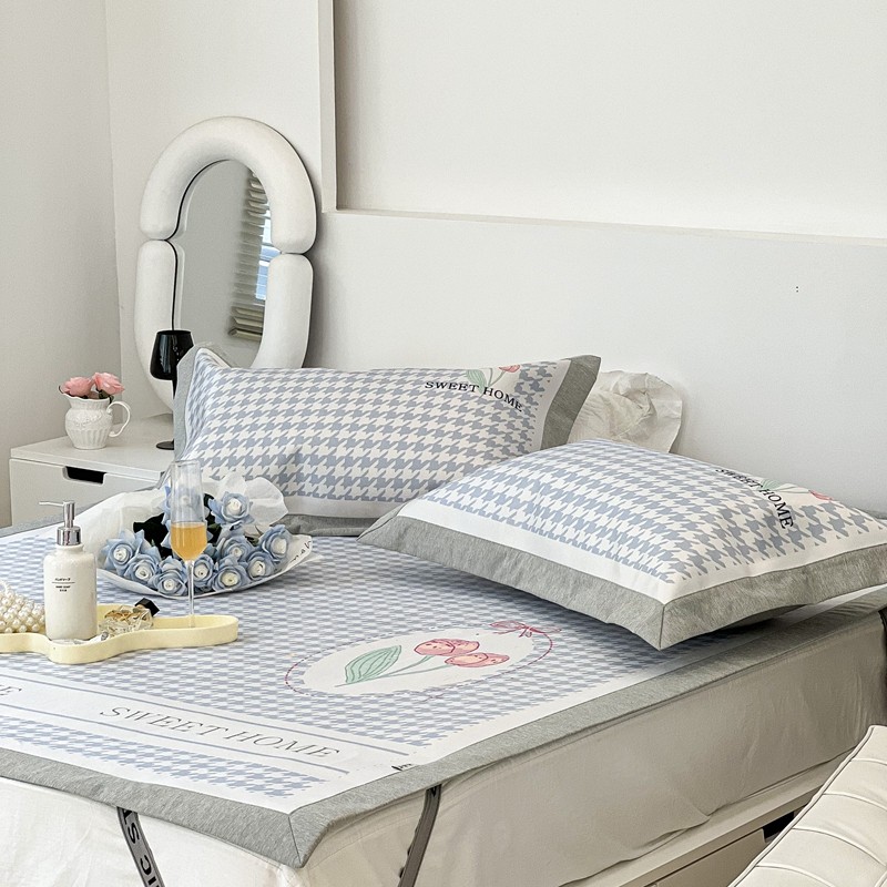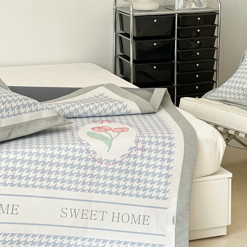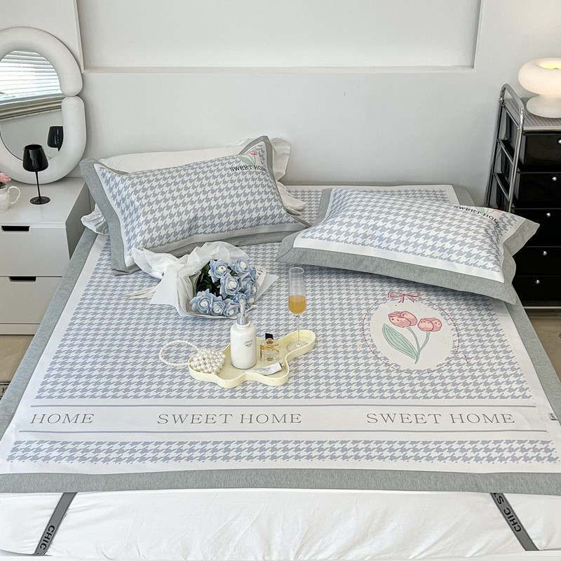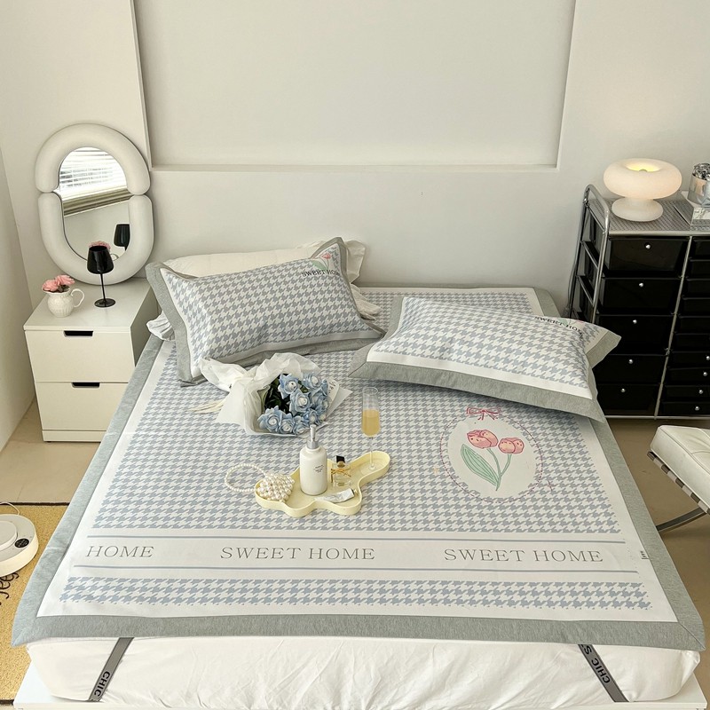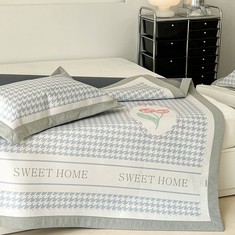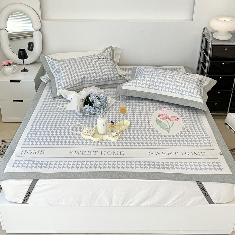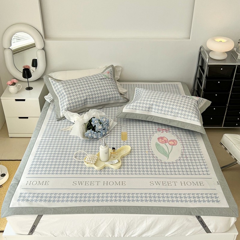 昔可 2022新款大版数码水洗冰沐丝凉席 千鸟格郁金香
