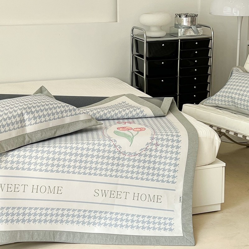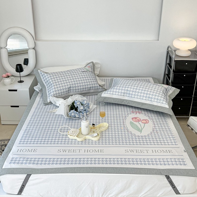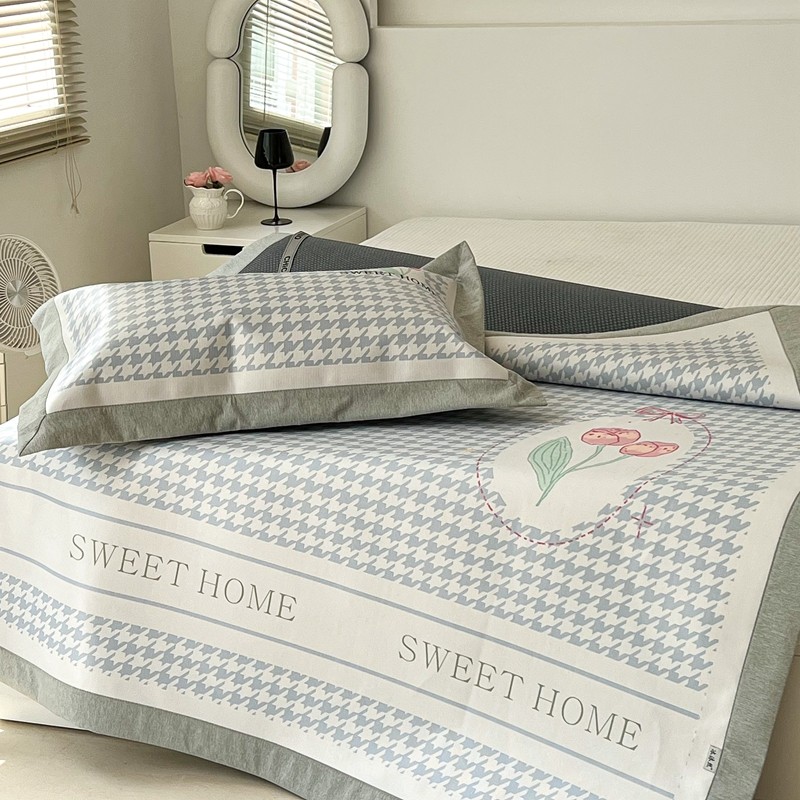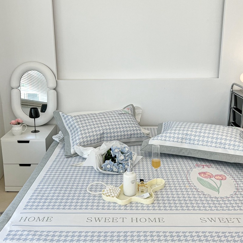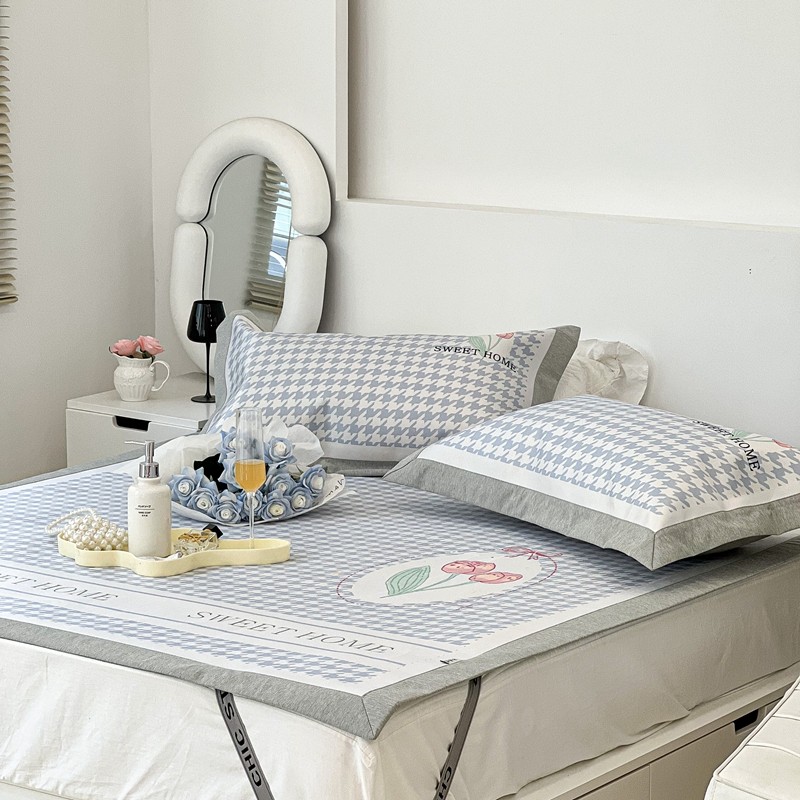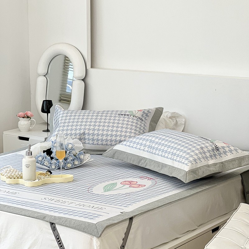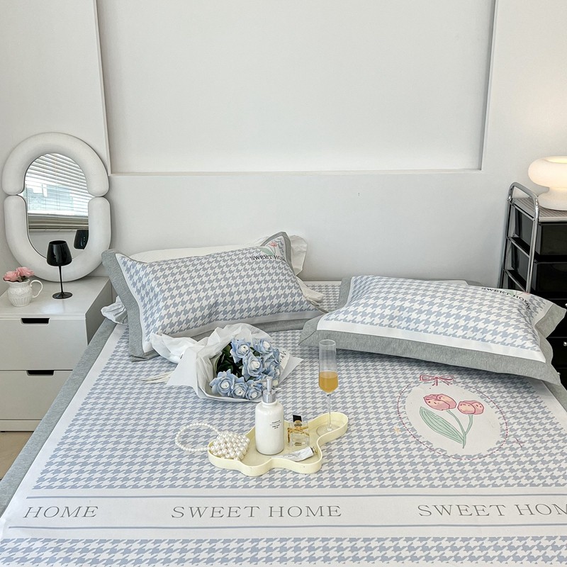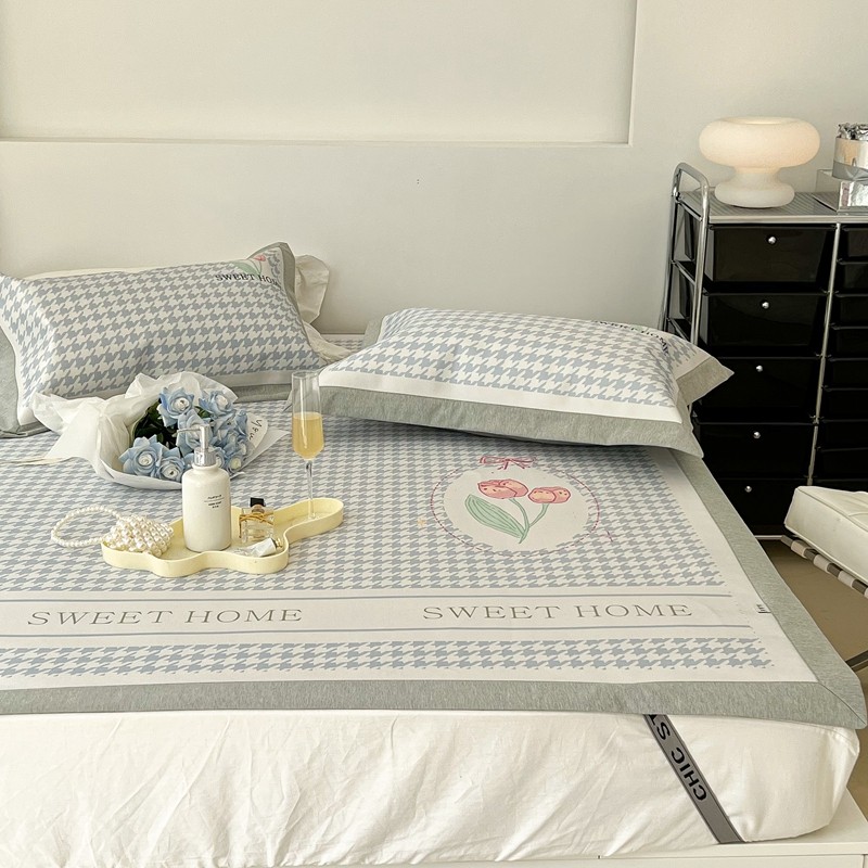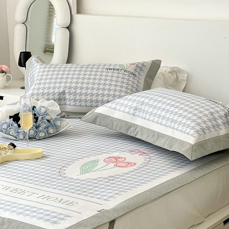昔可 2022新款大版数码水洗冰沐丝凉席 千鸟格郁金香