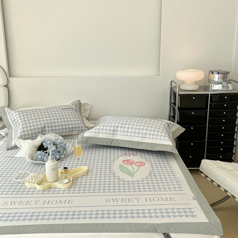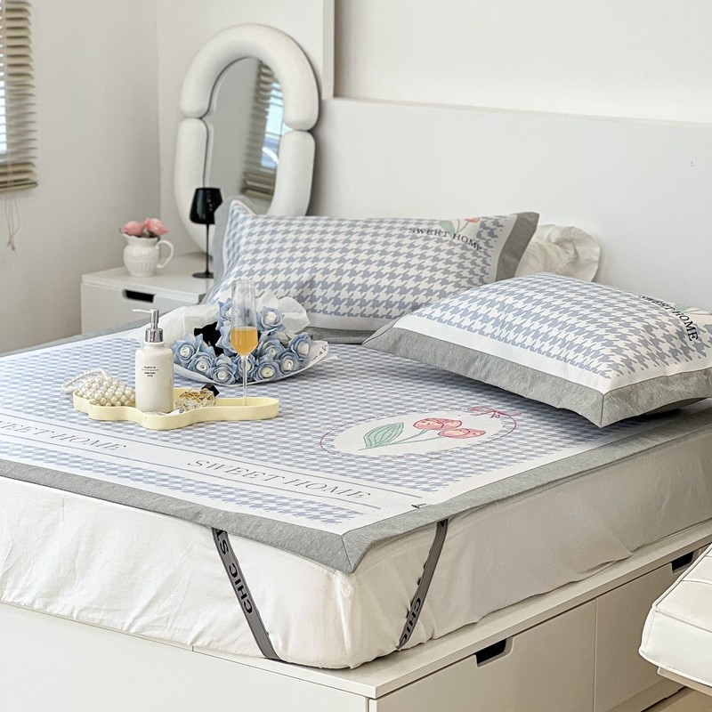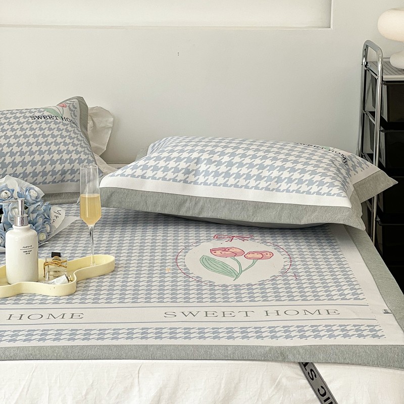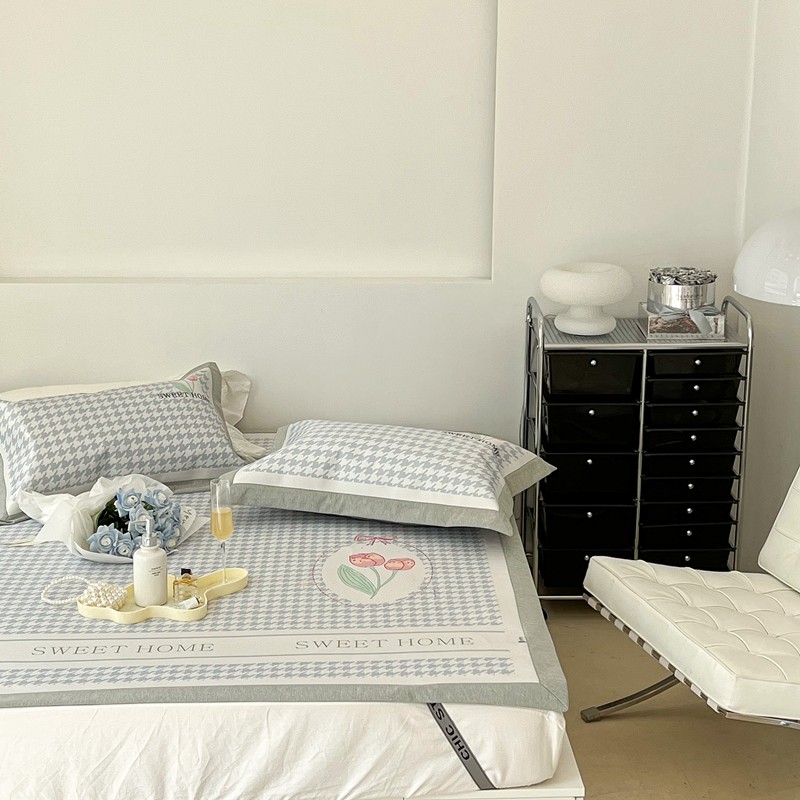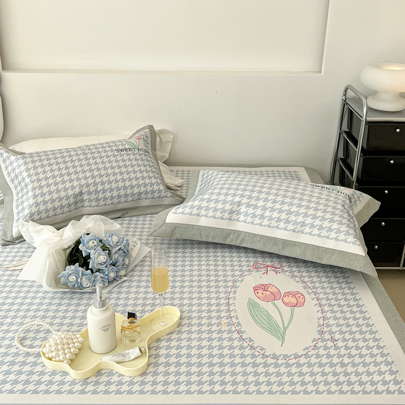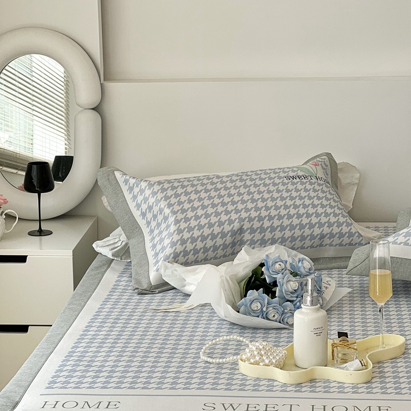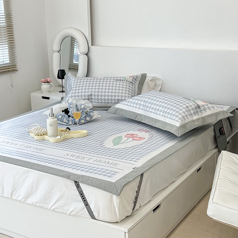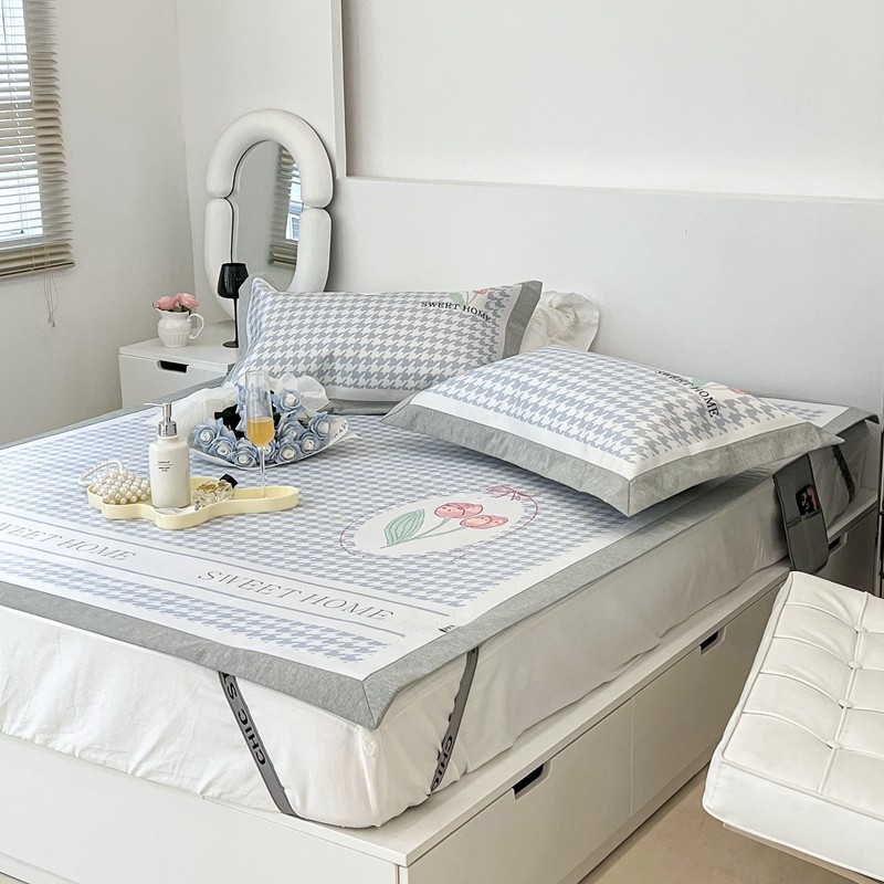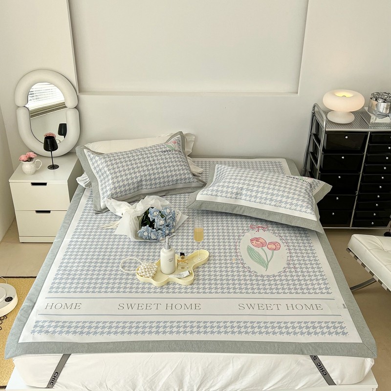 昔可 2022新款大版数码水洗冰沐丝凉席 千鸟格郁金香
