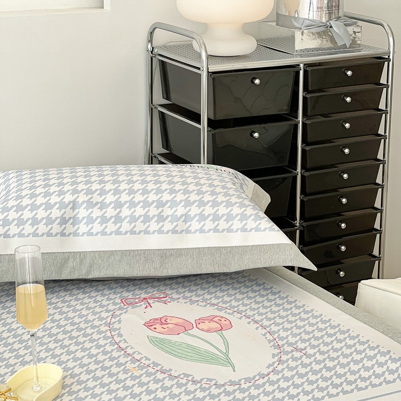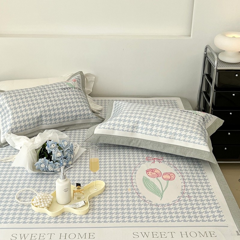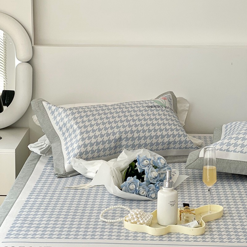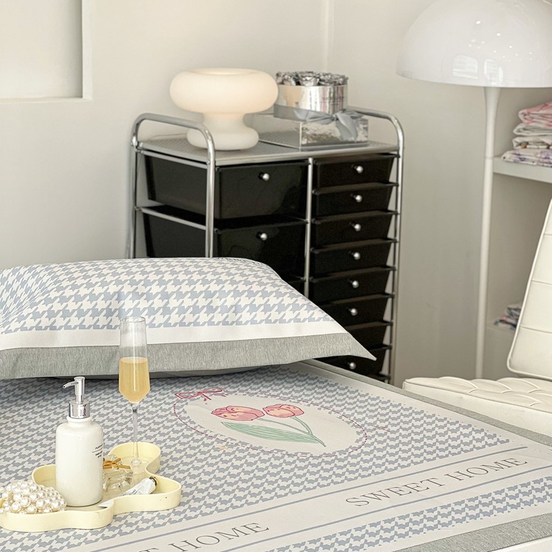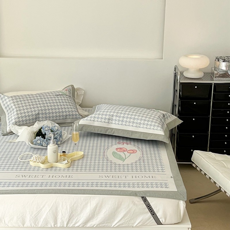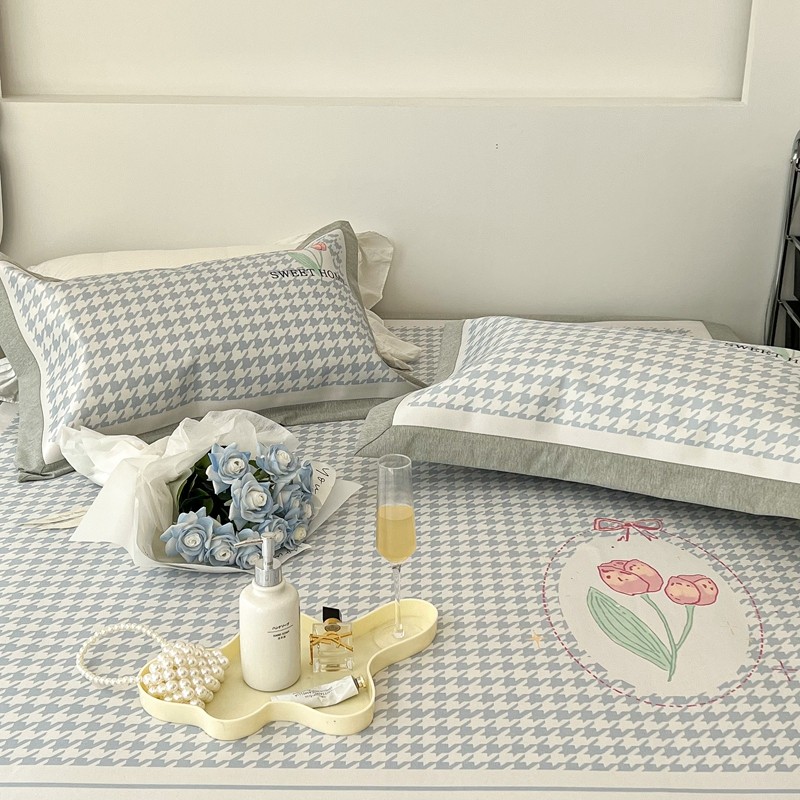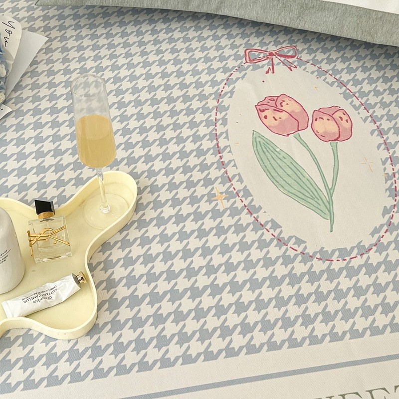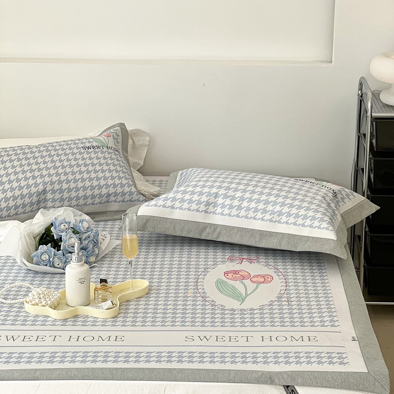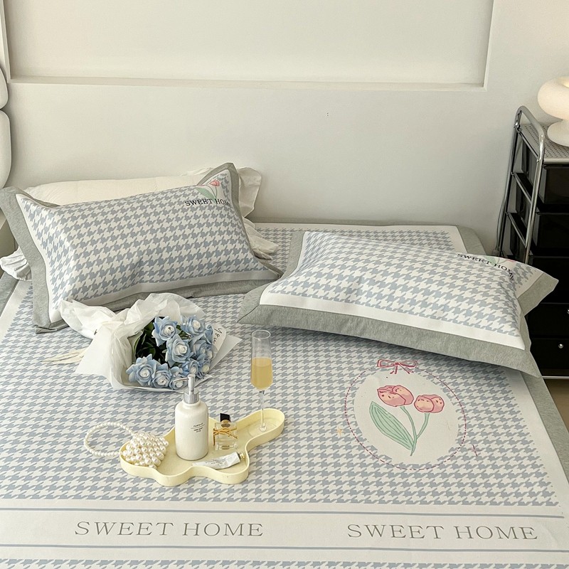 昔可 2022新款大版数码水洗冰沐丝凉席 千鸟格郁金香