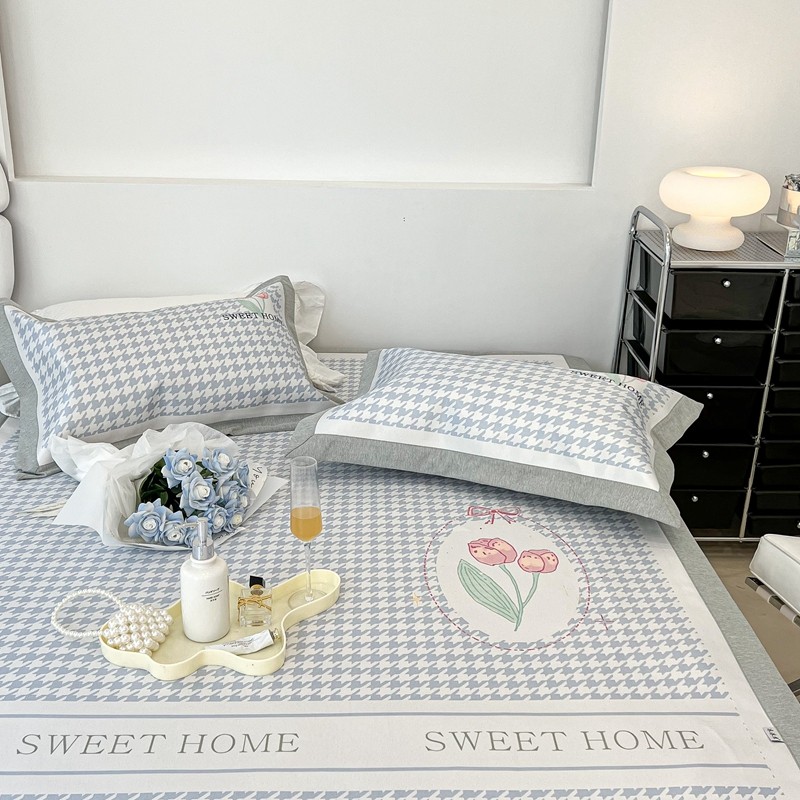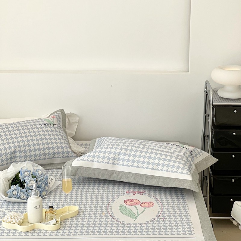 (总)昔可 2023新款全棉ins格子混搭系列四件套,ins简约绿格,粉蓝格,开心果格,学院格纹,粉绿格,海盐兰格,黄绿格,夏日蓝条,芝士黄条,紫芋泥芝士格