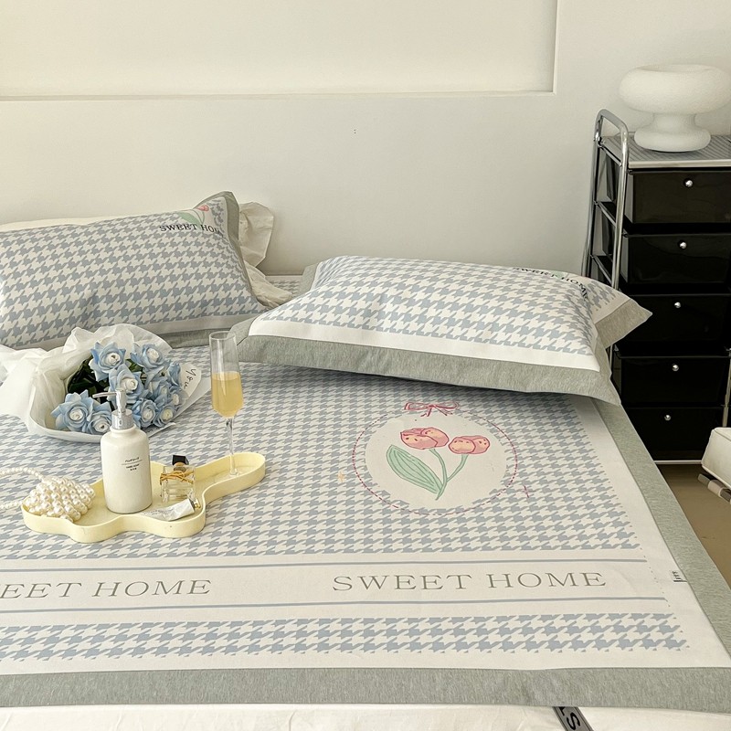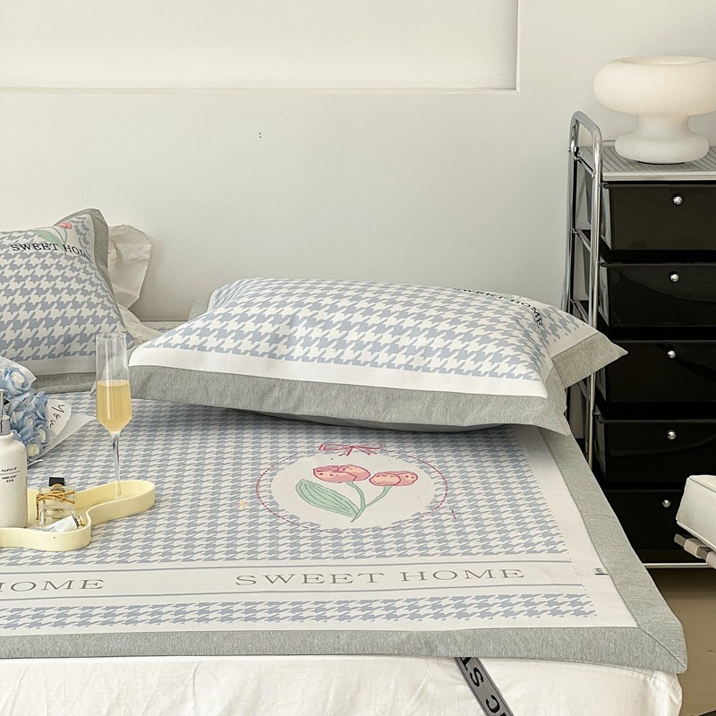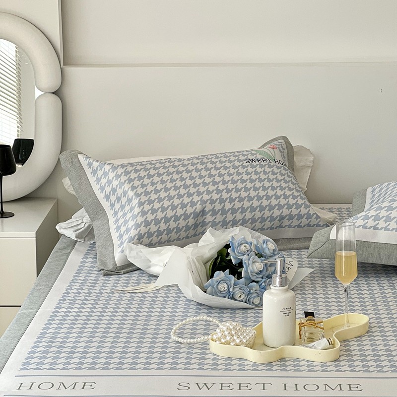 商品名称:昔可 2022新款大版数码水洗冰沐丝凉席 千鸟格郁金香