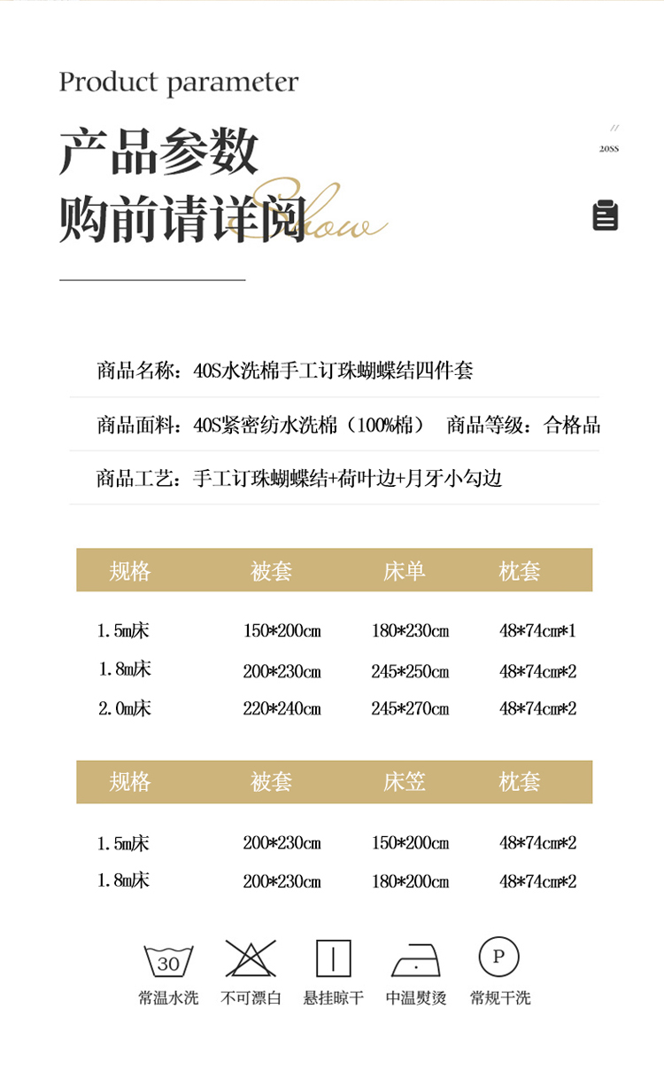 商品名称:玛奇朵 2022新款40S水洗棉手工订珠蝴蝶结-可可妮 可可妮-白
