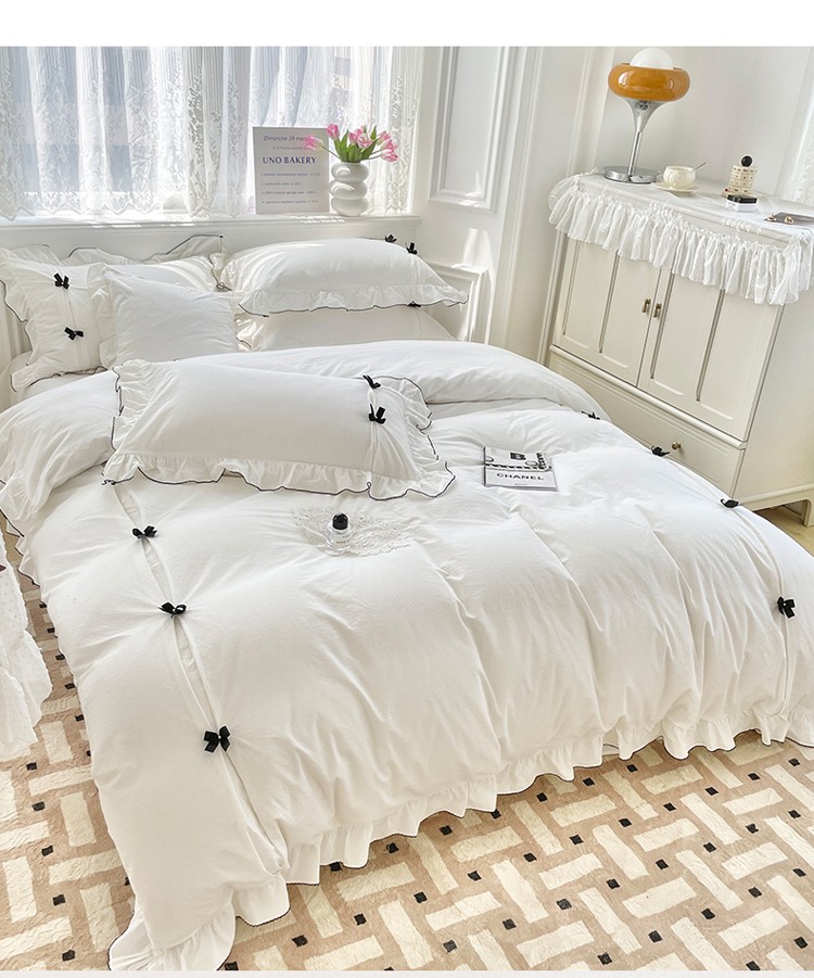 (总)玛奇朵 2025新款韩系少女全棉立体提花四件套-,青纱粉黛