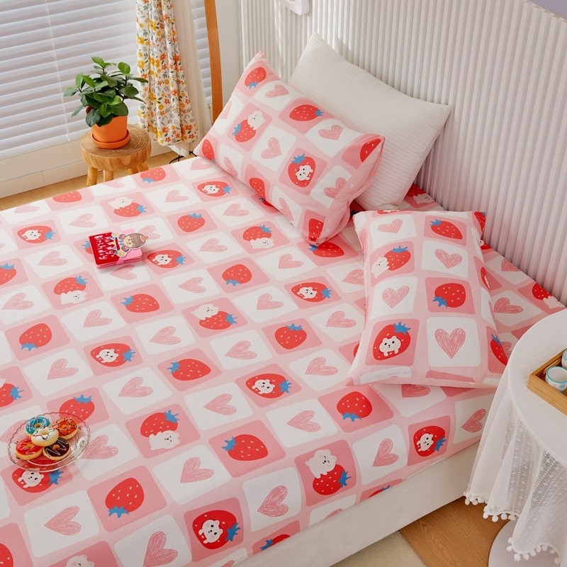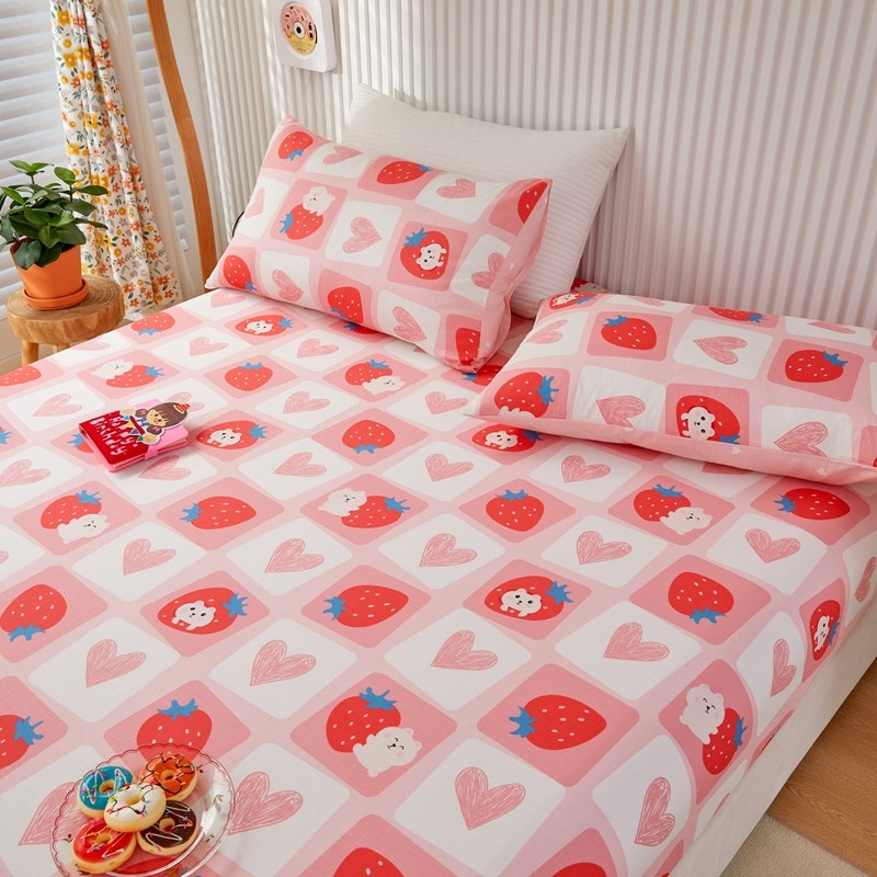 金丝鸟 2022新款全棉床笠单品 草莓牛奶
