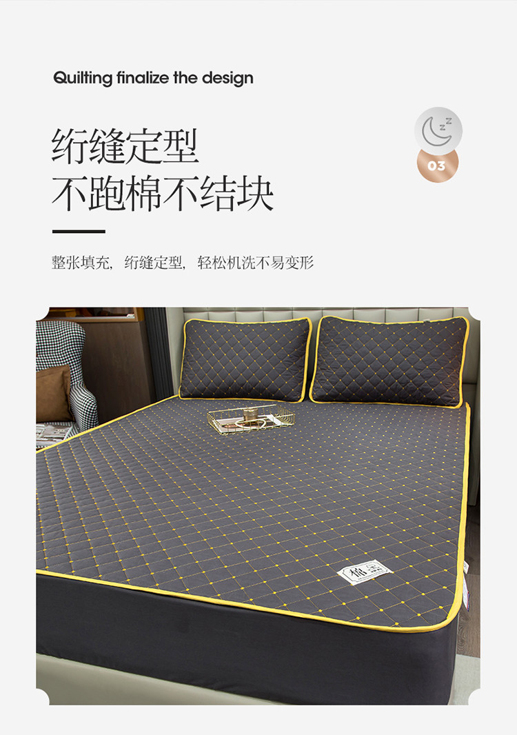 冬然家纺2022新款纯棉床笠夹棉防滑床垫保护垫 满天星石墨灰
