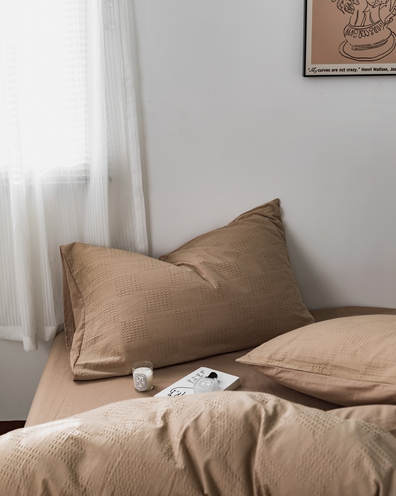 简家居 2022新款全棉华夫棋盘格200-220 咖色