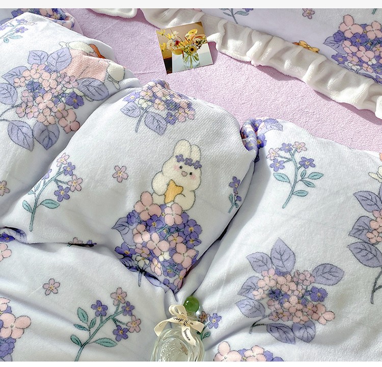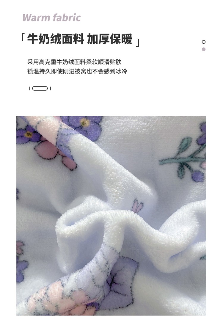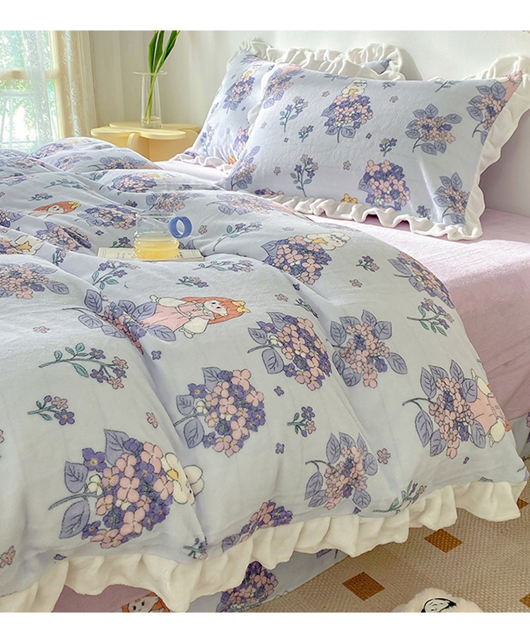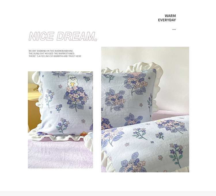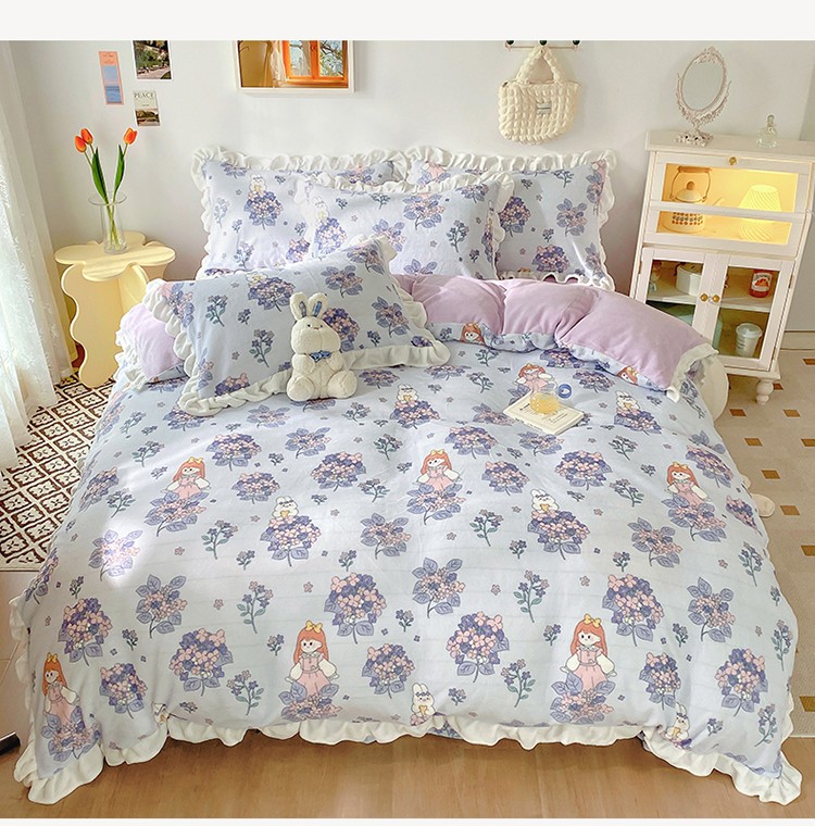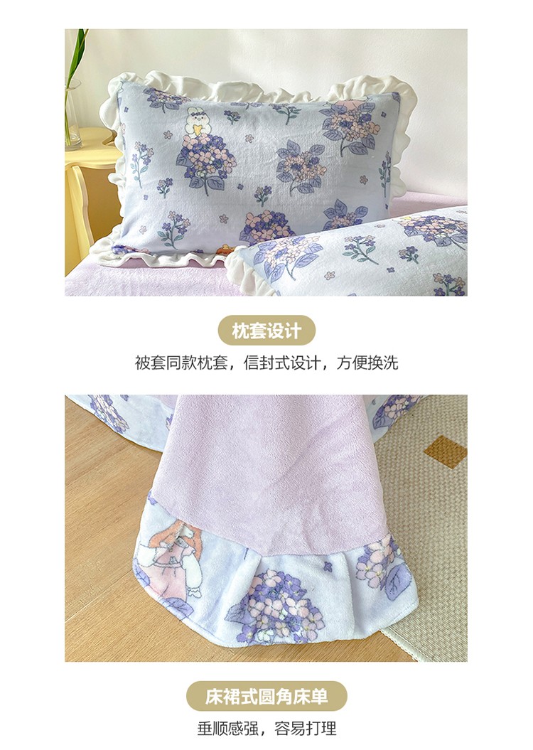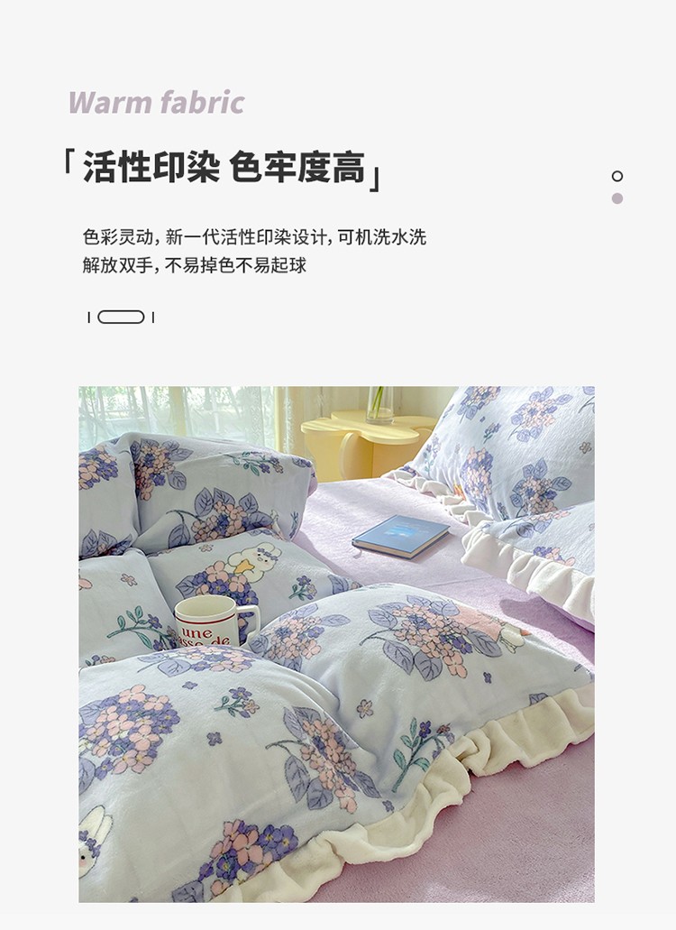 呗旺鹿2022ykk拉链荷叶边印花牛奶绒四件套法莱绒梦想绽放