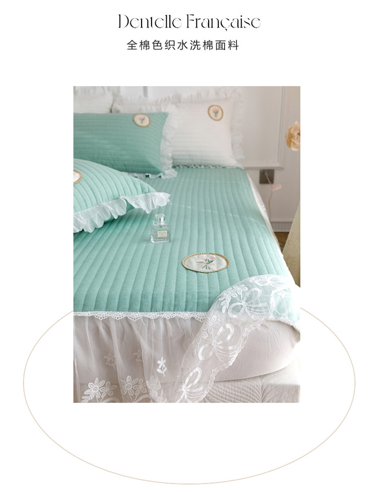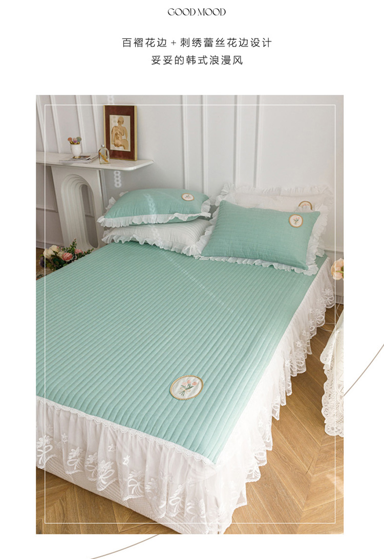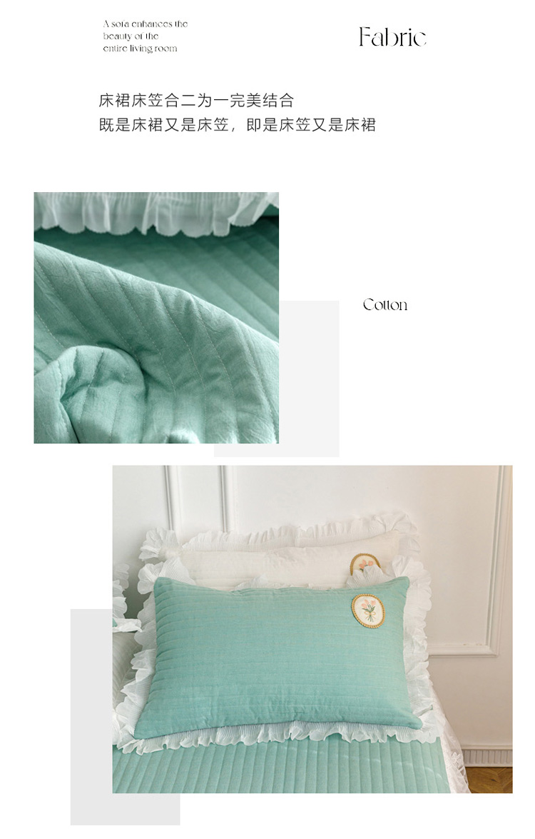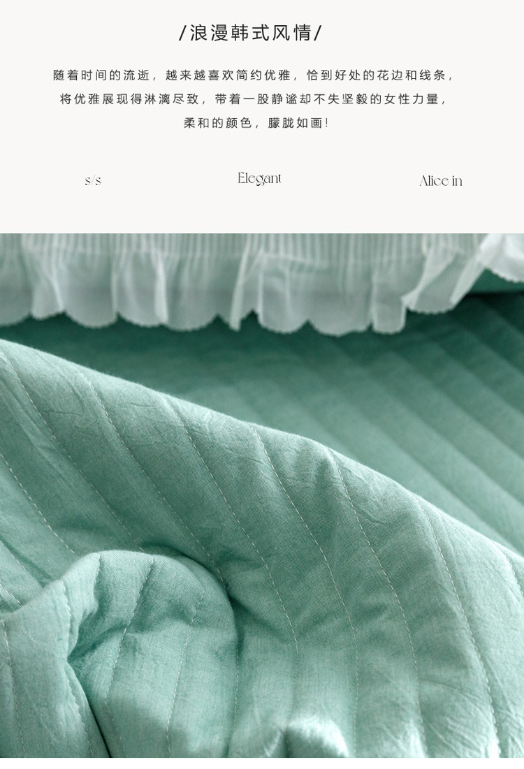 • 91家纺网 家纺一手货源 找家纺 菊上  2022新款色织水洗棉床裙床笠-郁金香 绿