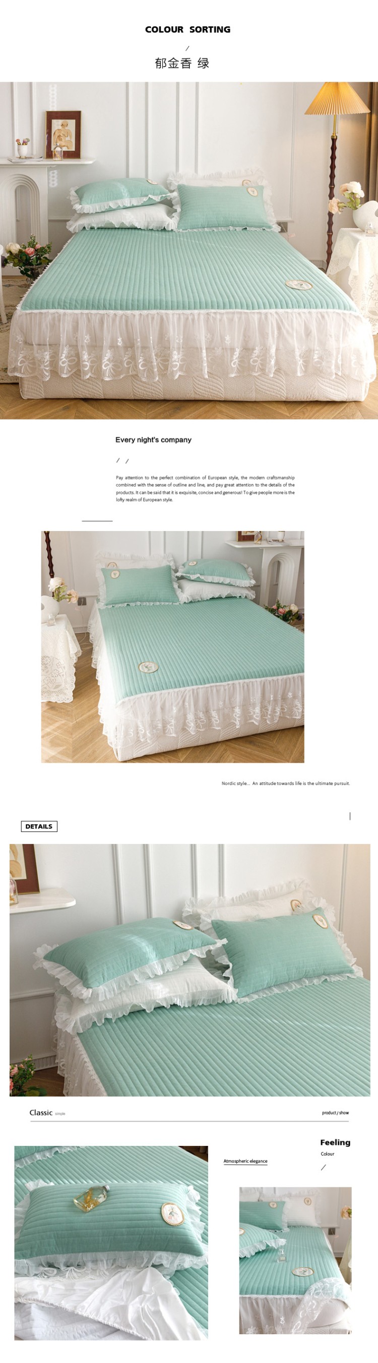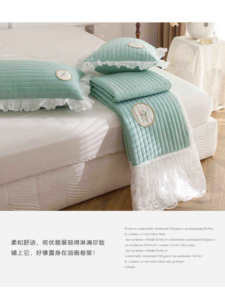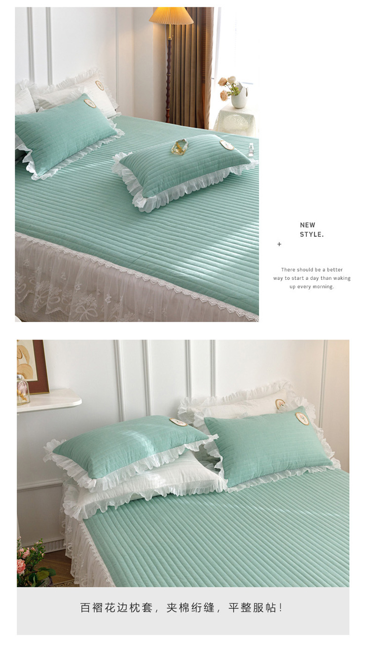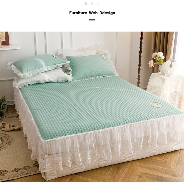 • 91家纺网 家纺一手货源 找家纺 菊上  2022新款色织水洗棉床裙床笠-郁金香 绿