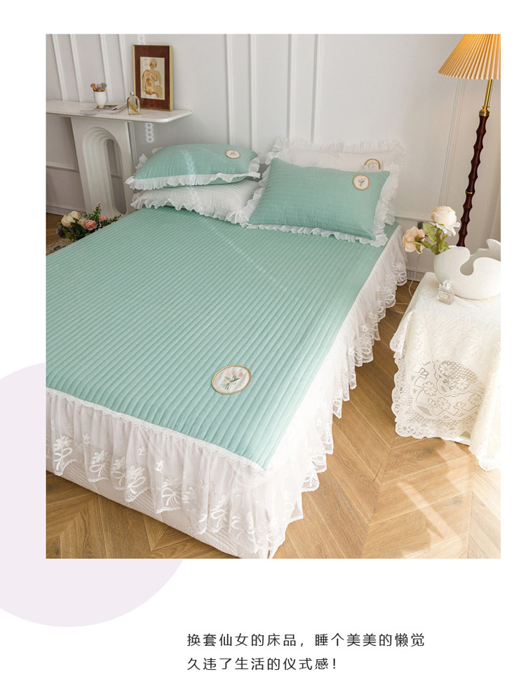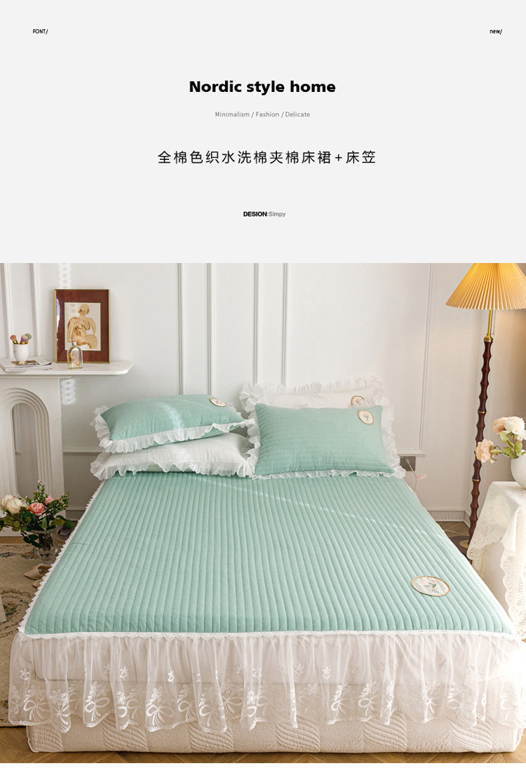 菊上 2022新款色织水洗棉床裙床笠-郁金香 绿