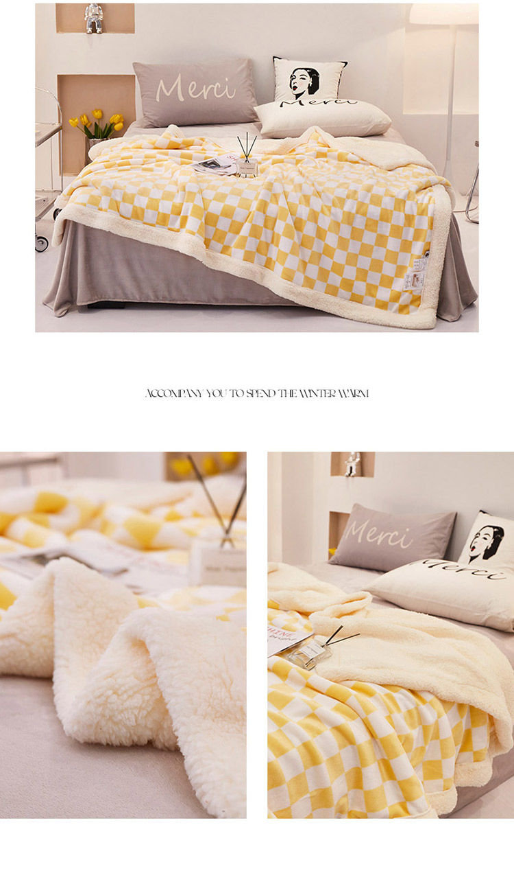 商品名称:席之家 2024新加厚保暖棋盘格羊羔绒毛毯盖毯子 香蕉黄