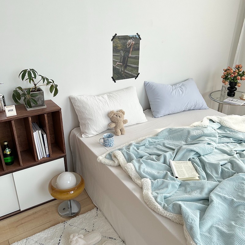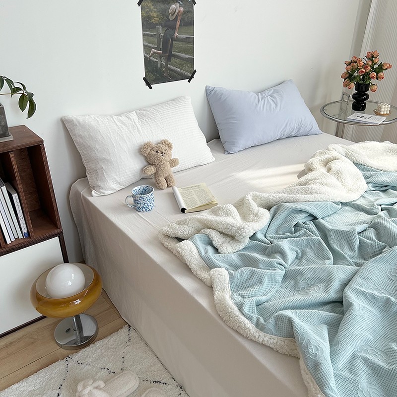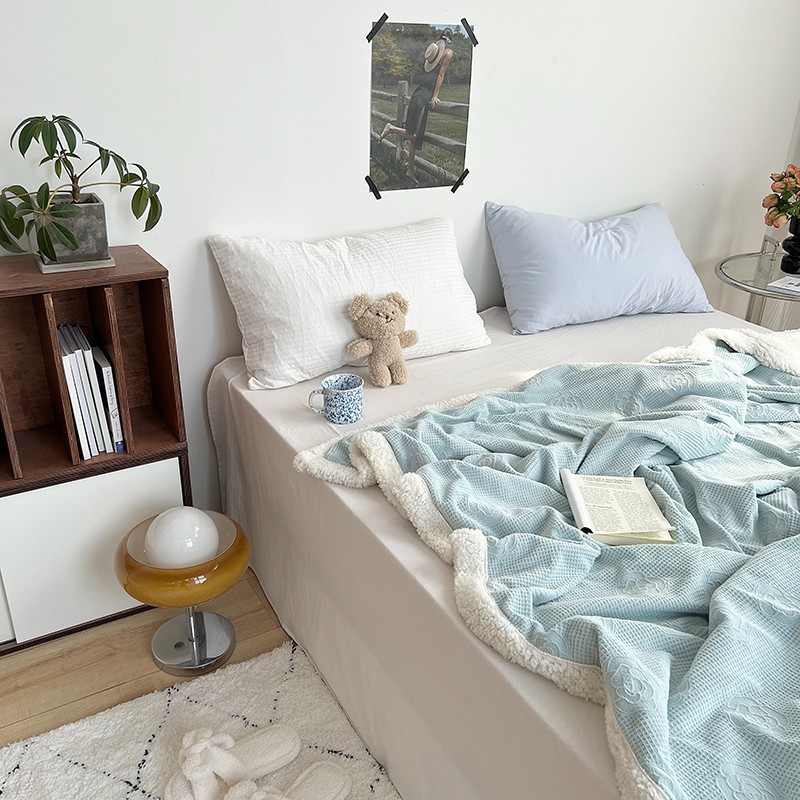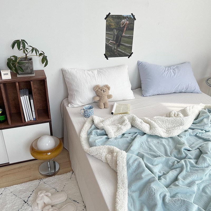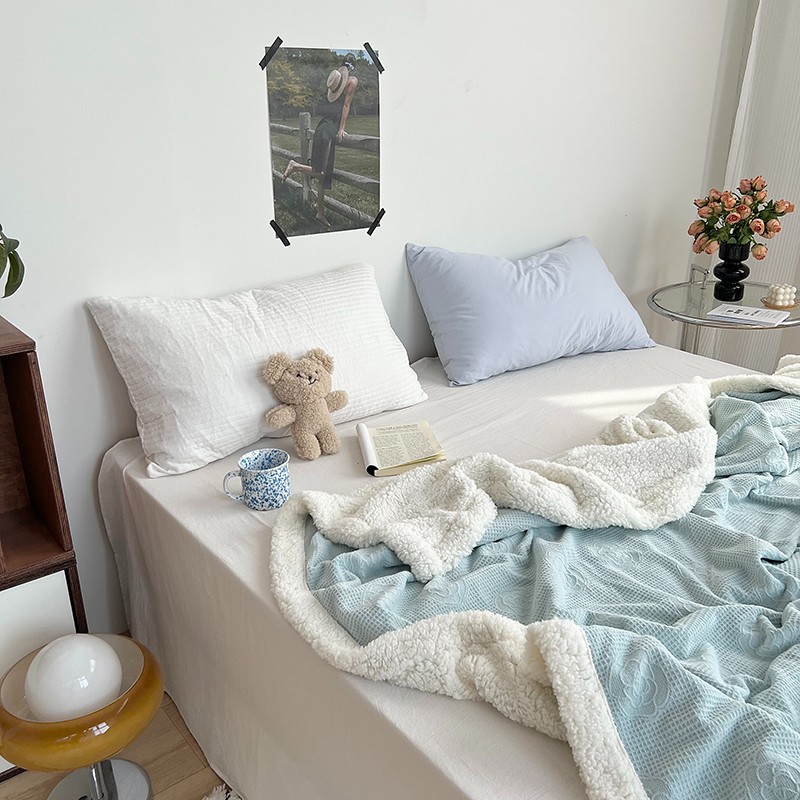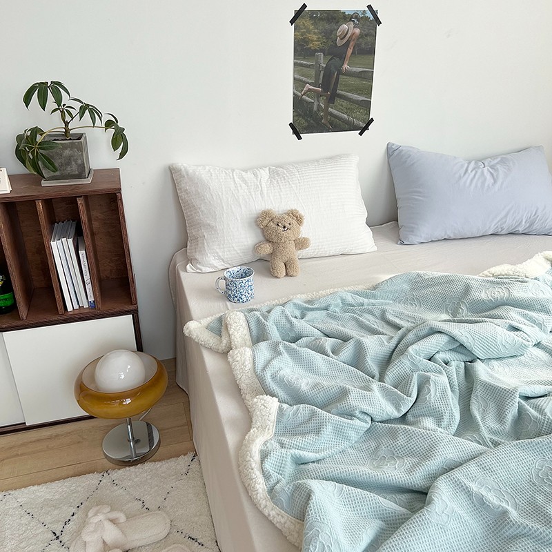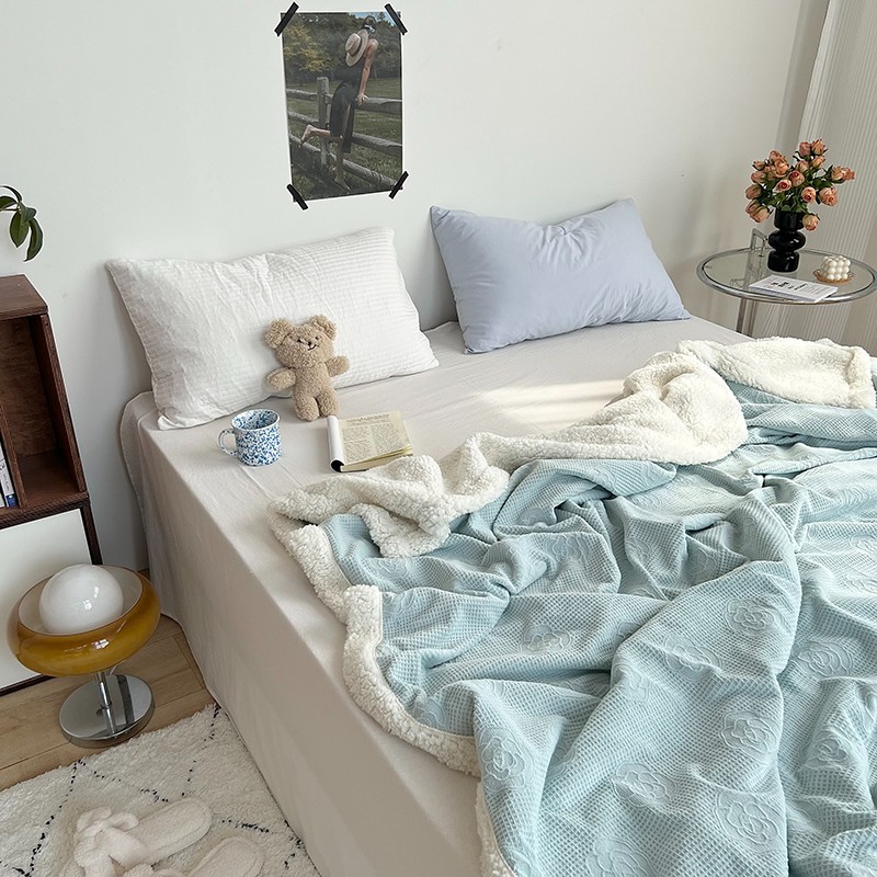 商品名称:六巷胡同 2022新款山茶花牛奶绒拼羊羔绒毯 水绿