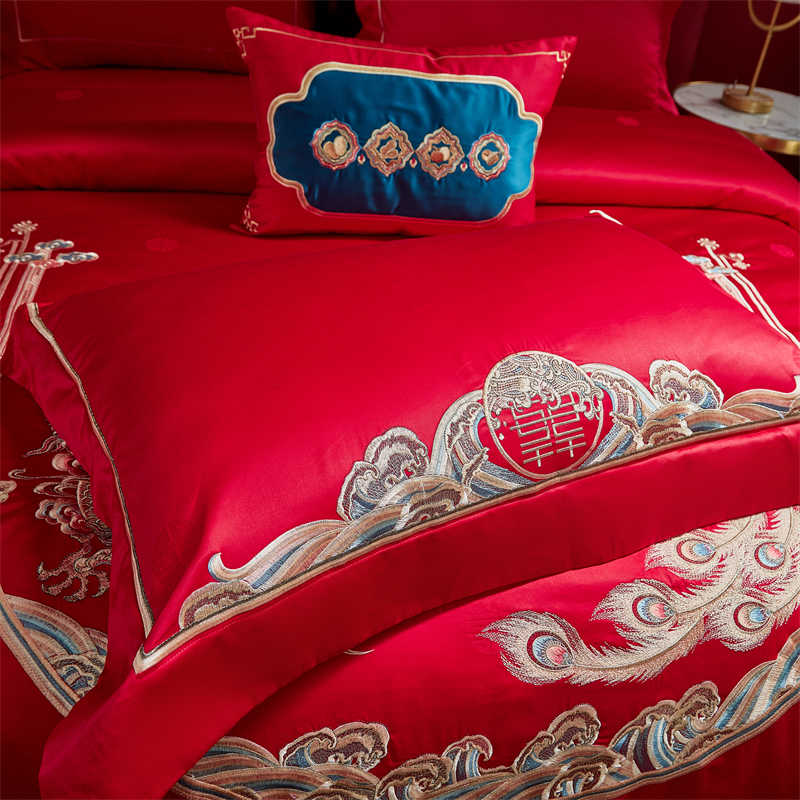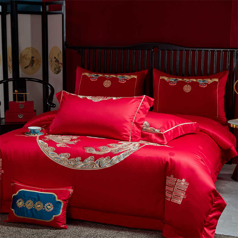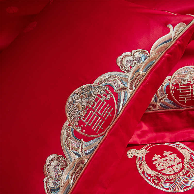 高大尚婚庆馆 2025新款长绒棉囍嫁系列婚庆四件套 格调,格调