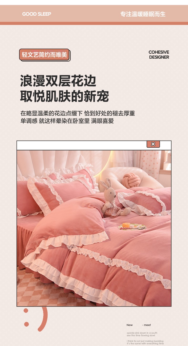 当前位置: 91家纺网 > 商品网购 > 床品套件 > 四件套 > 牛奶绒四件套 > 逸尚阁-2022新款双层花边牛奶绒四件套件套 唯美-高贵紫