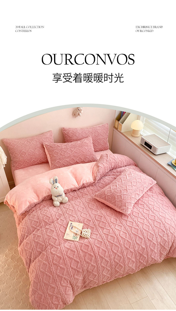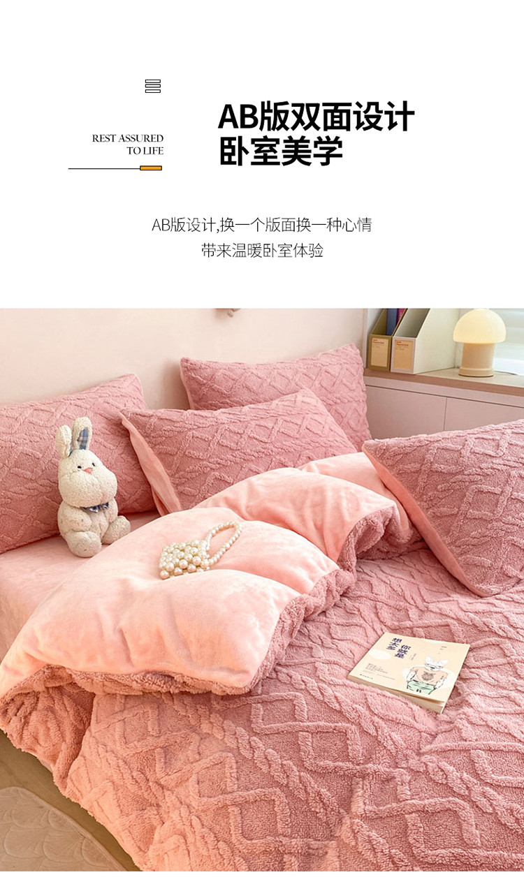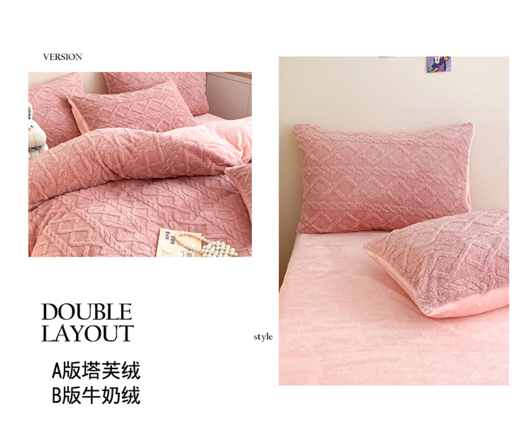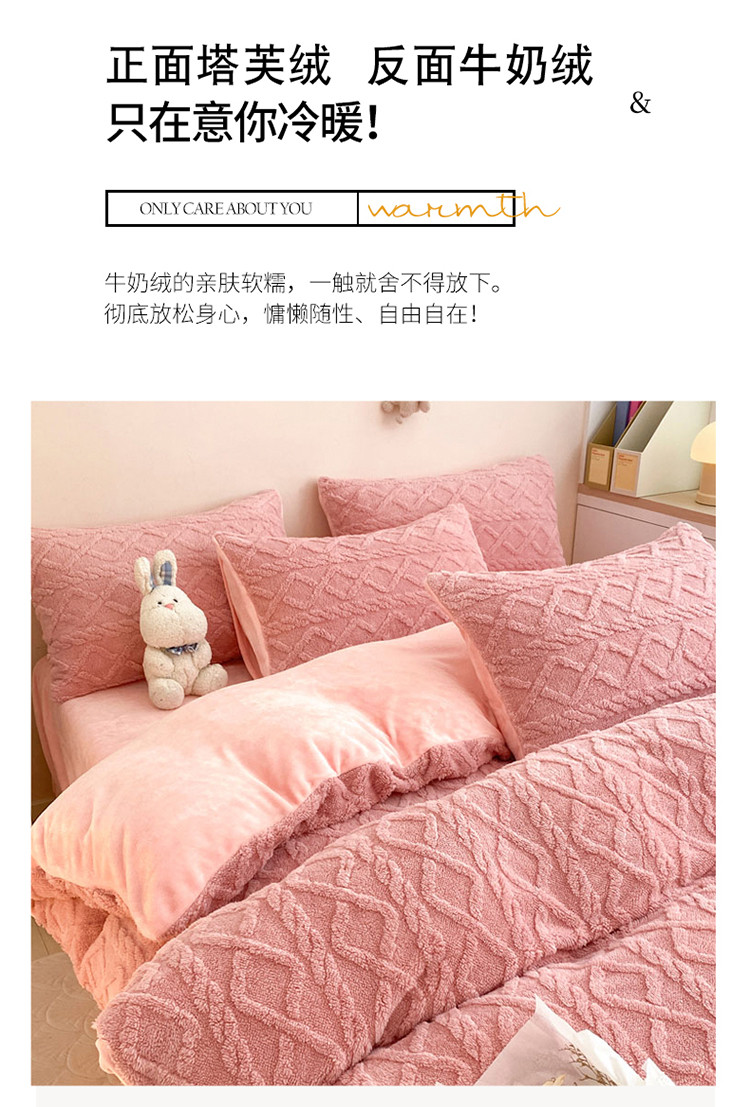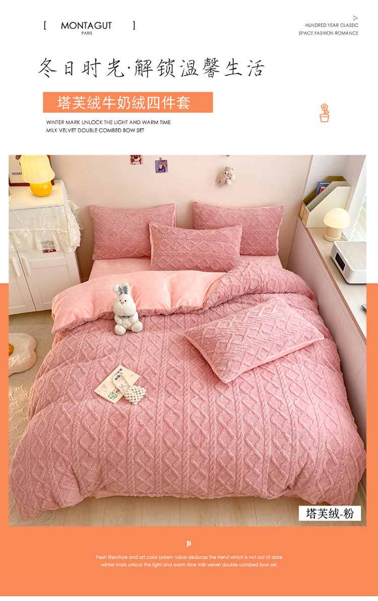 金爱家 2023新款塔芙绒牛奶绒防静电四件套 塔芙绒-粉