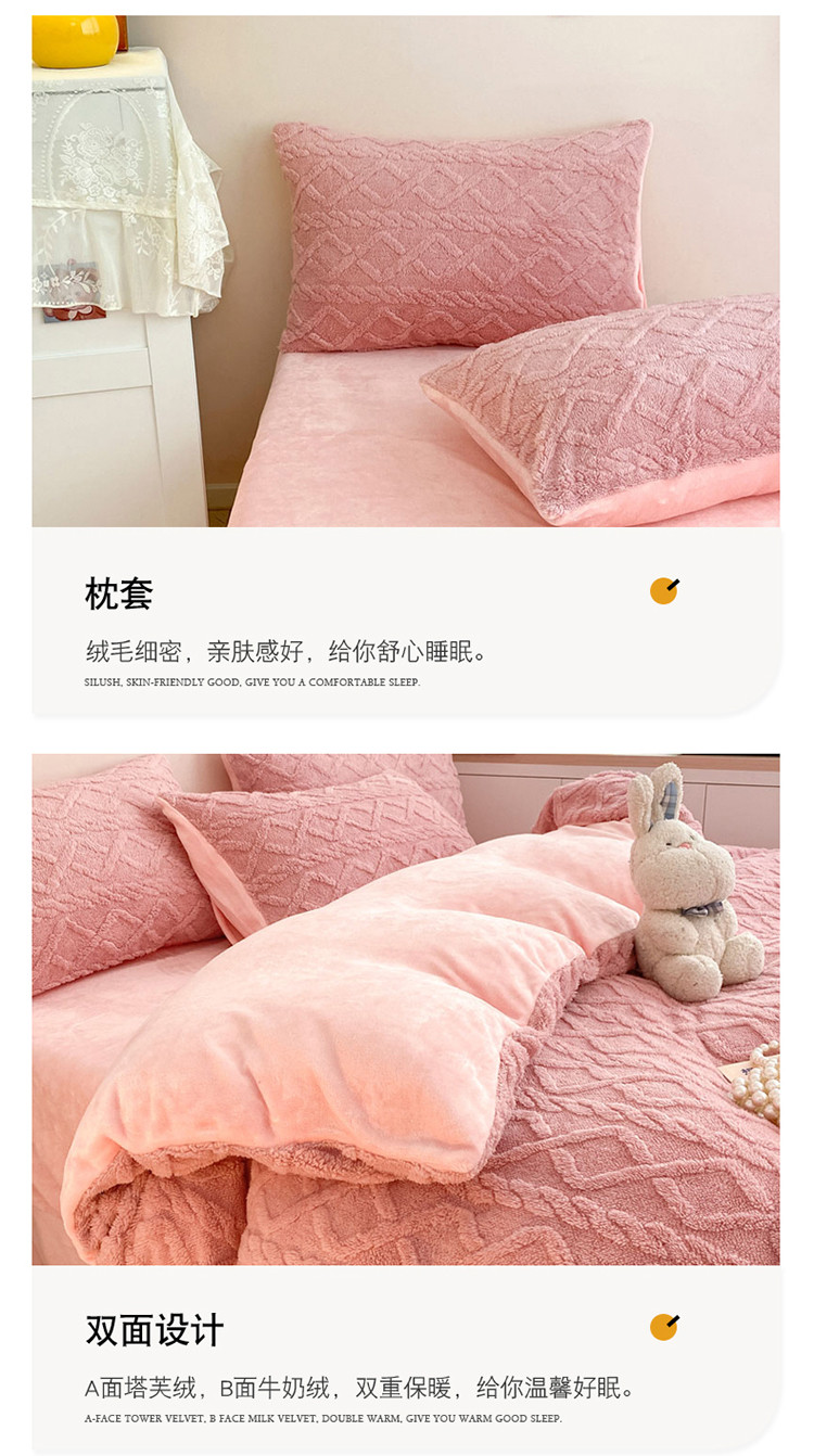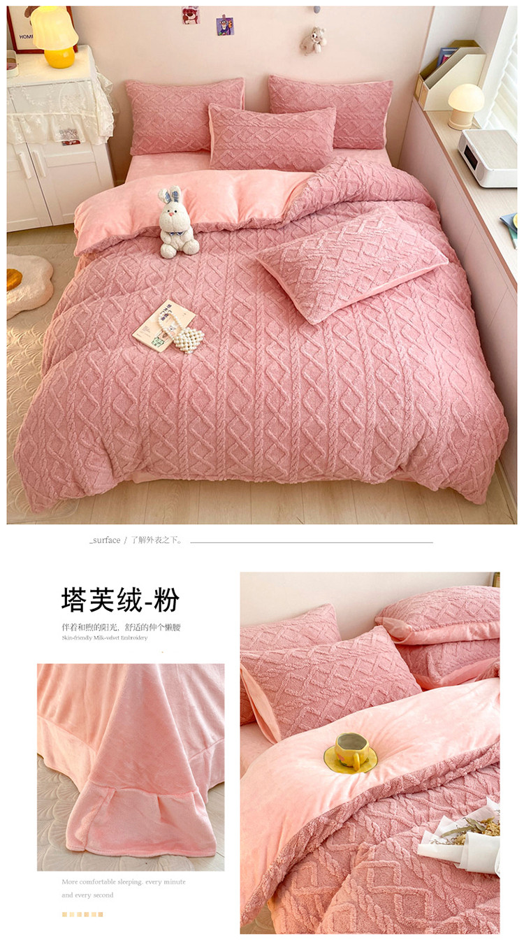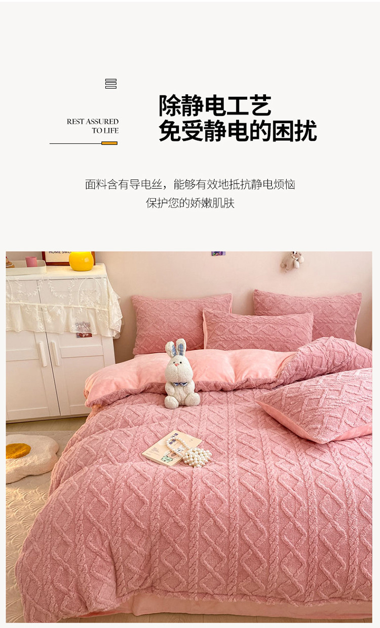 商品名称:金爱家 2023新款塔芙绒牛奶绒防静电四件套 塔芙绒-粉