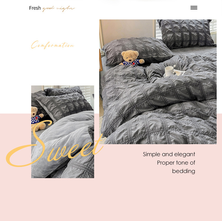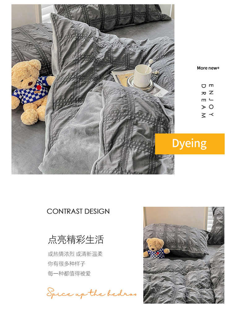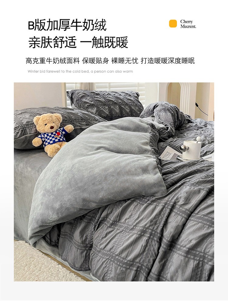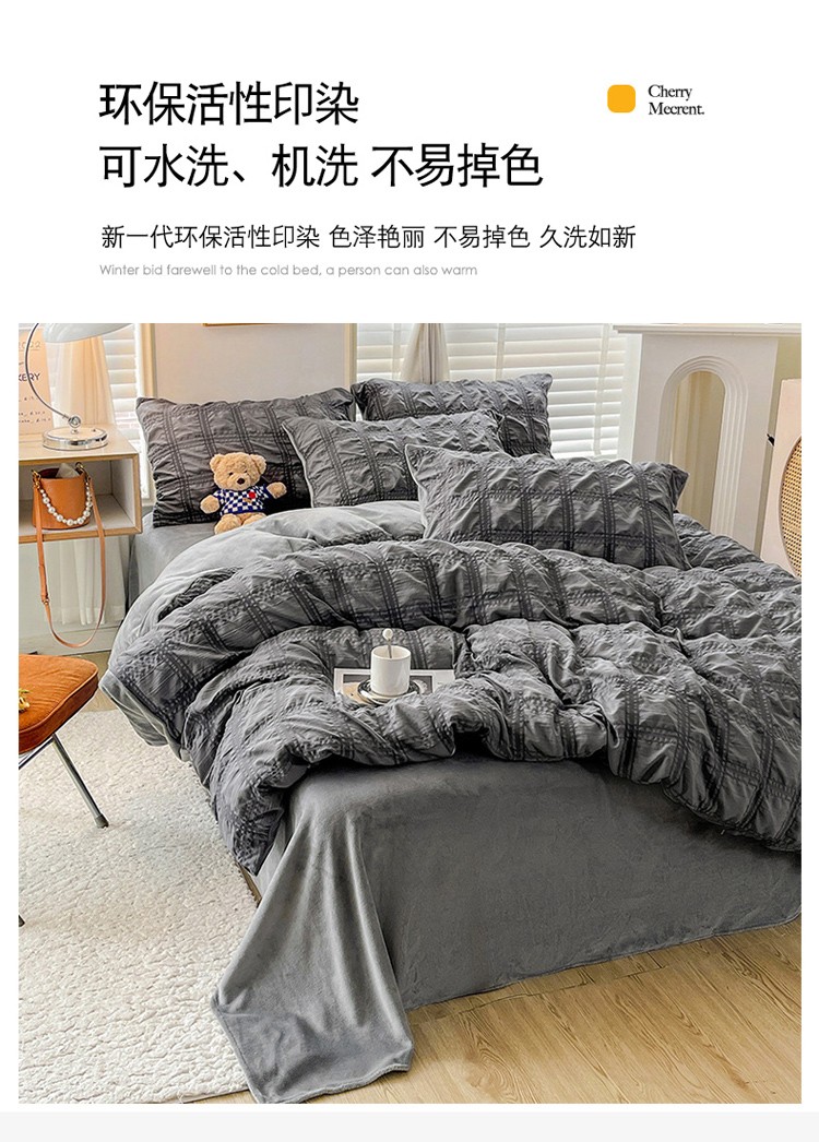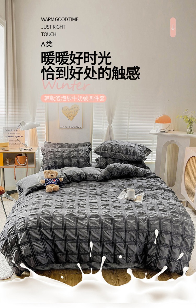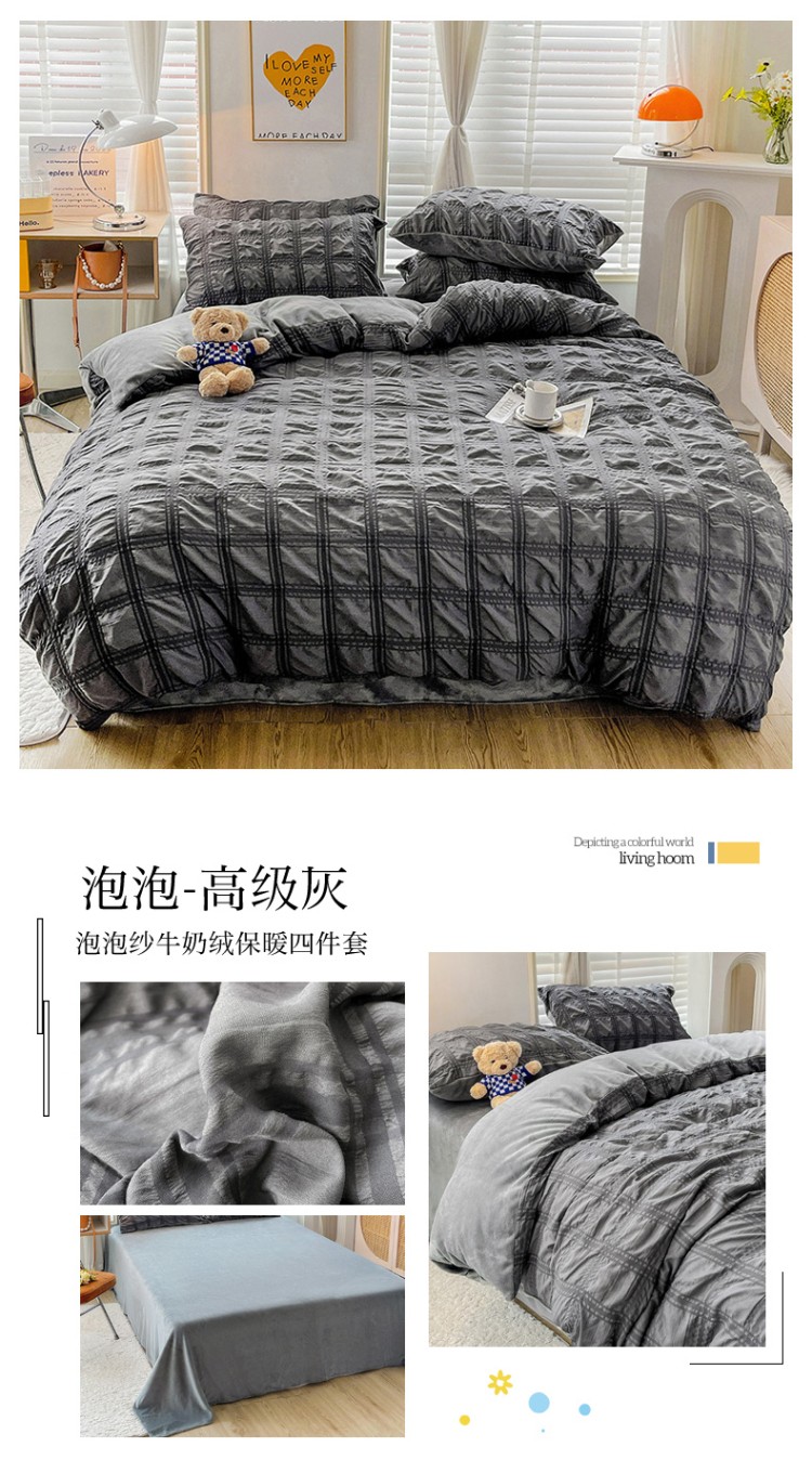 商品名称:寐居 2022新款泡泡纱牛奶绒四件套 泡泡-高级灰