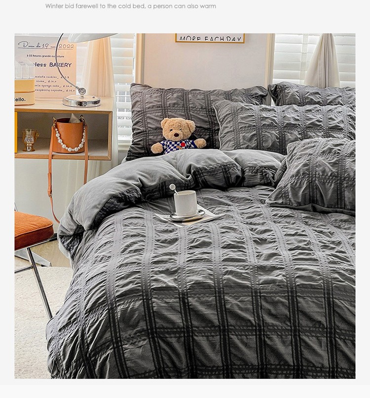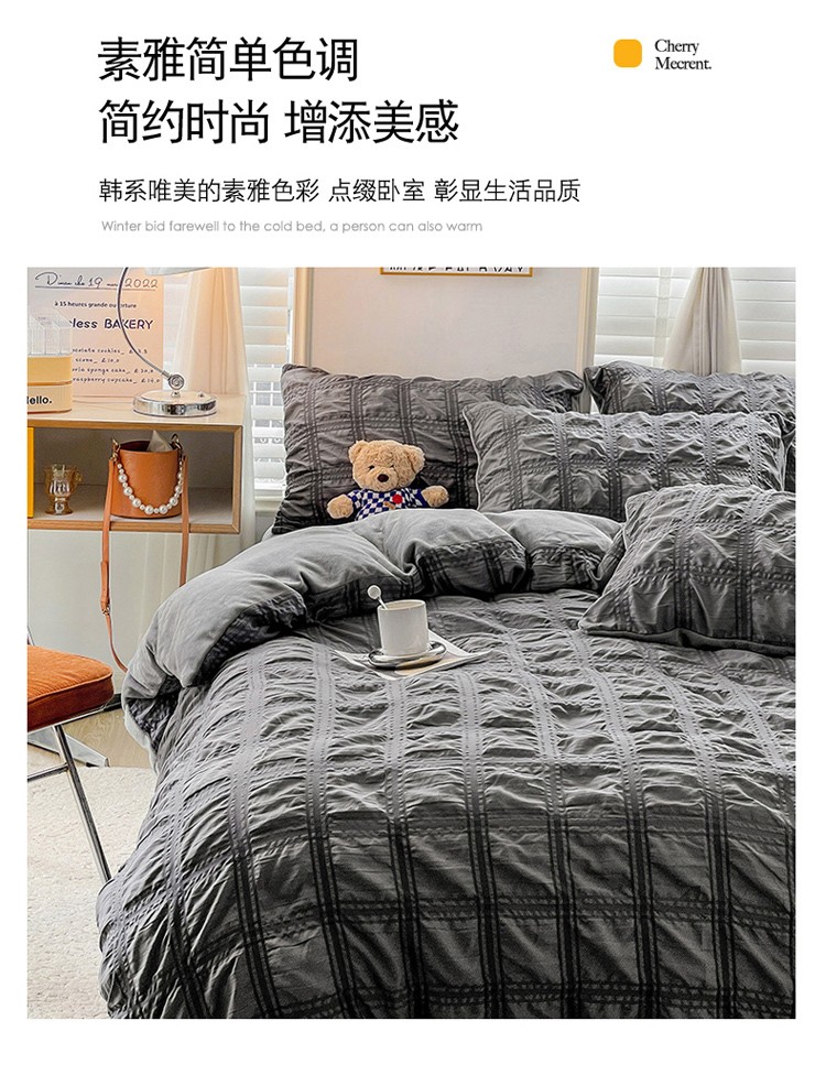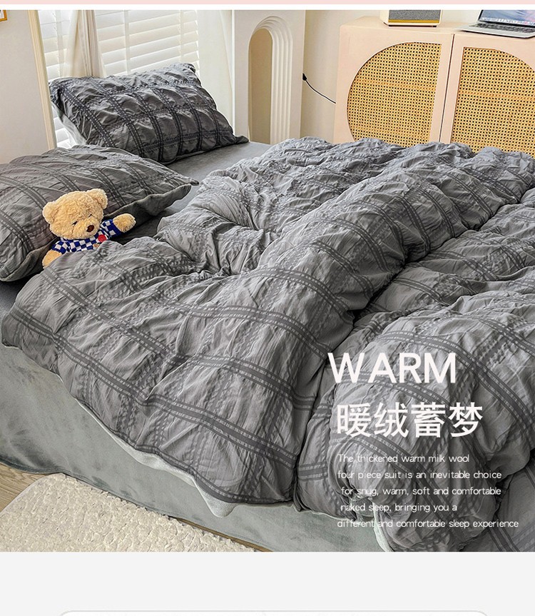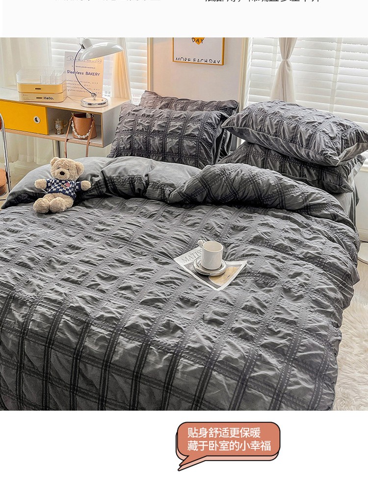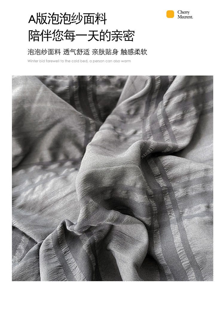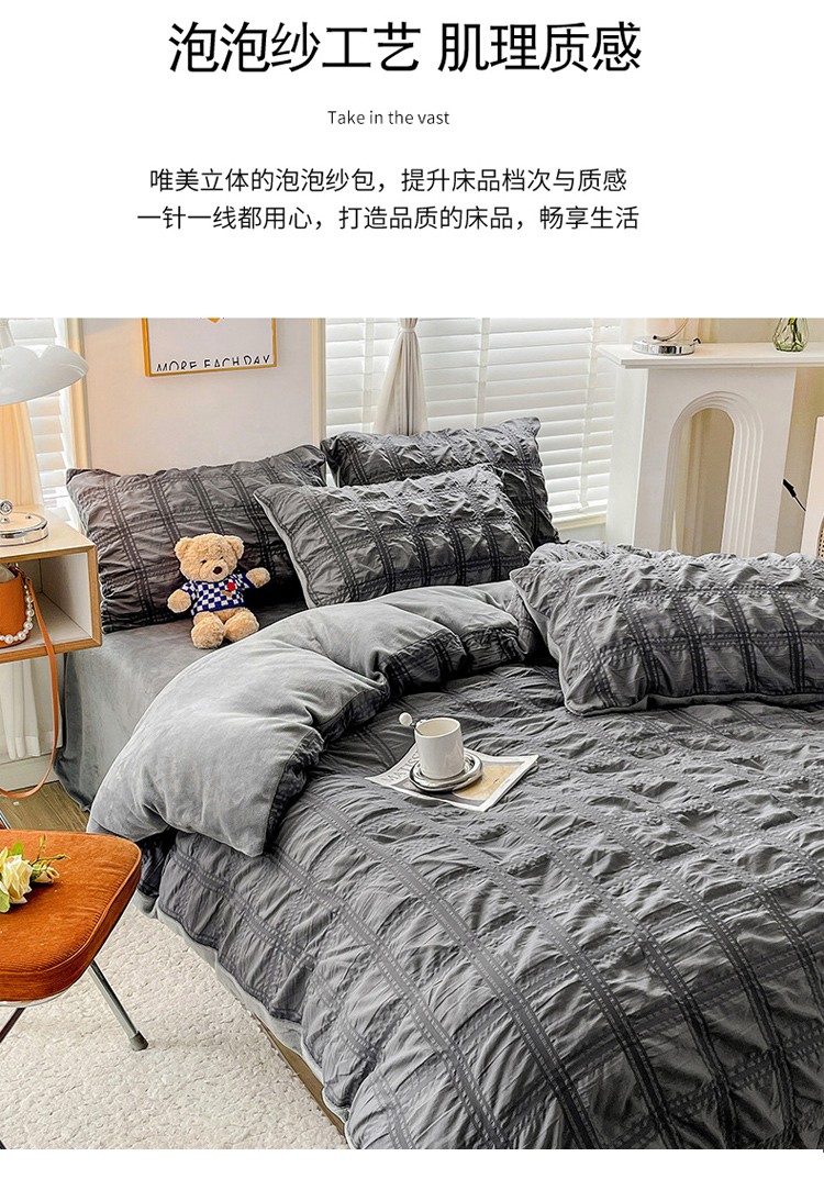 寐居 2022新款泡泡纱牛奶绒四件套 泡泡-高级灰