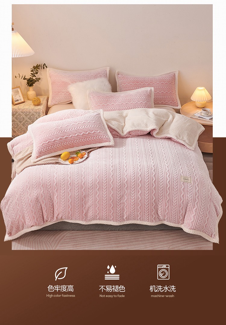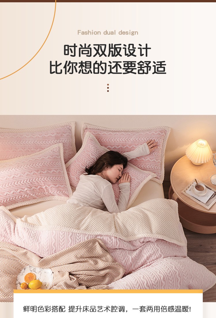 • 91家纺网 家纺一手货源 找家纺 新月家纺 2022新款雪花绒多功能被套 樱花粉