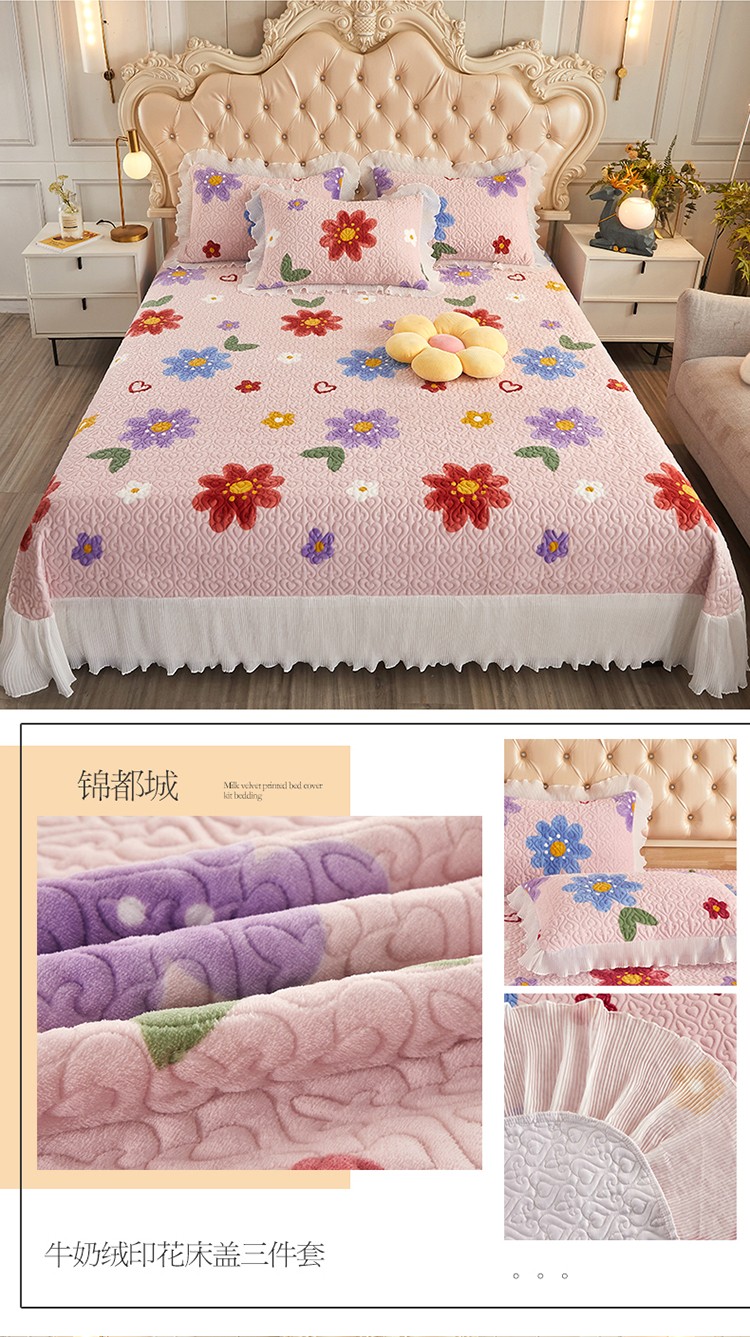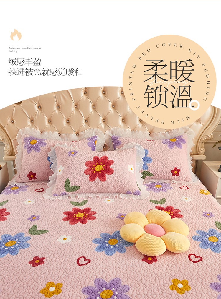 当前位置: 91家纺网 > 商品网购 > 床品套件 > 四件套 > 全棉普通四件套 > 宜凡 2022新款牛奶绒小清新床盖三四件套 锦都城