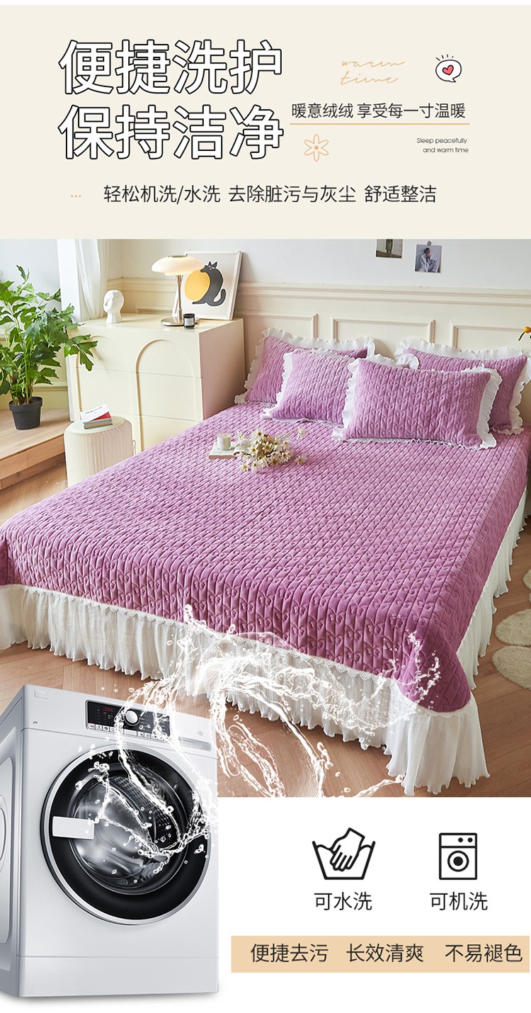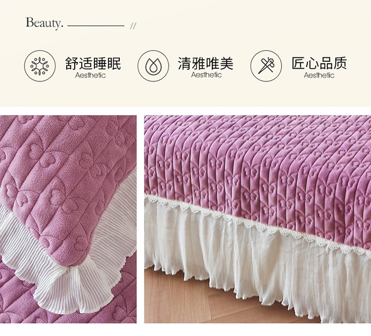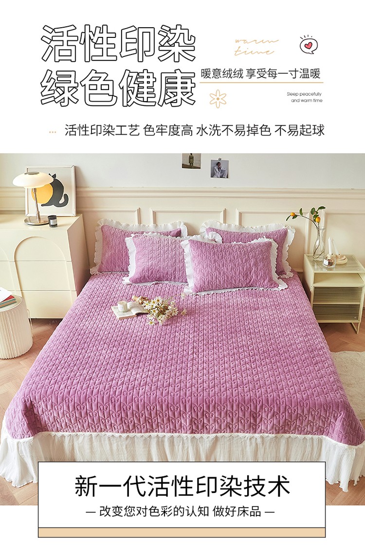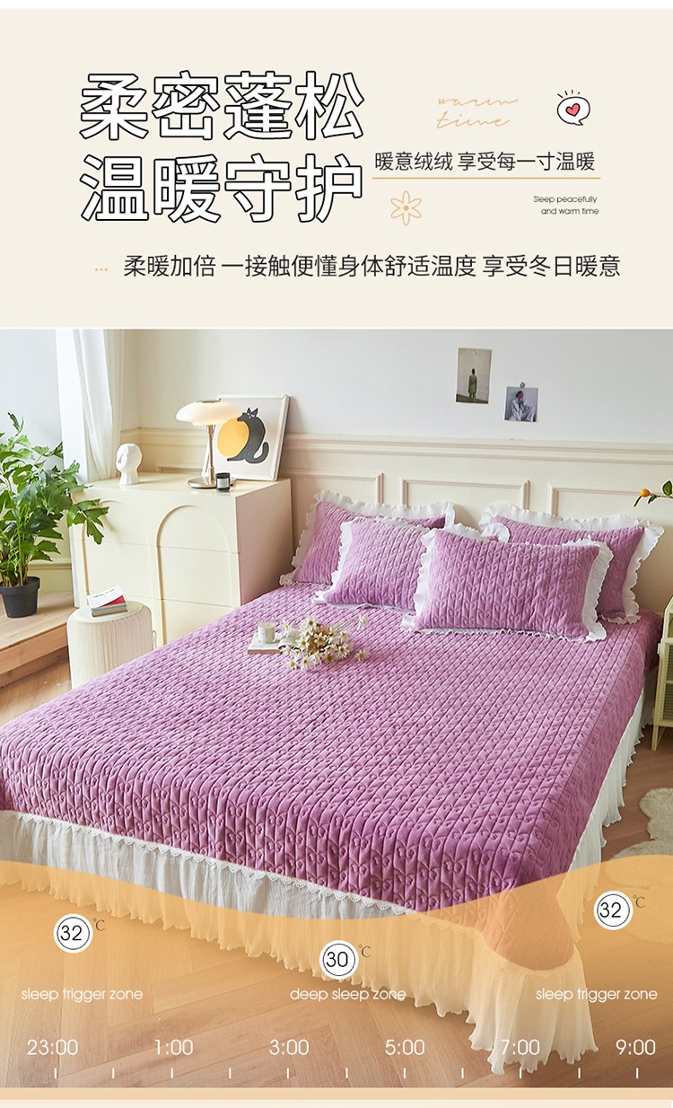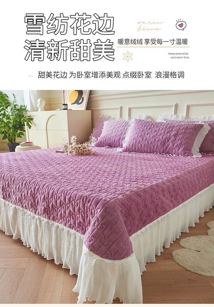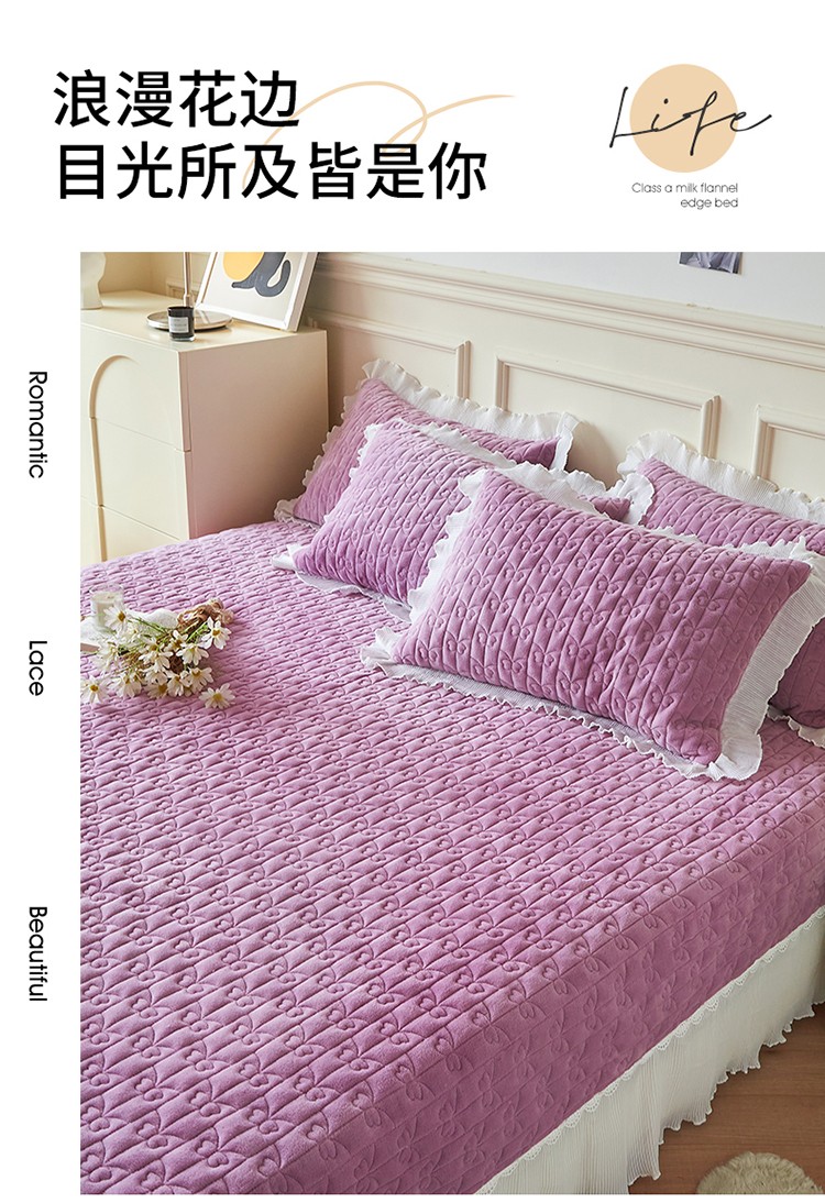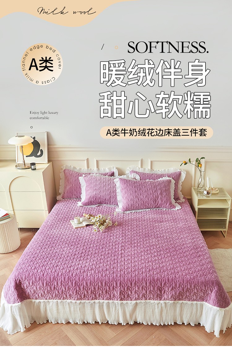 当前位置: 91家纺网 > 商品网购 > 床品套件 > 四件套 > 全棉普通四件套 > 宜凡 2022秋冬新款A类牛奶绒印花花边床盖三四件套 罗兰紫
