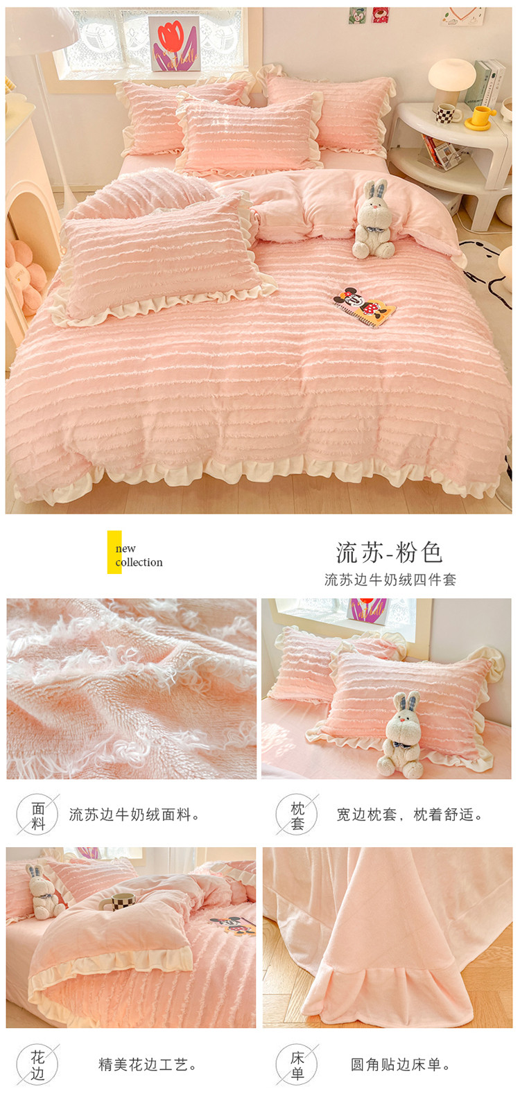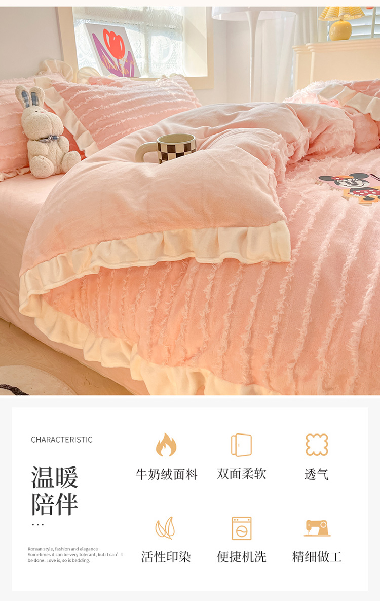 商品名称:金爱家 2023新款流苏牛奶绒四件套 流苏-粉色