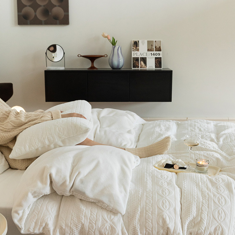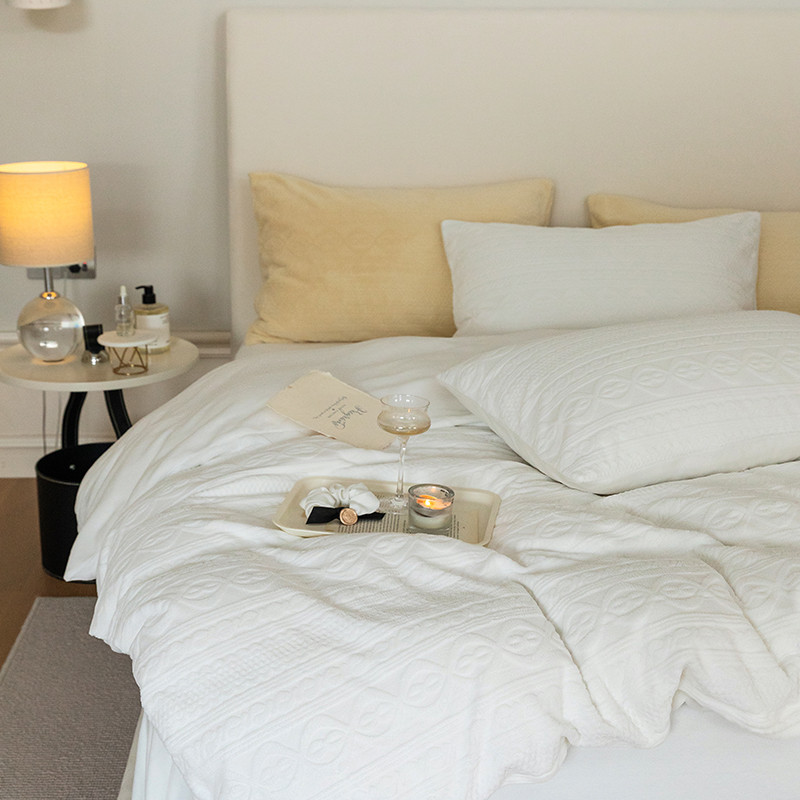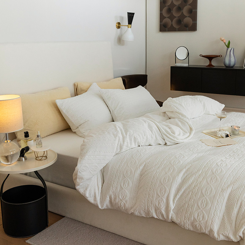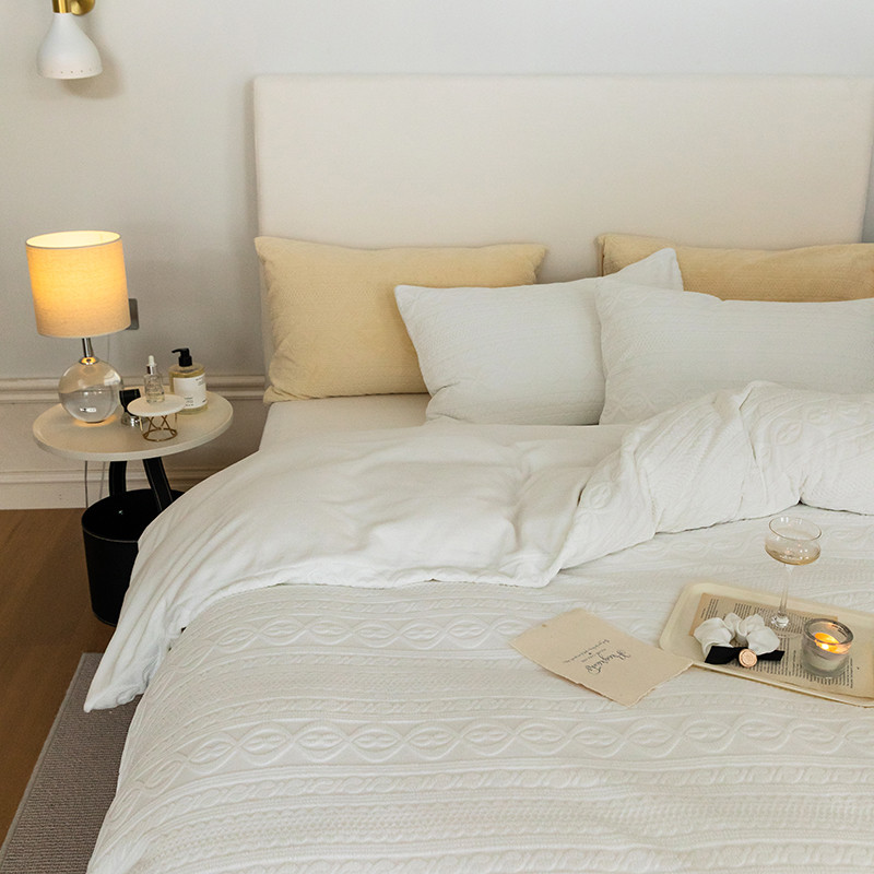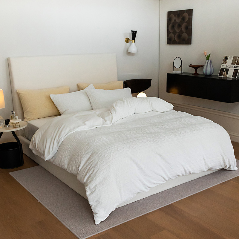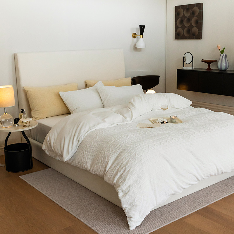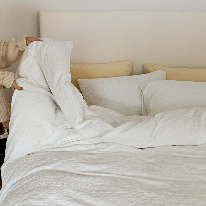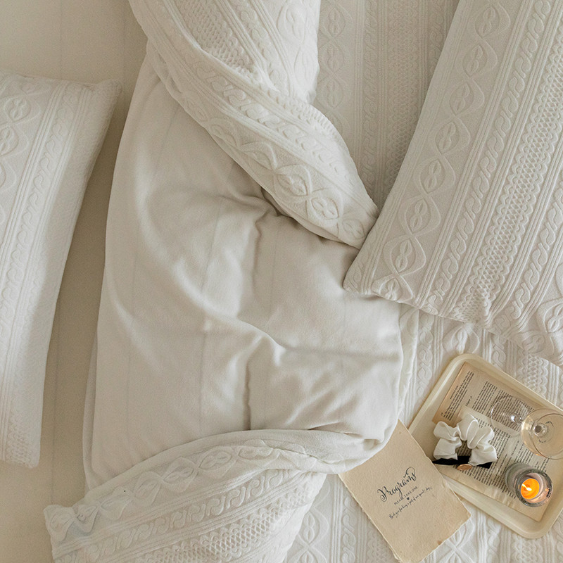 当前位置: 91家纺网 > 商品网购 > 床品套件 > 四件套 > 牛奶绒四件套 > 寐眠 2022新款牛奶绒剪花四件套 简约白