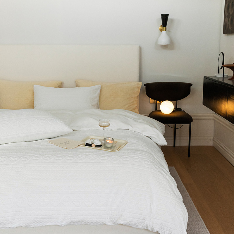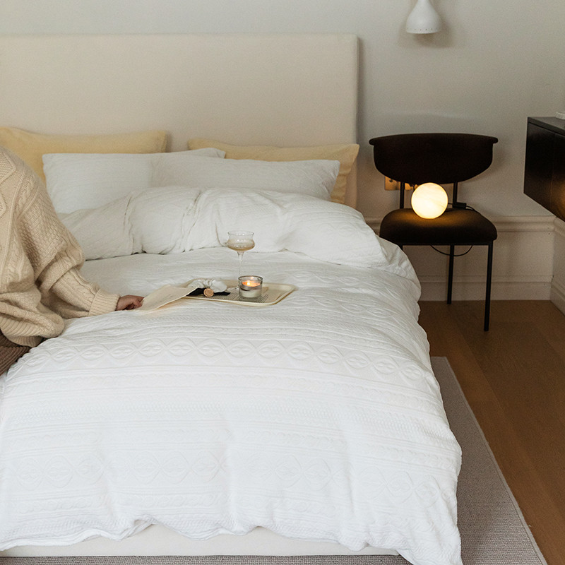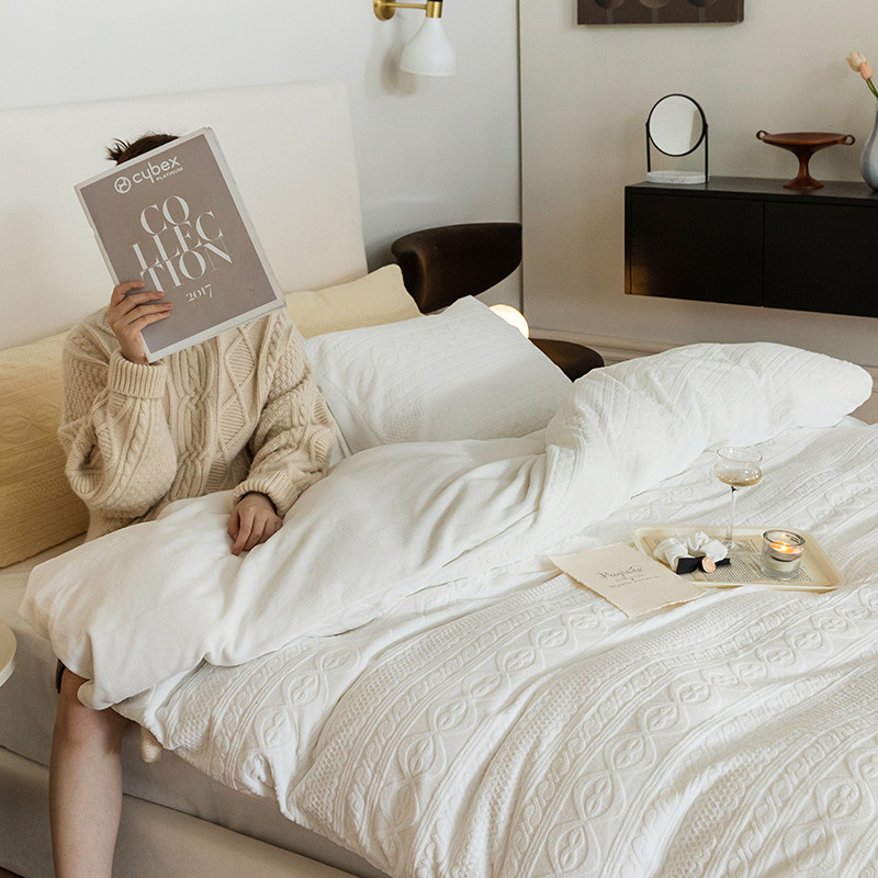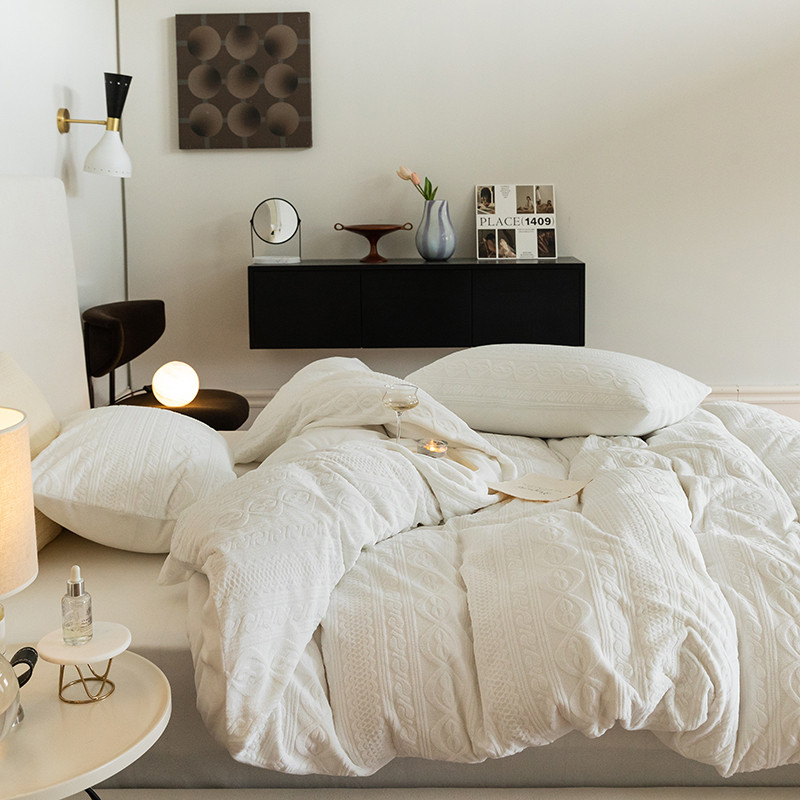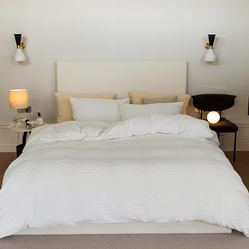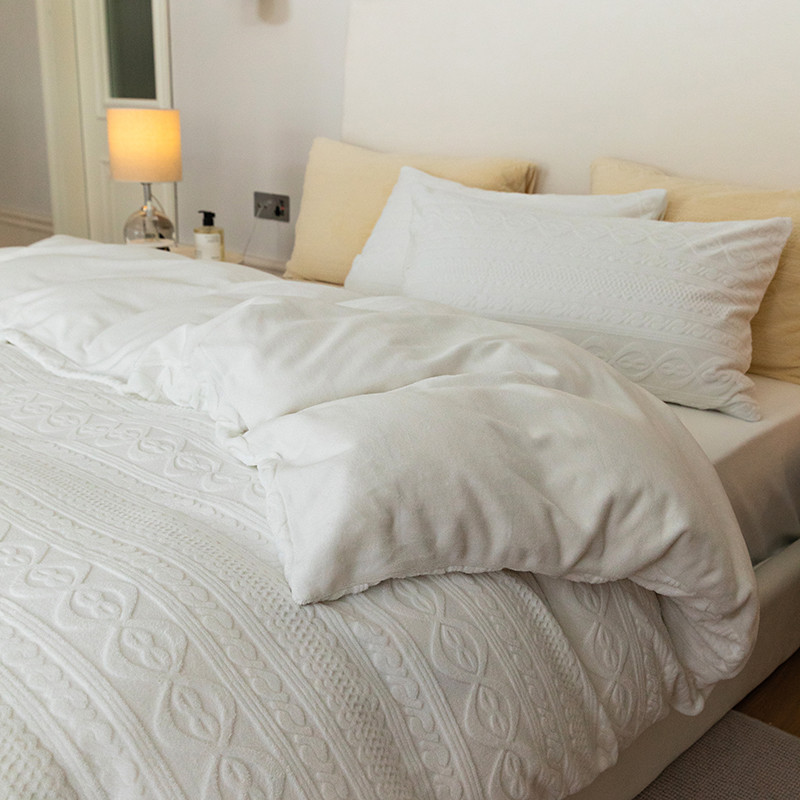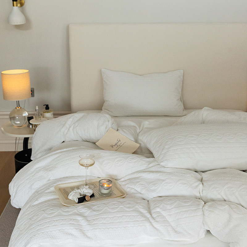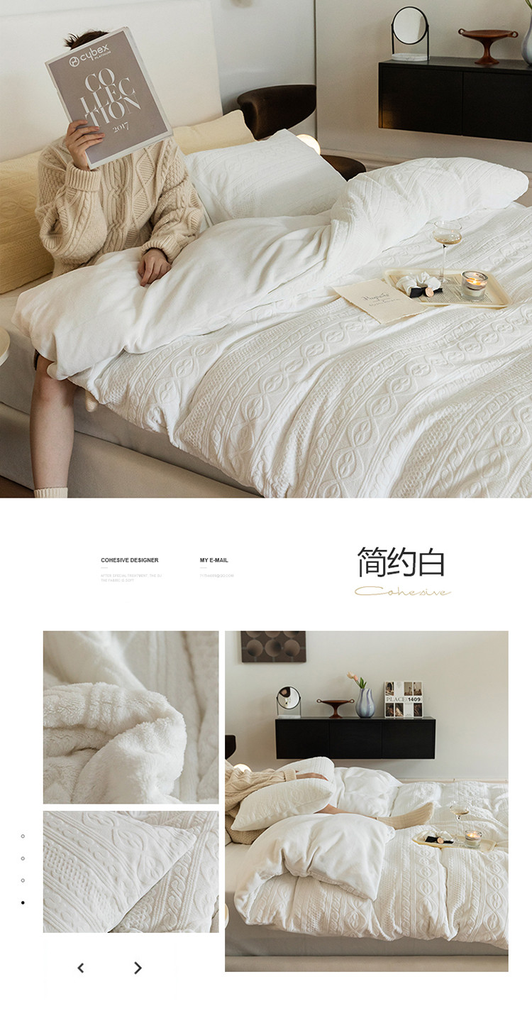 当前位置: 91家纺网 > 商品网购 > 床品套件 > 四件套 > 牛奶绒四件套 > 寐眠 2022新款牛奶绒剪花四件套 简约白