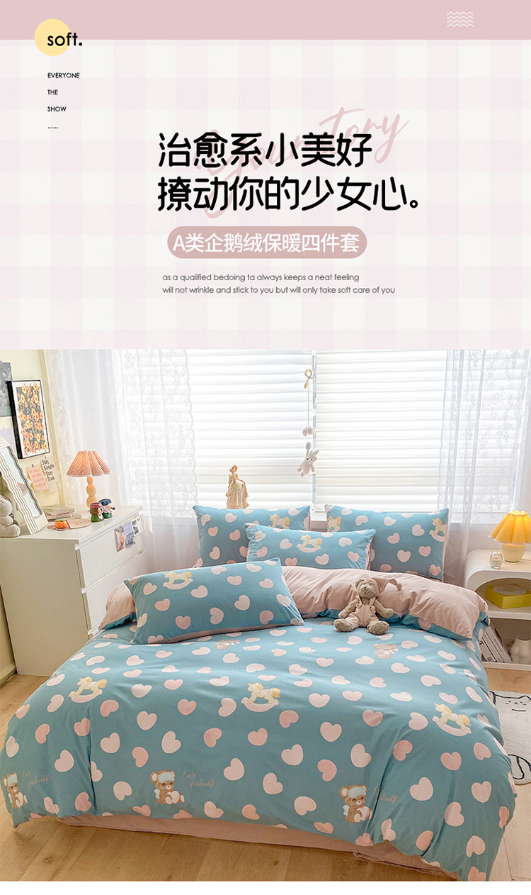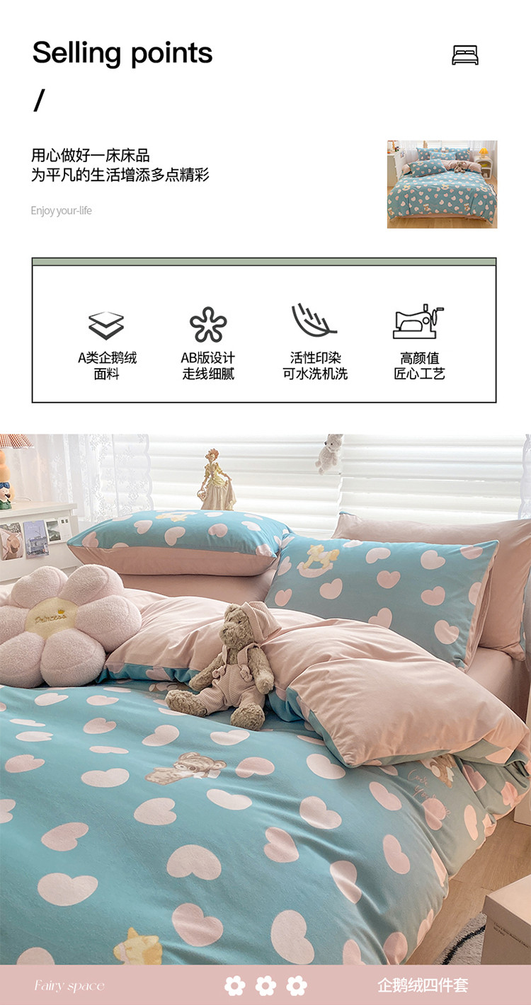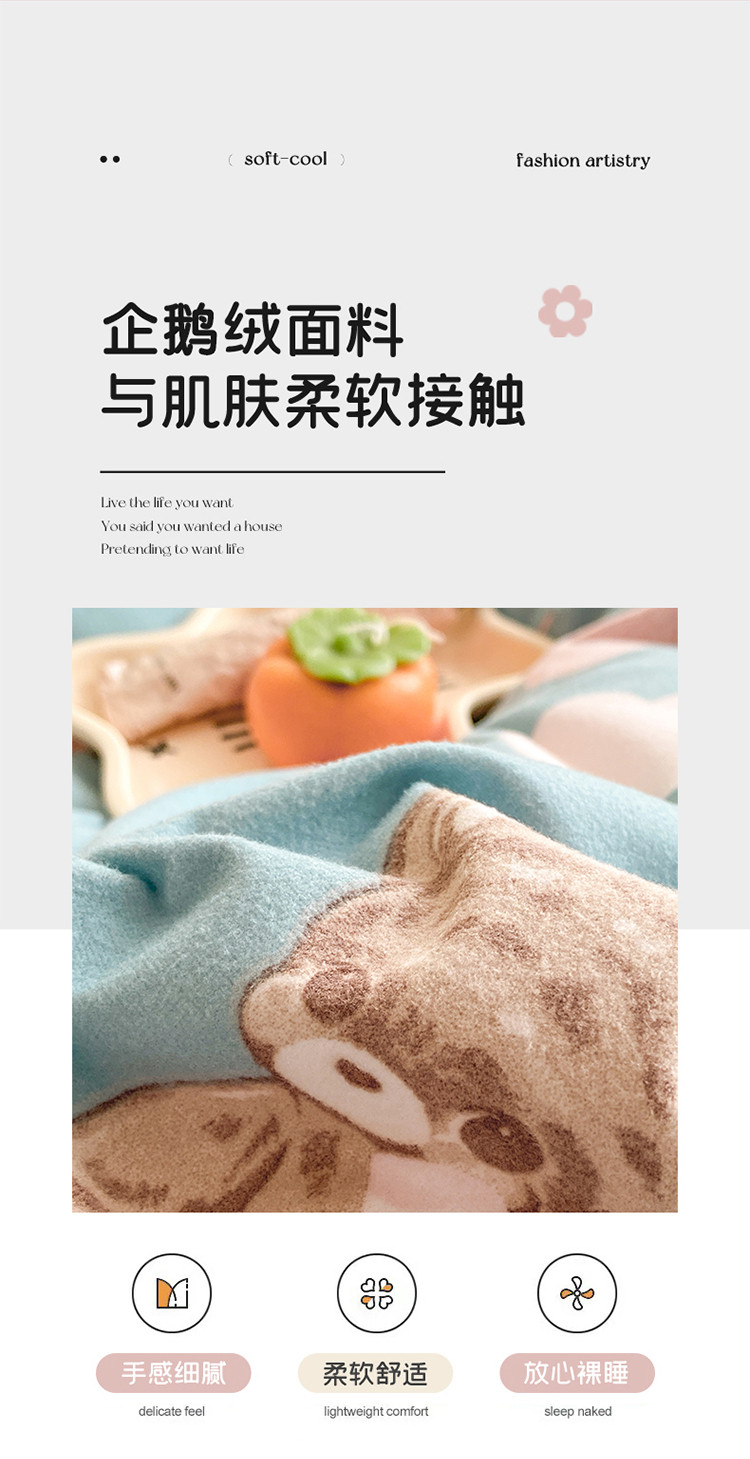 好阁 2022新款小清新企鹅绒四件套直播爆款 绿色心情